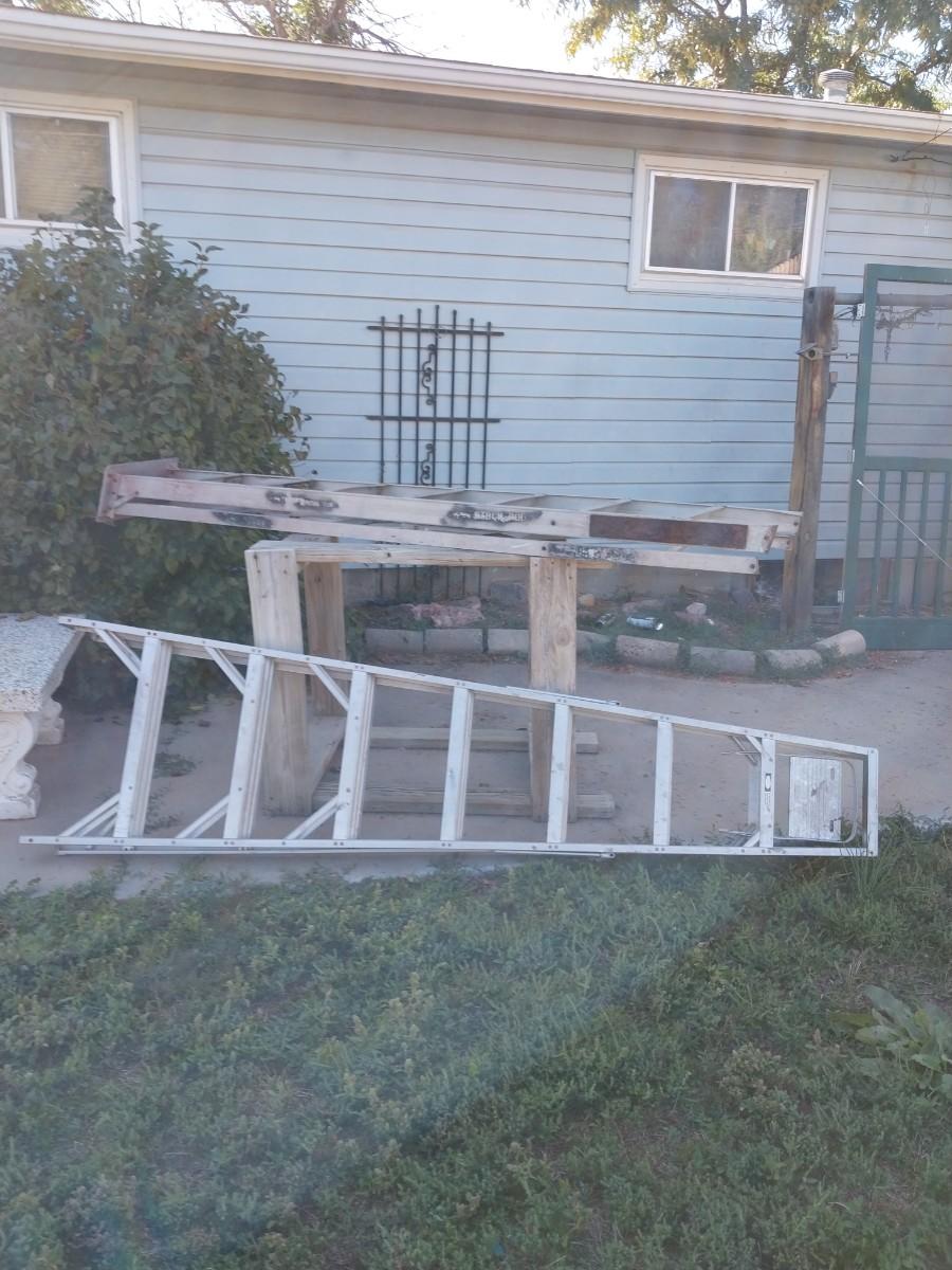 TWO WERNER LADDERS, FIBERGLASS AND ALUMINUM