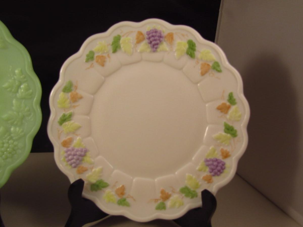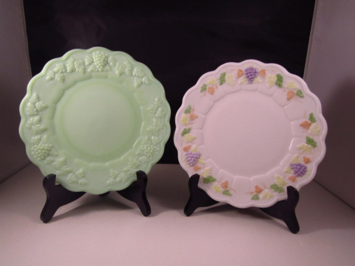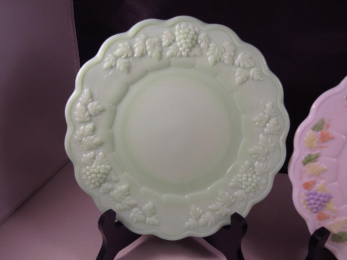 Two Westmoreland Plates- Jadeite and Hand Painted Milk Glass