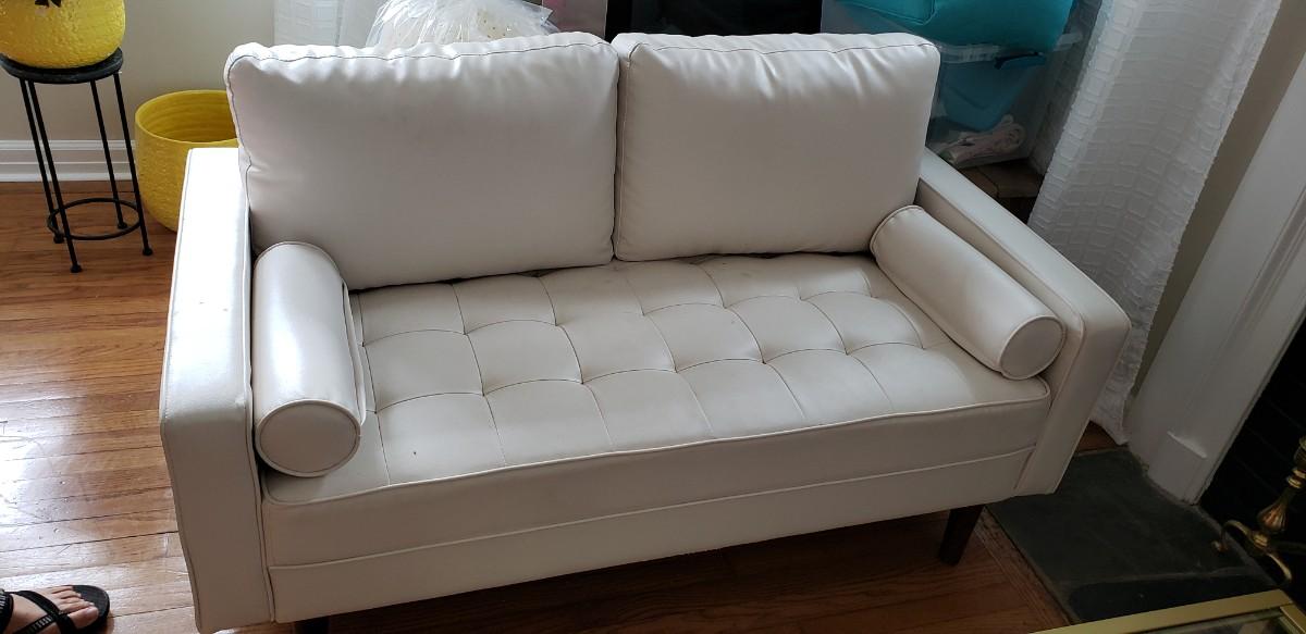 Two white loveseats