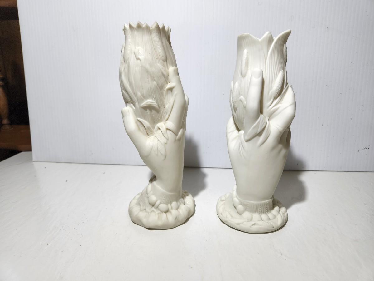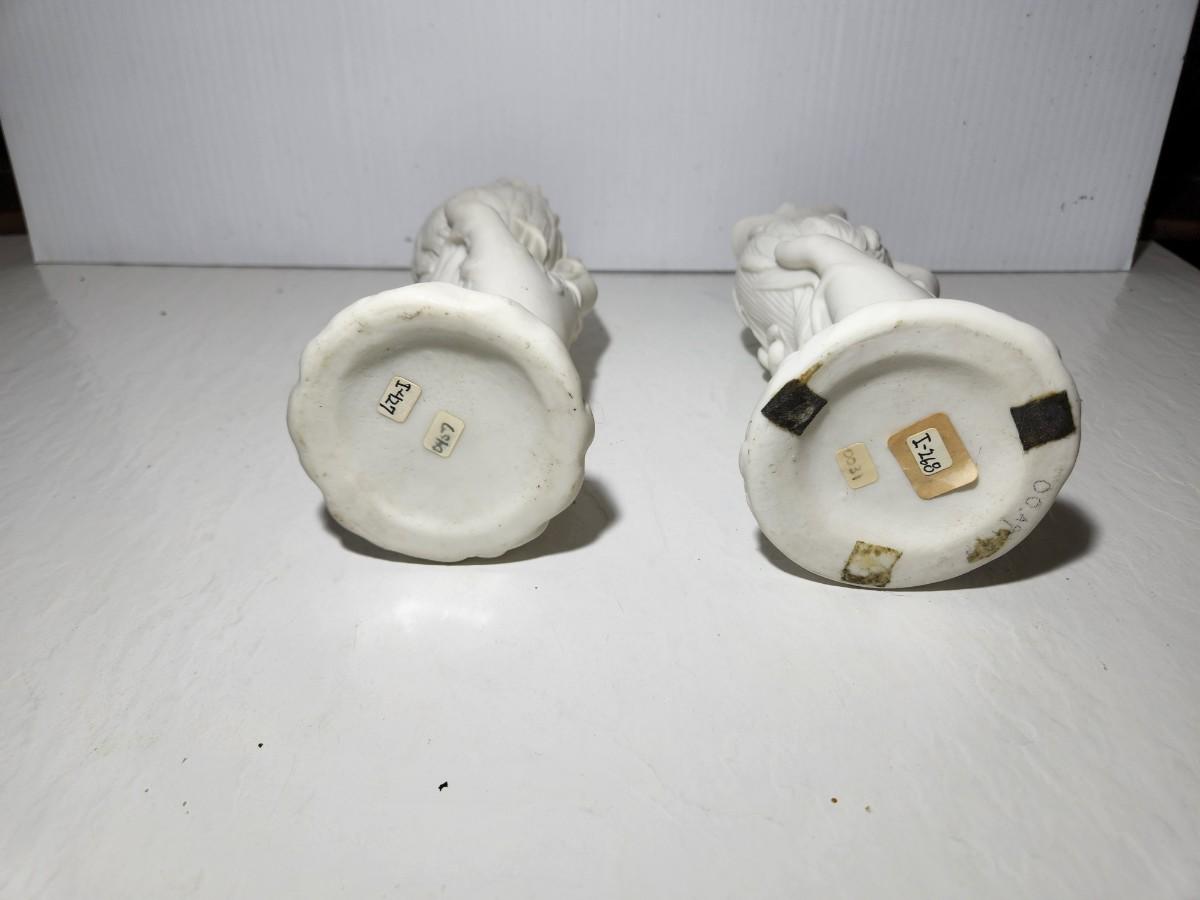 Two White Parian Hand Vases