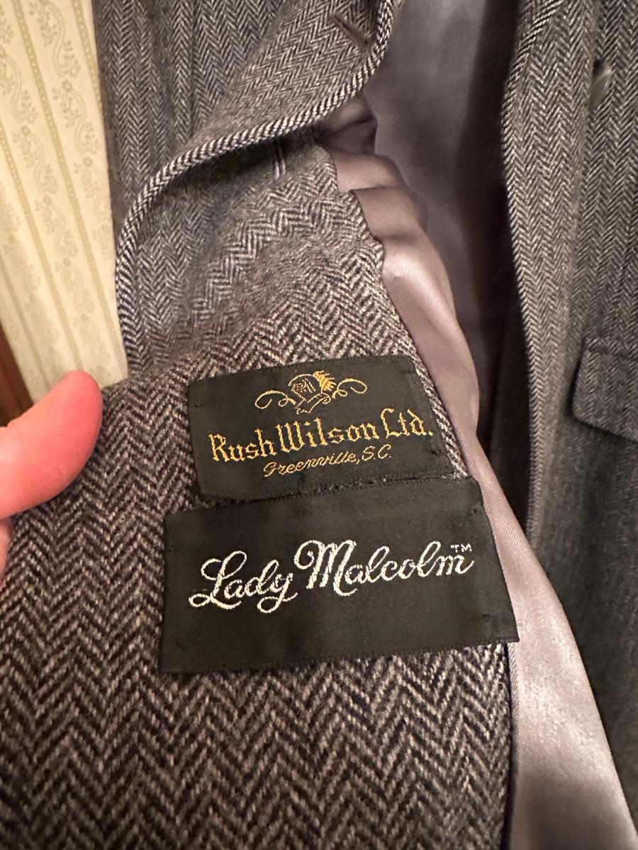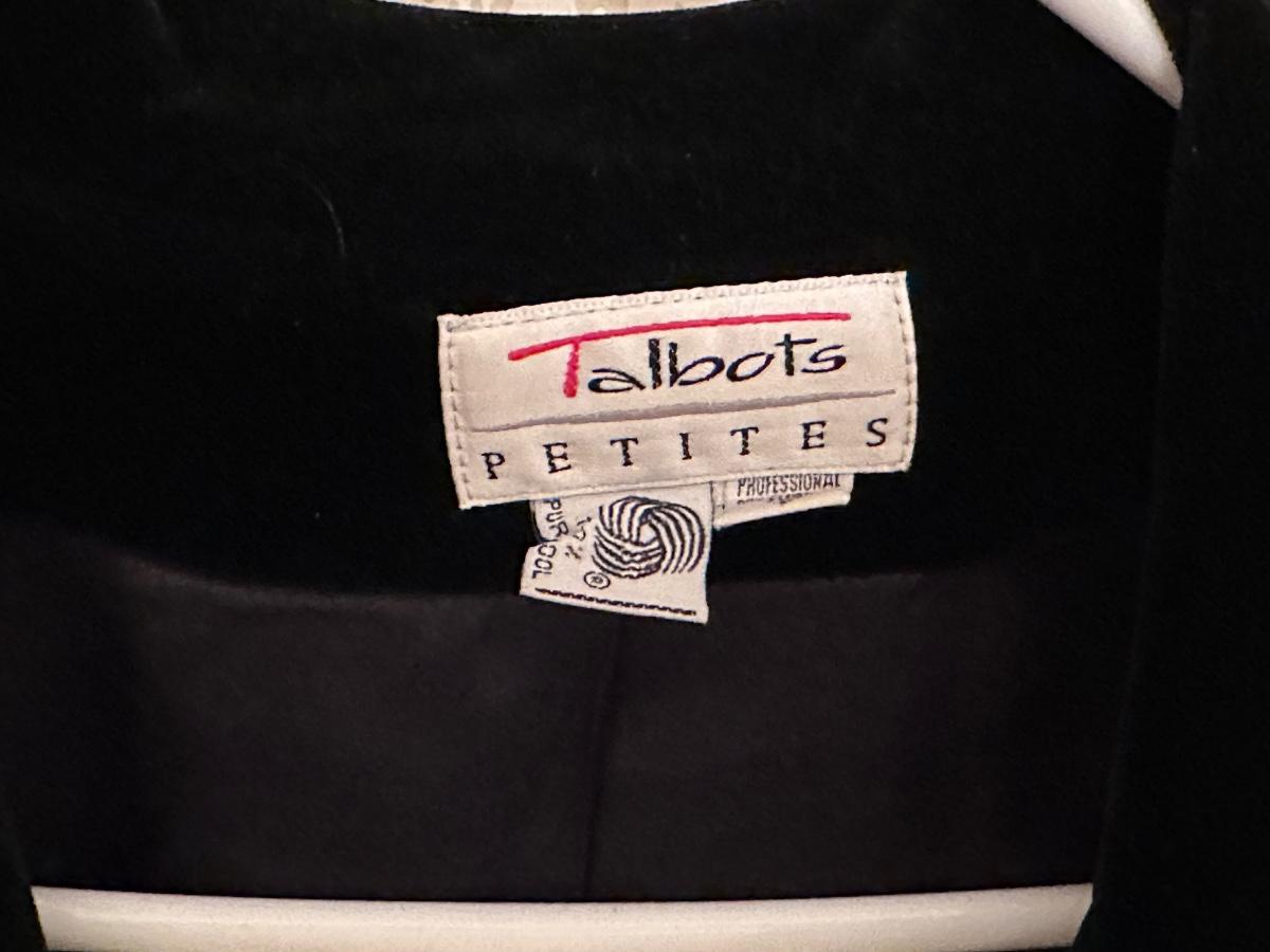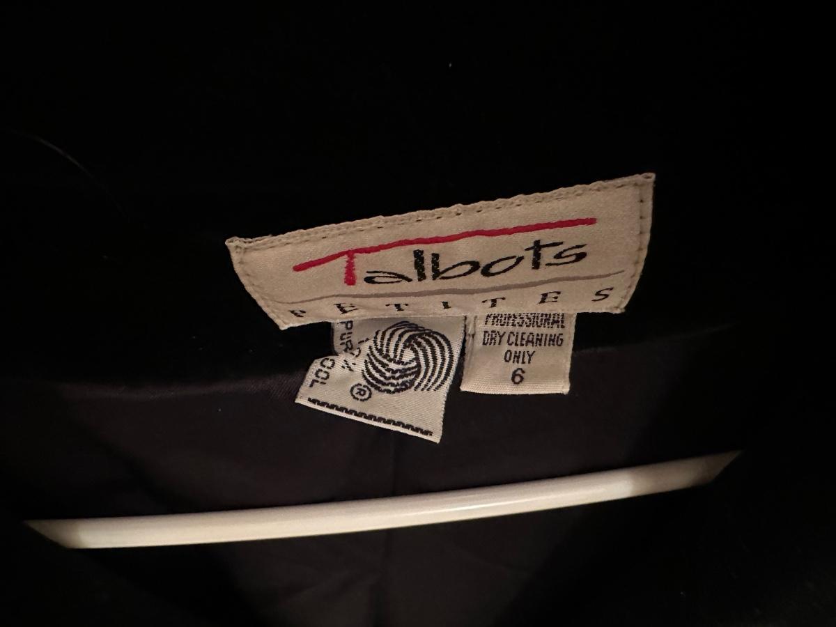 The black (Talbots) jacket is marked a size 6, Grey jacket is tagged as Rush Wilson Ltd, GVL SC / size unmarked