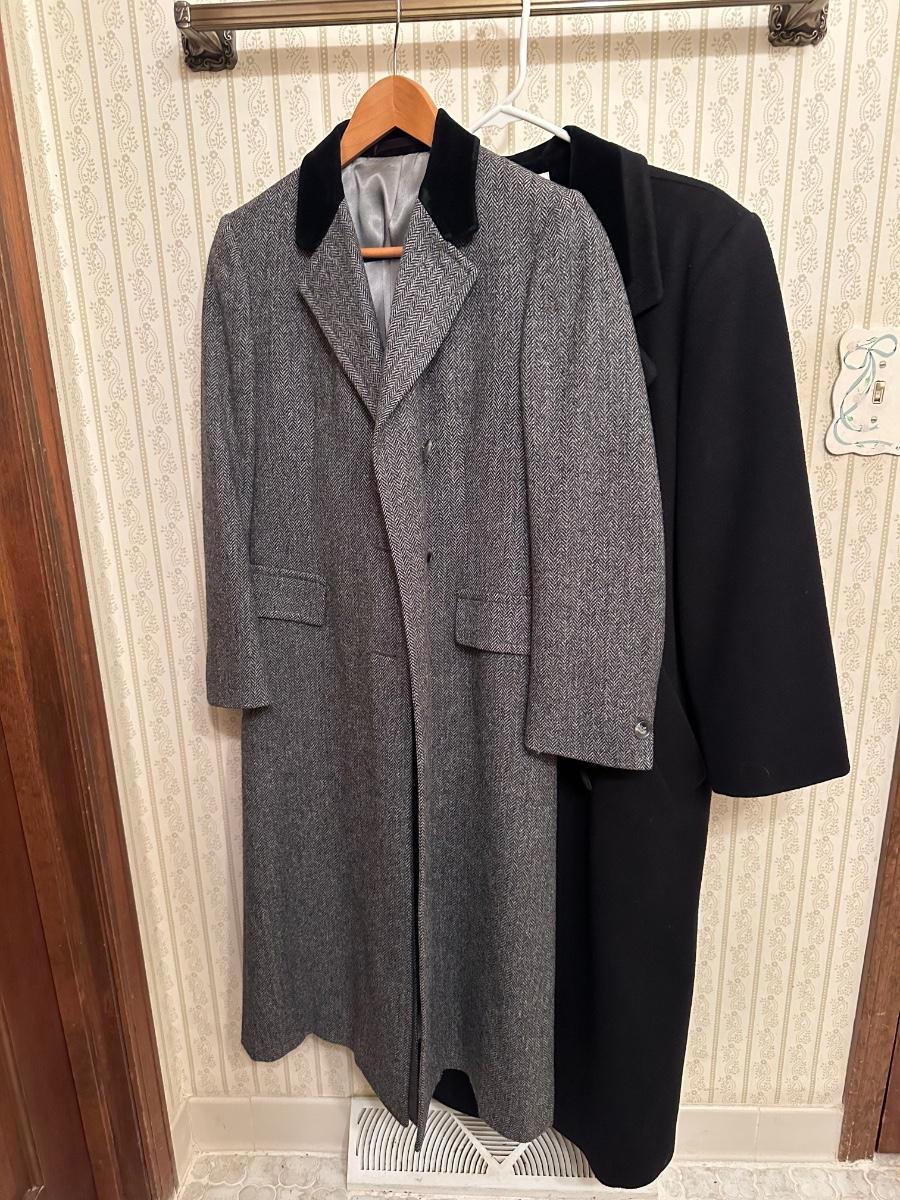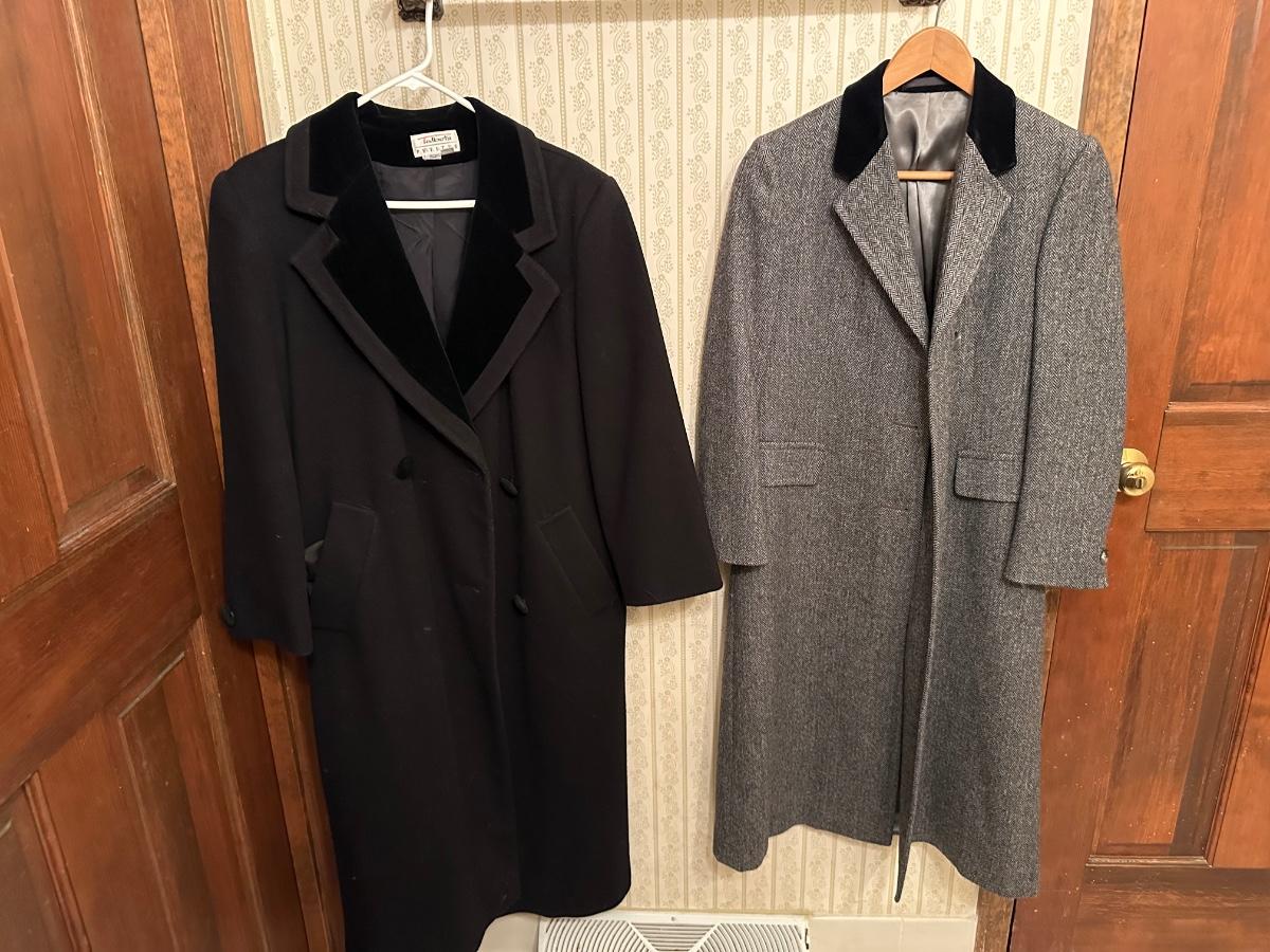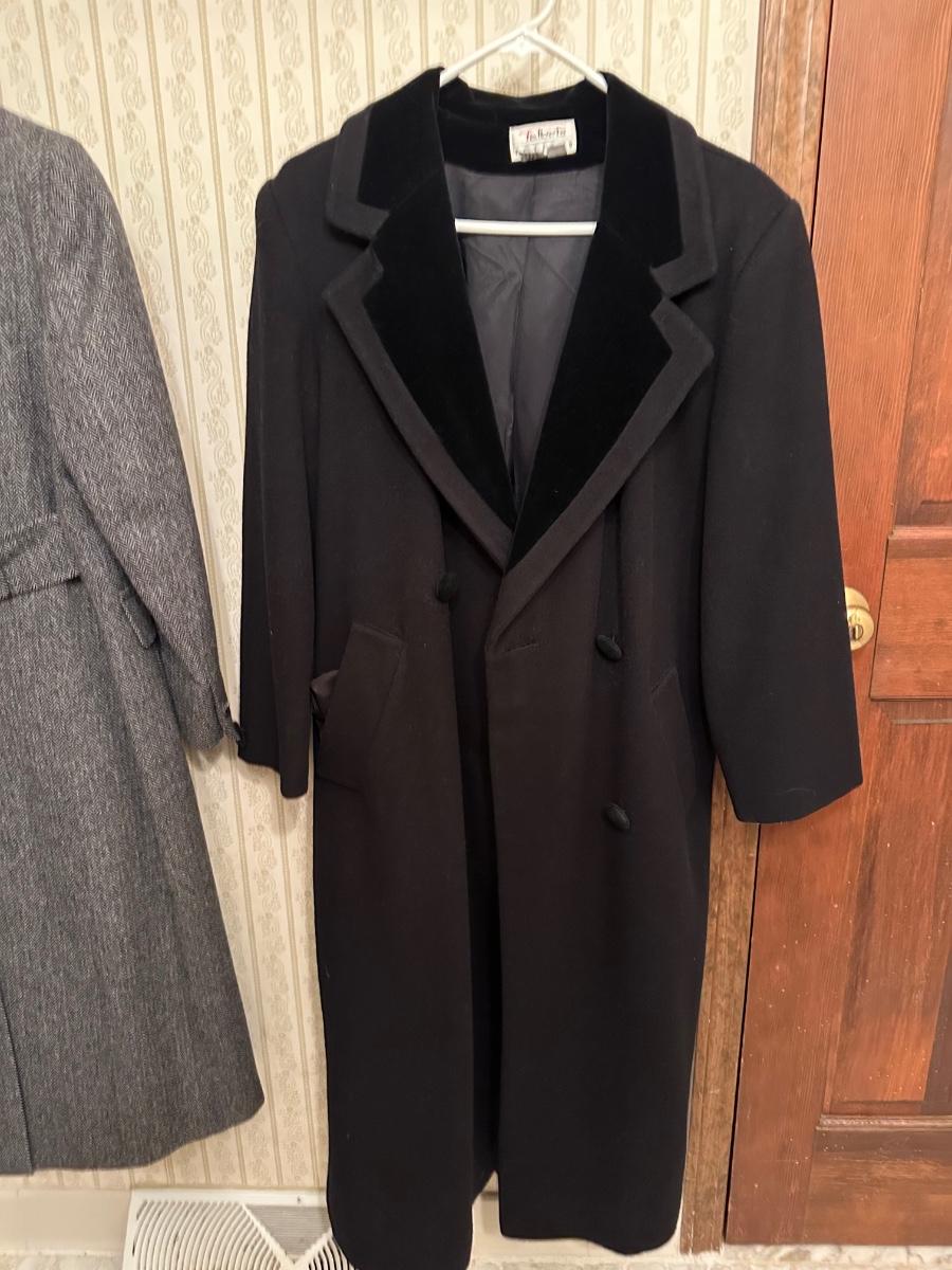 The black (Talbots) jacket is marked a size 6, Grey jacket is tagged as Rush Wilson Ltd, GVL SC / size unmarked
