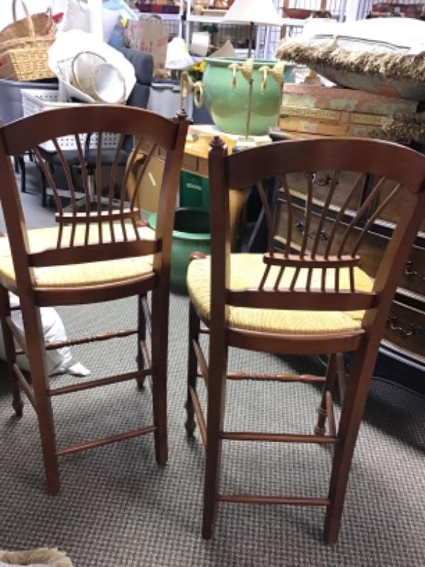 Height to seat is 25 inches. Height from floor to top of back is 41 inches Maker not noted on bottom of stool.