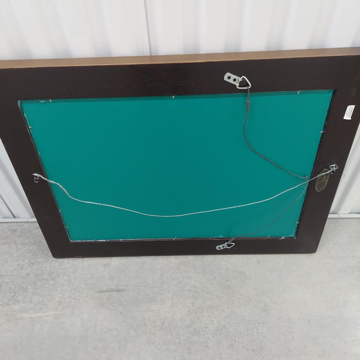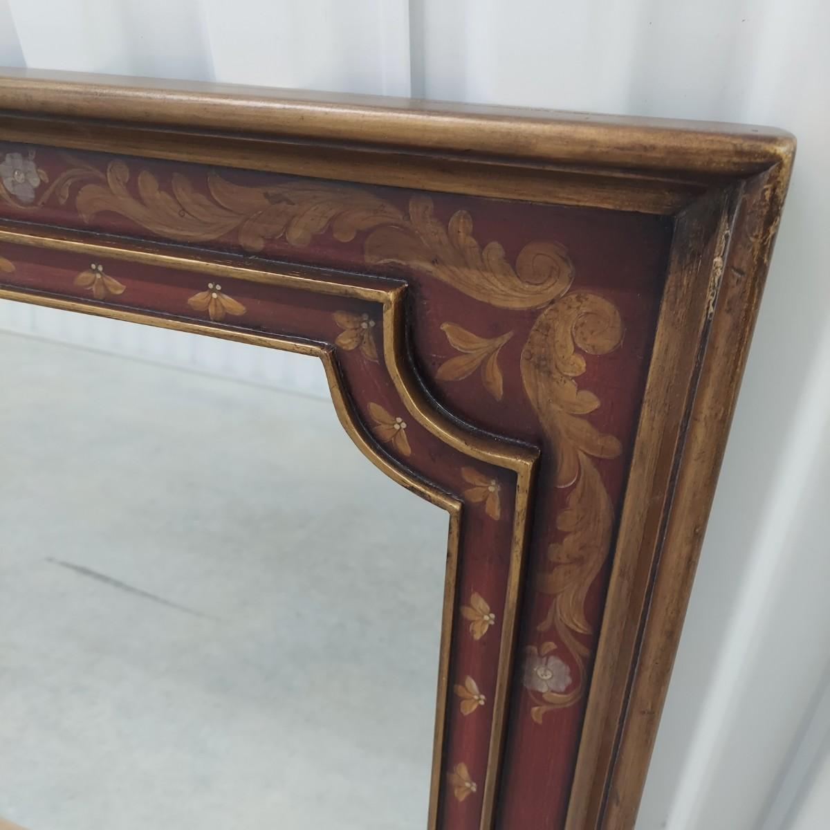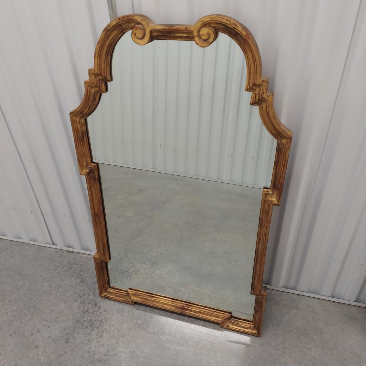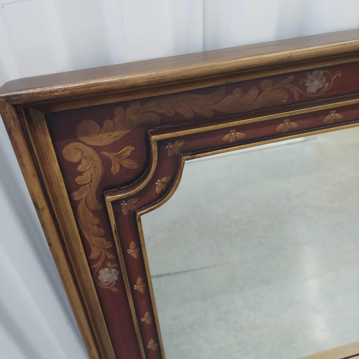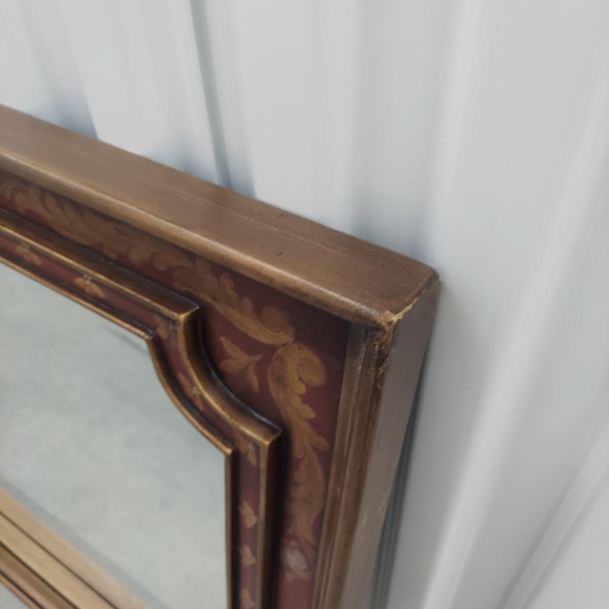 Two large wall hanging mirrors with ornate wooden frames. The gold frame is quite heavy and measures approximately 24” x 40"H. The floral frame can be hung portrait or landscape and measures approximately 32” x 24"H. This one has a label showing that it's from the South Cone Trading Company. Please see photos for details. Local Pickup Only