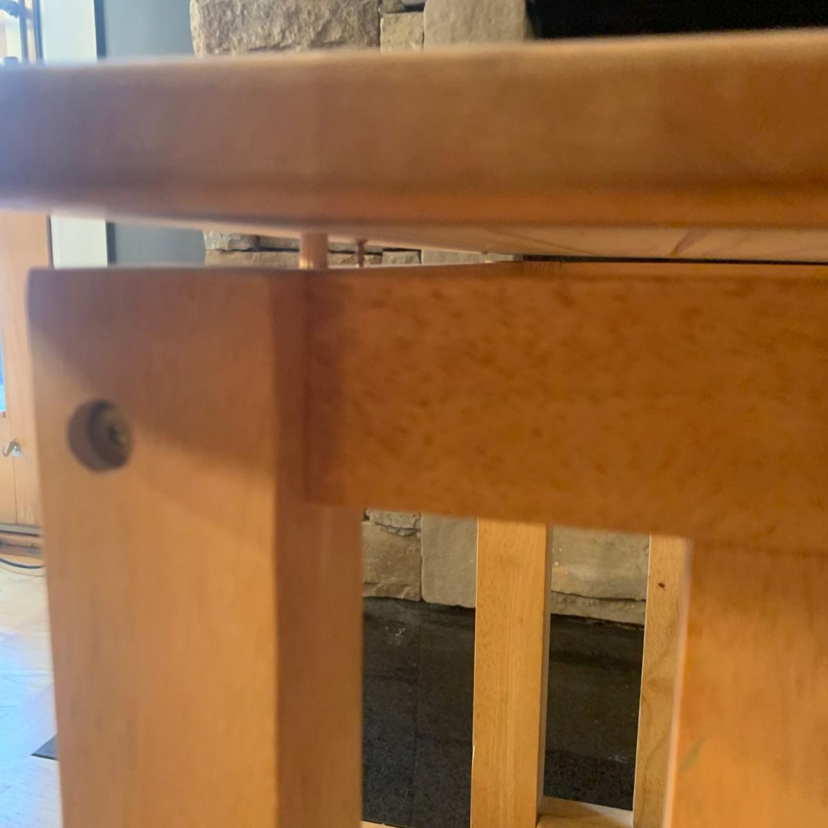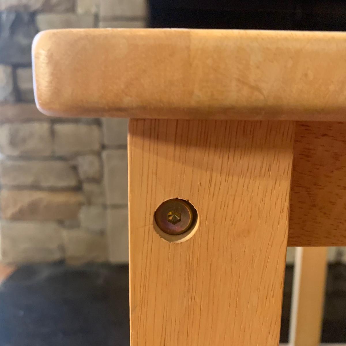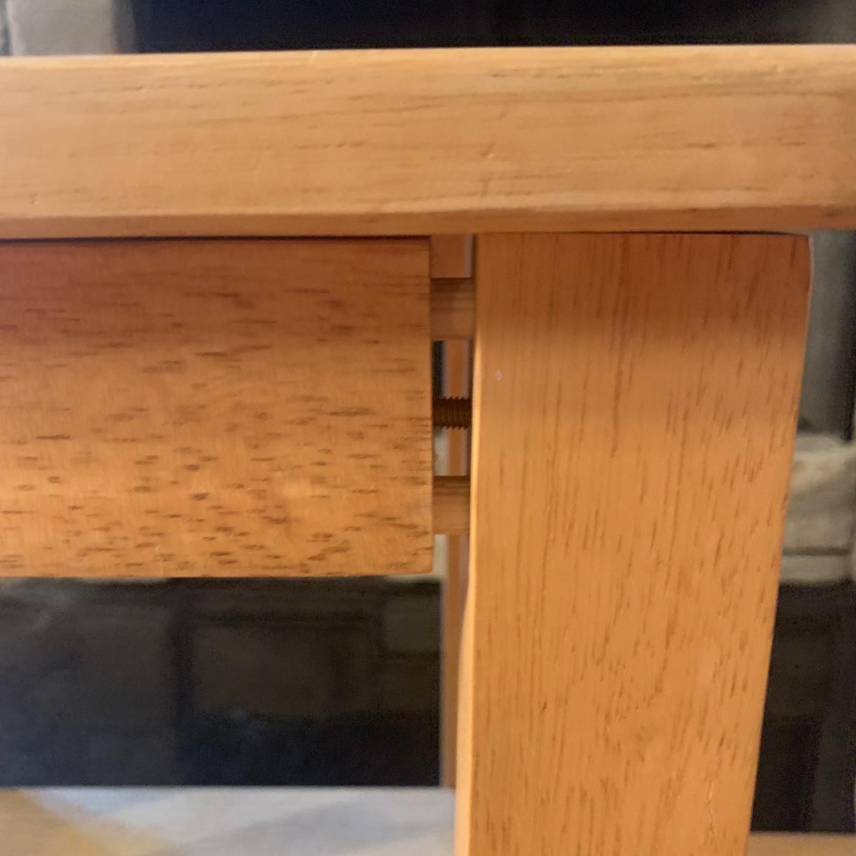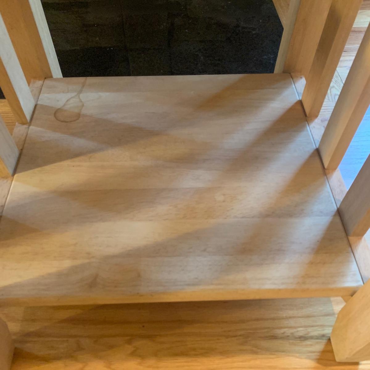 Two matching wood side tables with low shelf. Each table measures, 21”L x 21”W x 22”H. Please note, tables do have a few blemishes and will need to have hardware tightened. Give these tables a bit of attention and they will make great additions to any room!