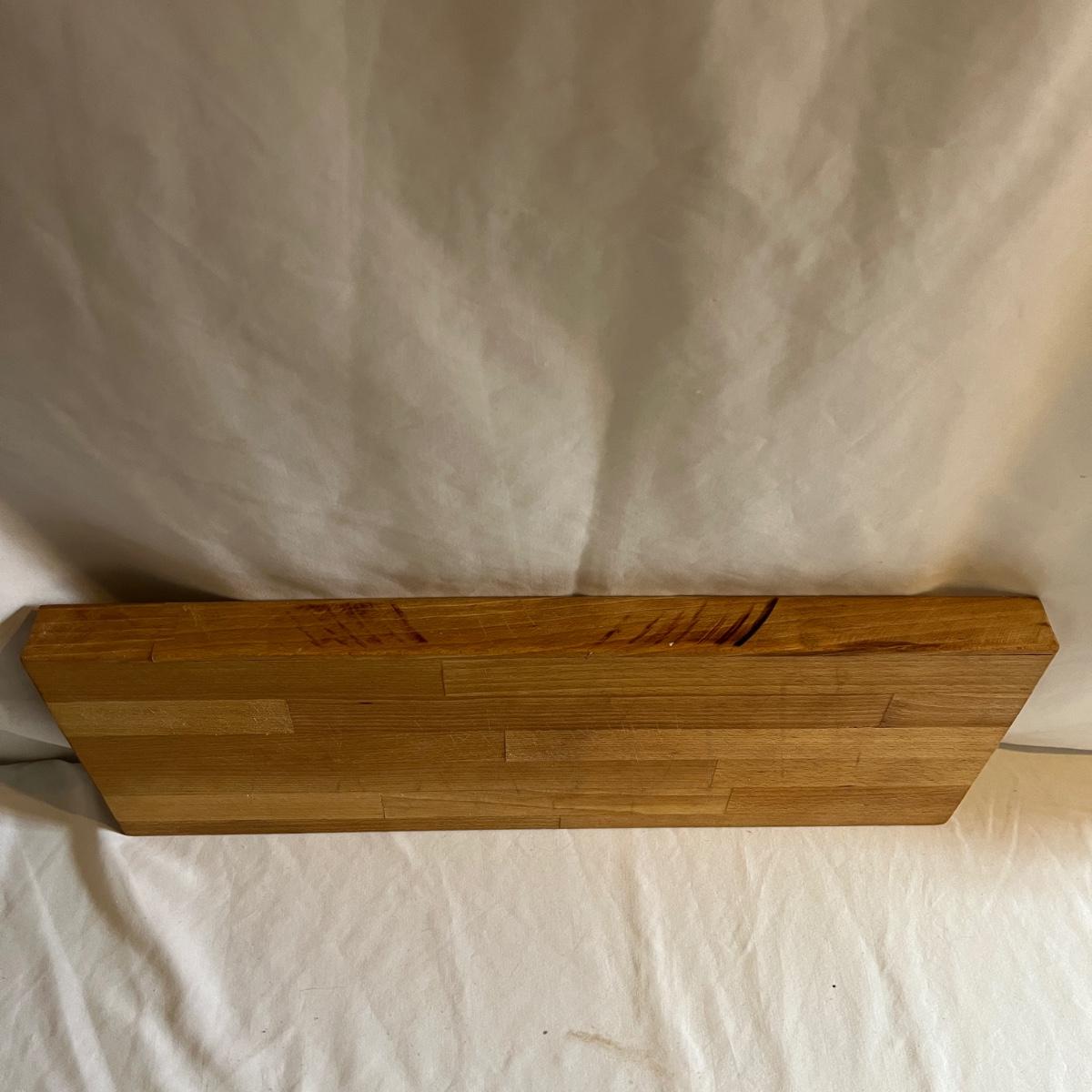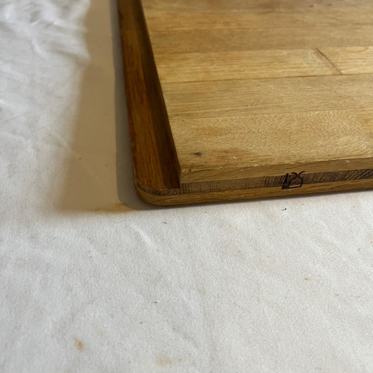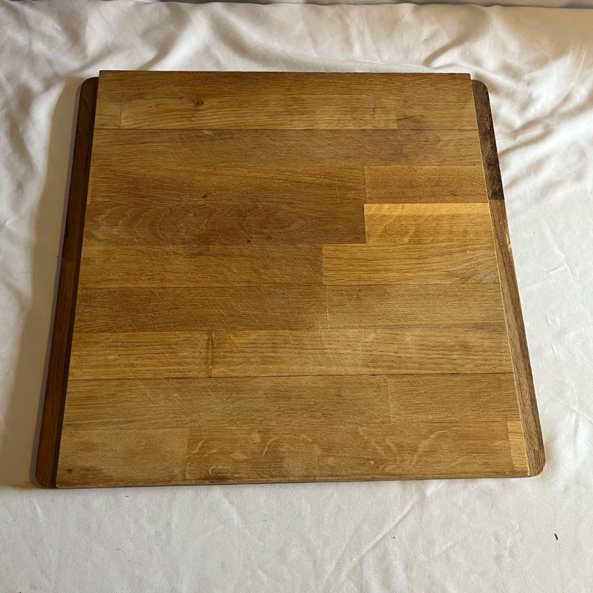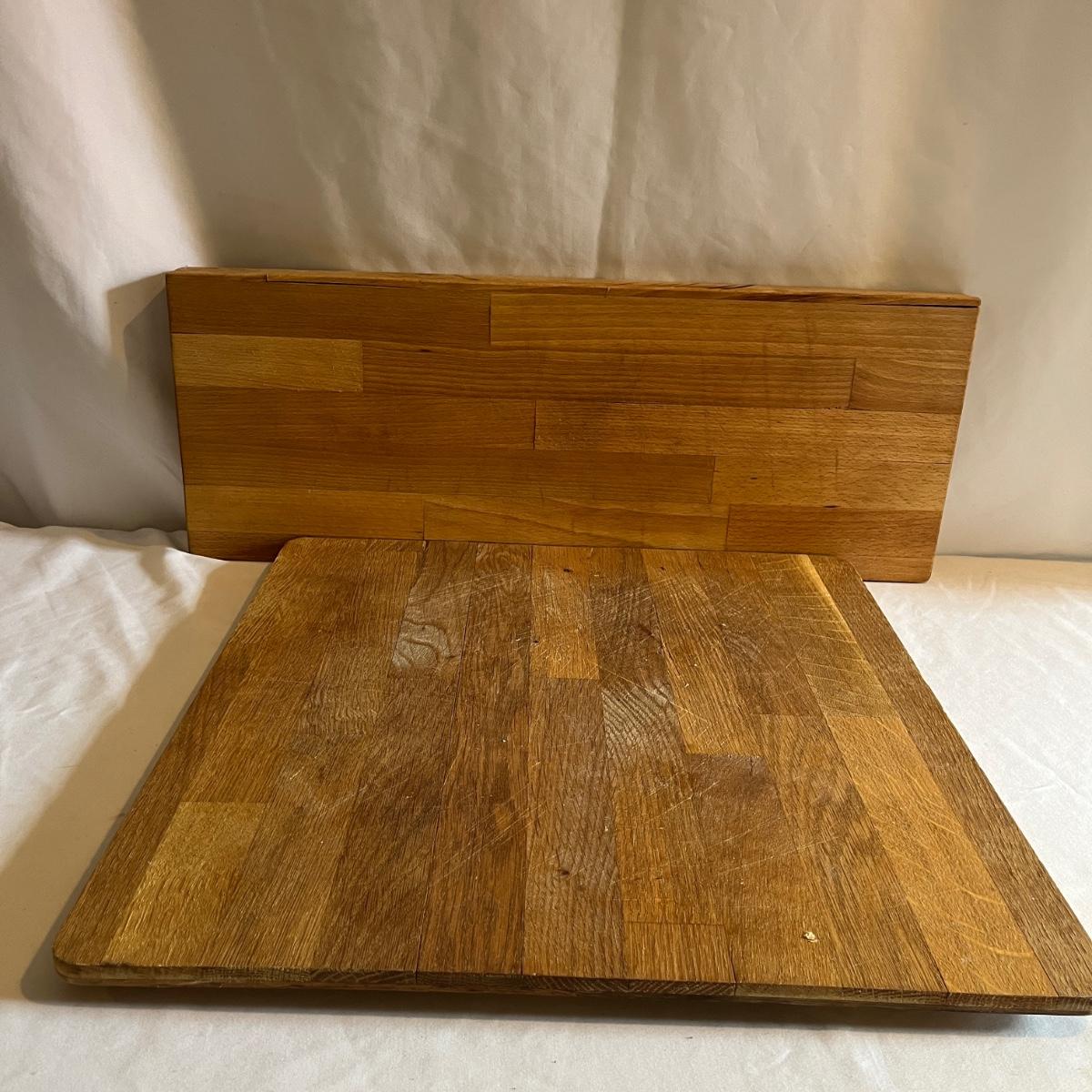 Lot includes two wooden cutting boards with the largest measuring 16” x 17” x .75” thick. Both pieces have wear, see pictures.