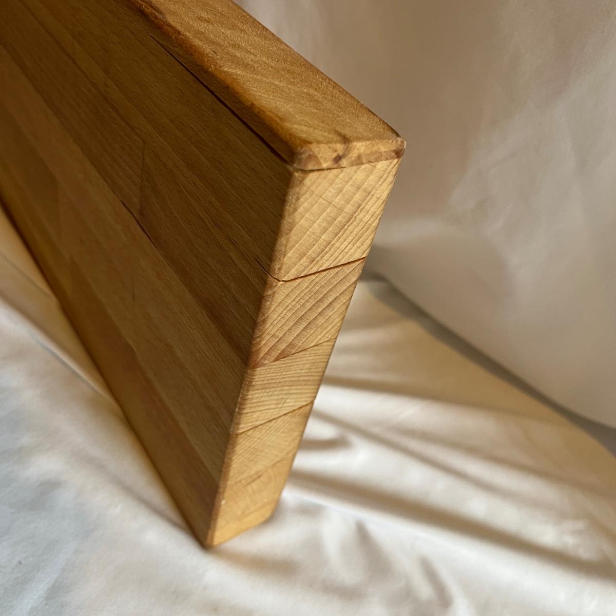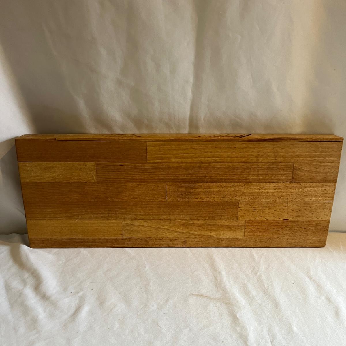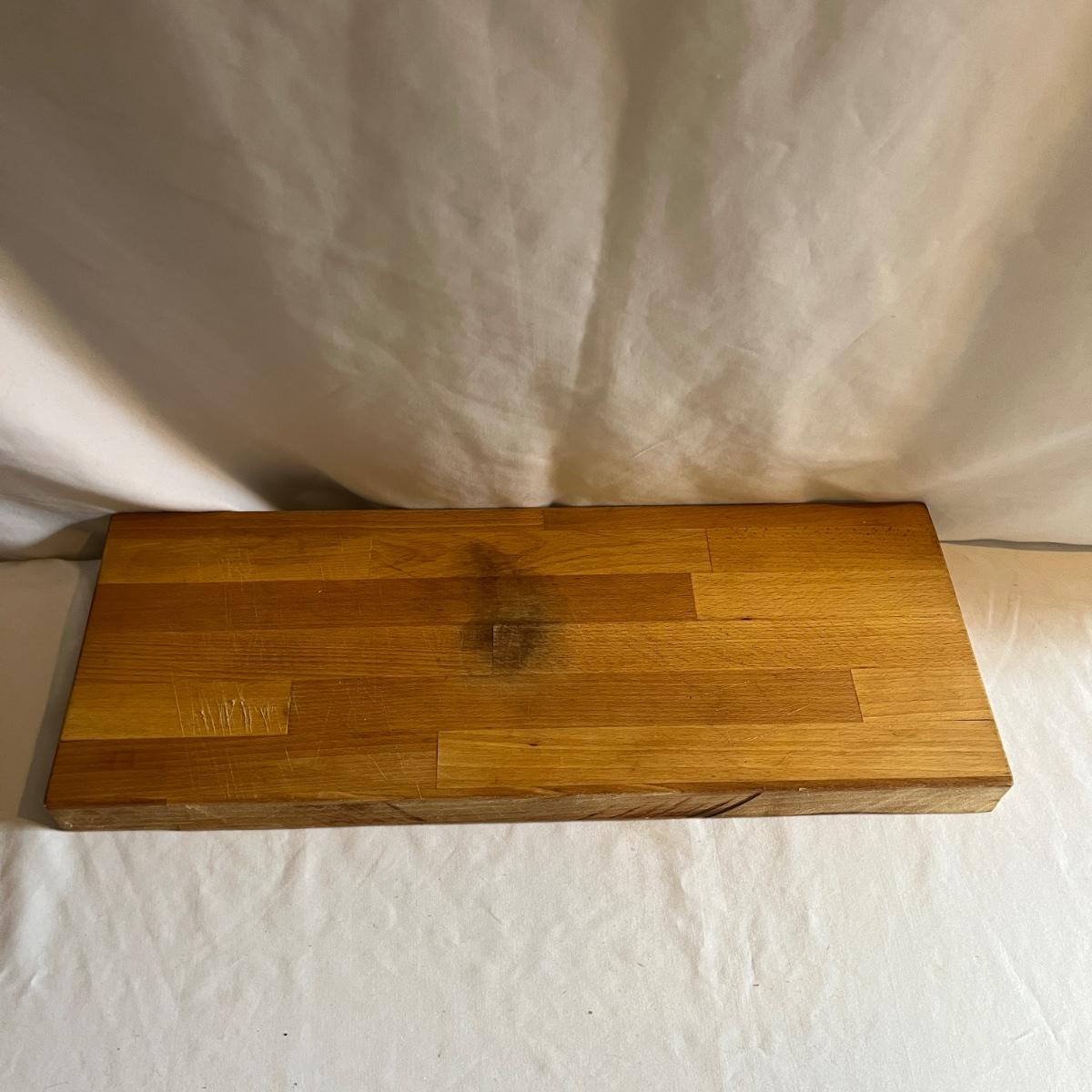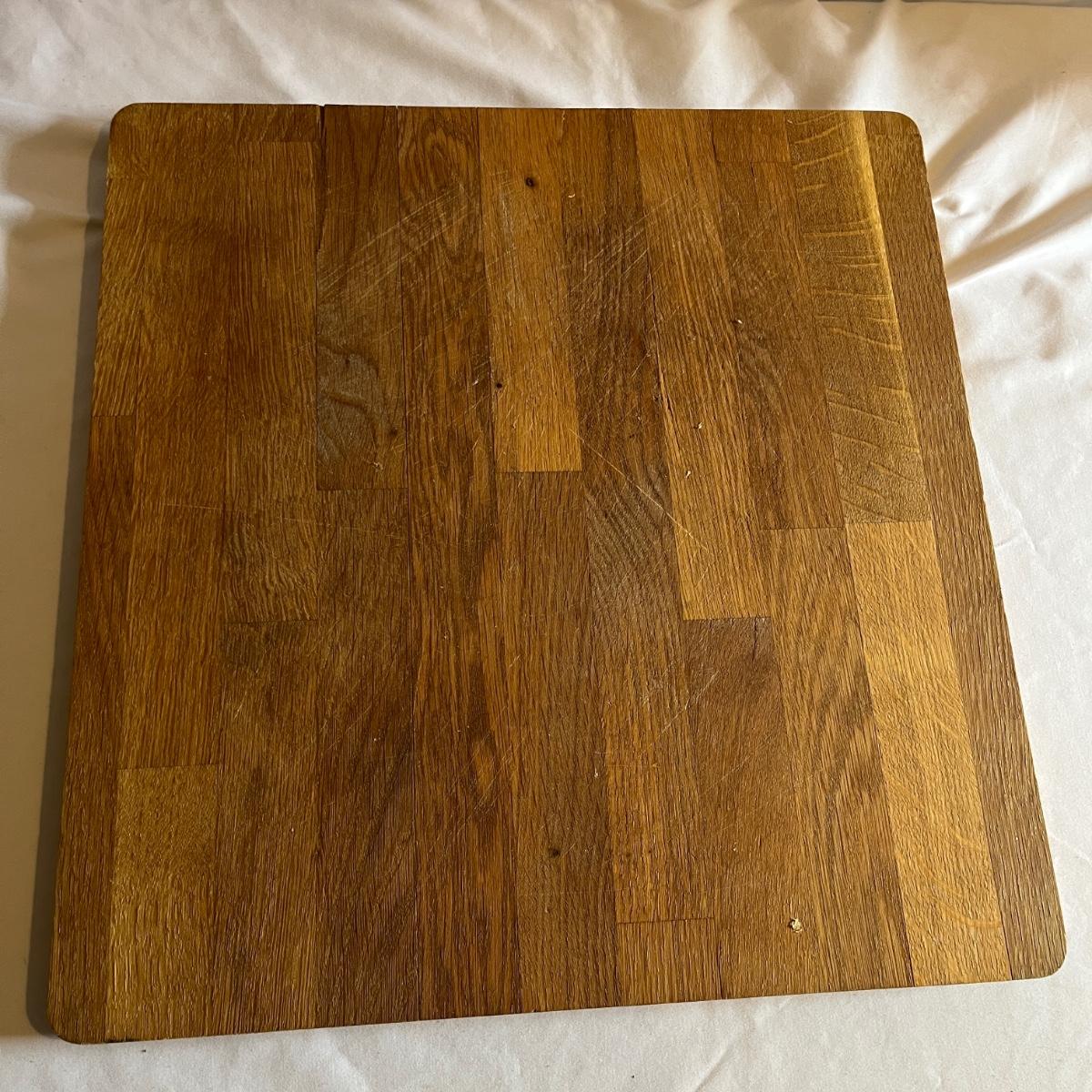 Lot includes two wooden cutting boards with the largest measuring 16” x 17” x .75” thick. Both pieces have wear, see pictures.