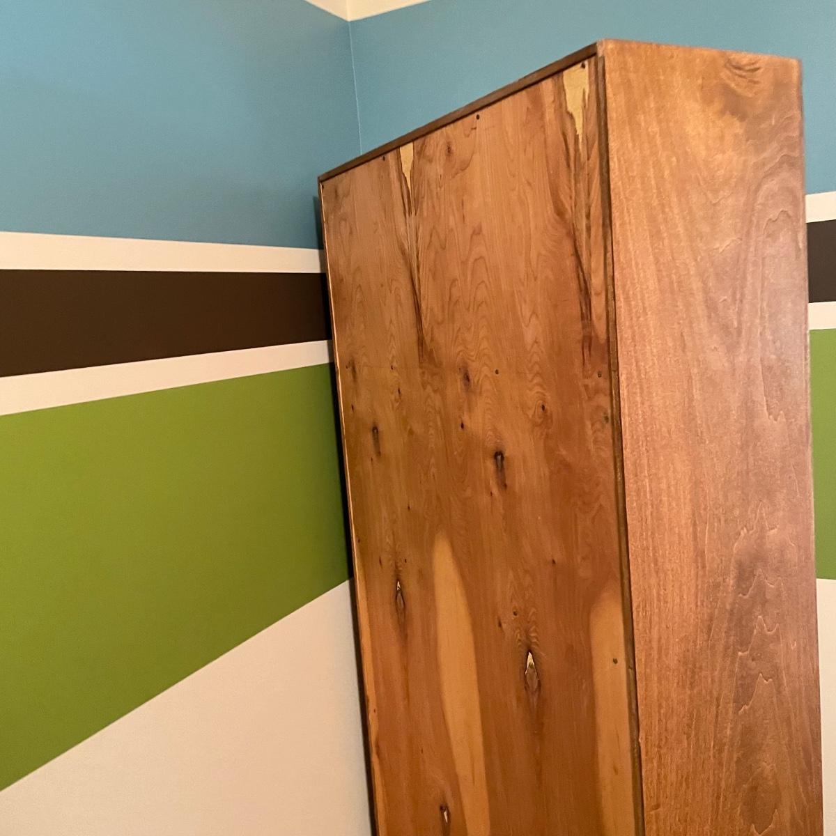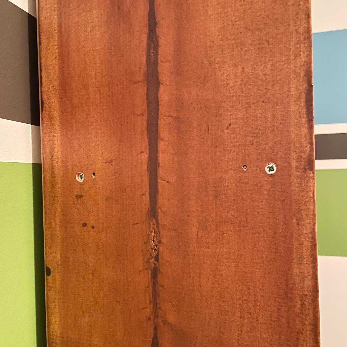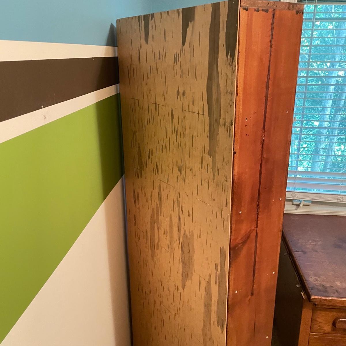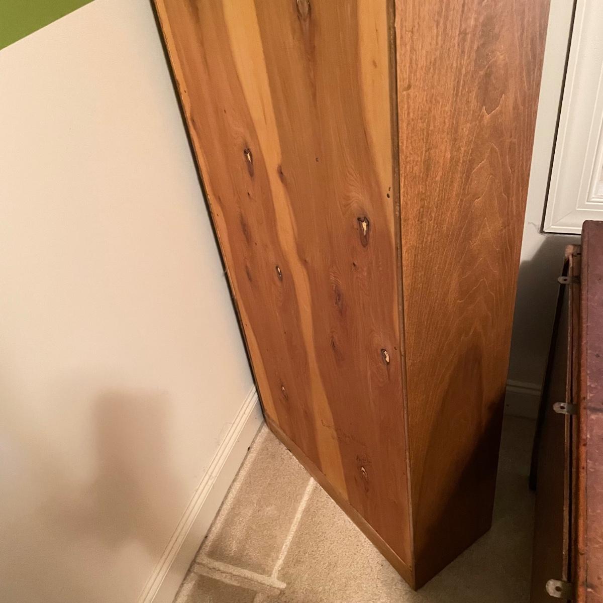 Two similar bookshelves with six fixed shelves each. The warmer-brown unit on the left appears to be solid wood. It has its shelf hardware showing on the outside. The right set of shelves appears to be pressed wood. Its hardware is mostly hidden, nail heads can be seen when looking closely. Right shelf measures 25” x 10” x 73”H. Left shelf measures 25.5” x 9.5” x 72.75”H. Local pick up only. There are just three steps off the porch to the driveway. Winning bidder must bring assistance to help move and load this item due to its weight and/or size.
