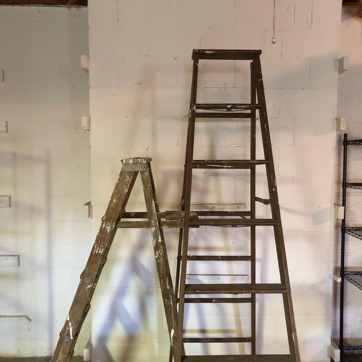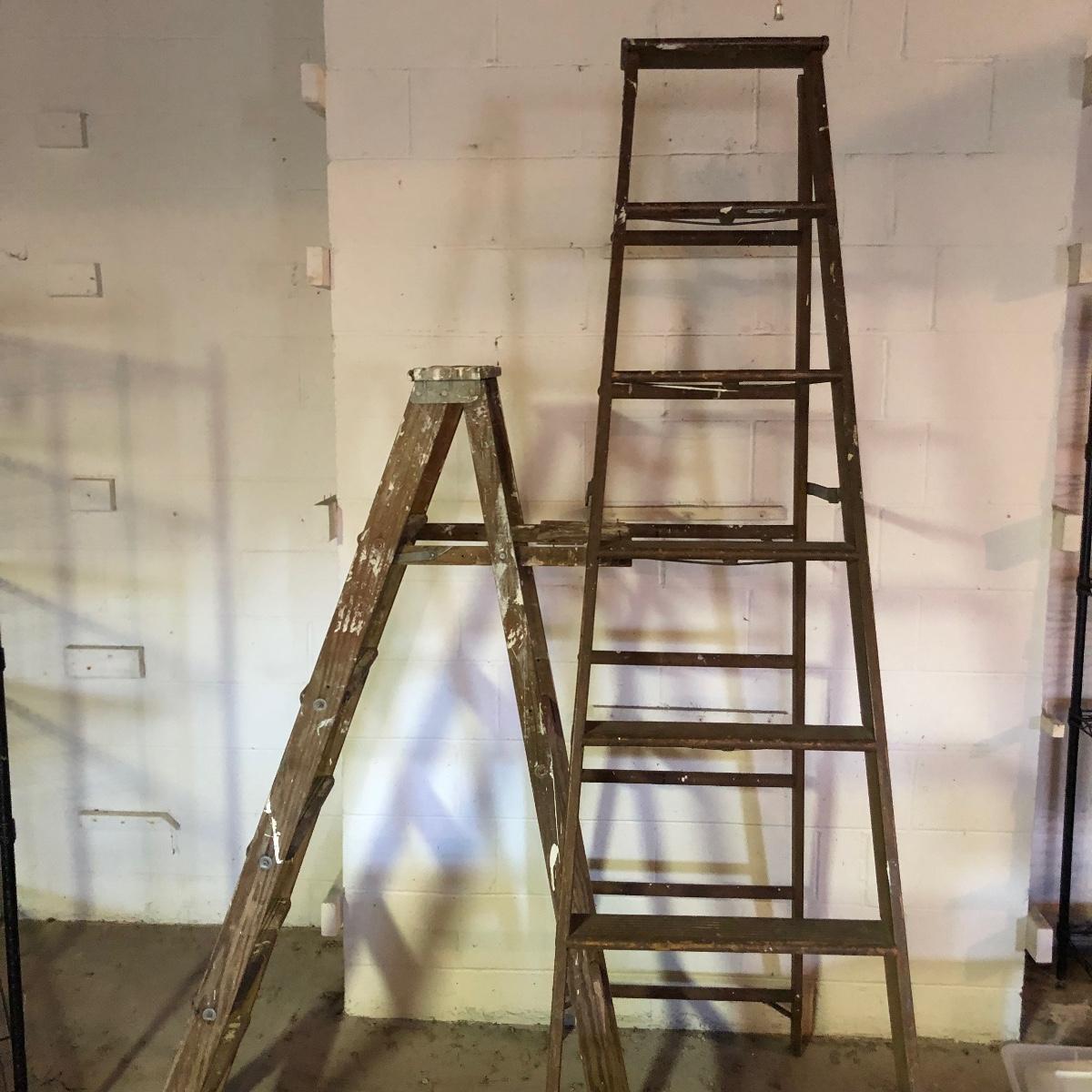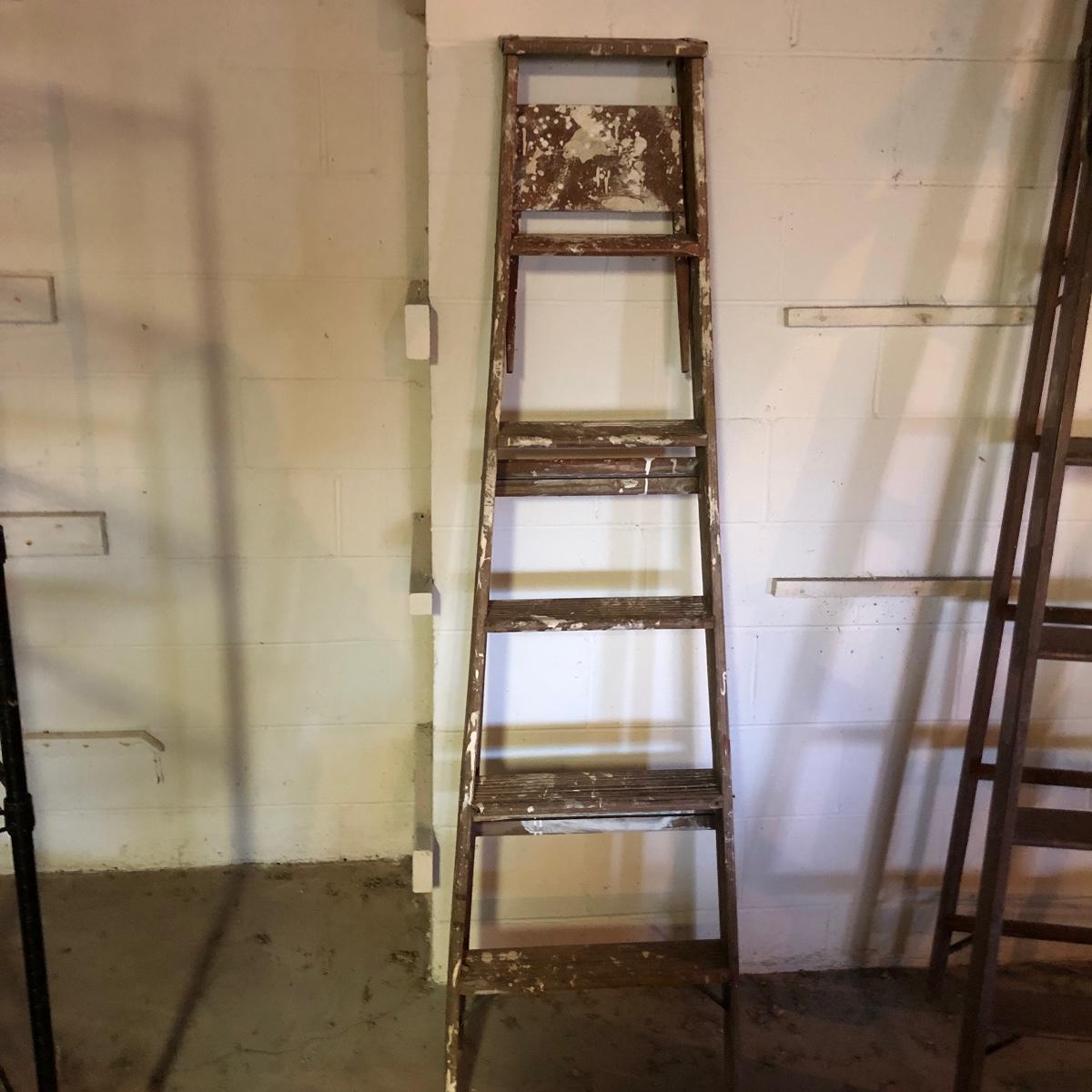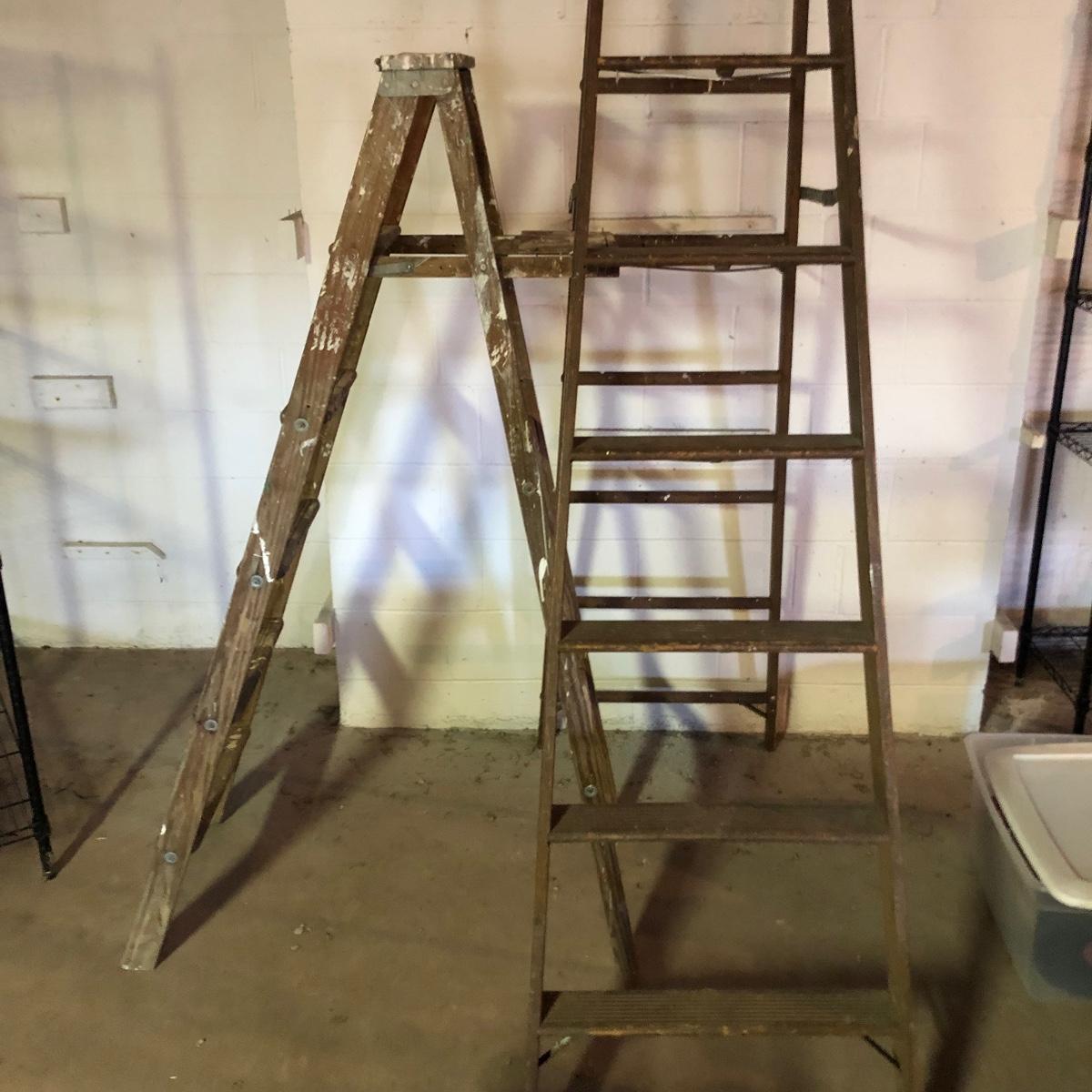 Lot includes a six foot wooden step ladder and a eight foot wooden step ladder.