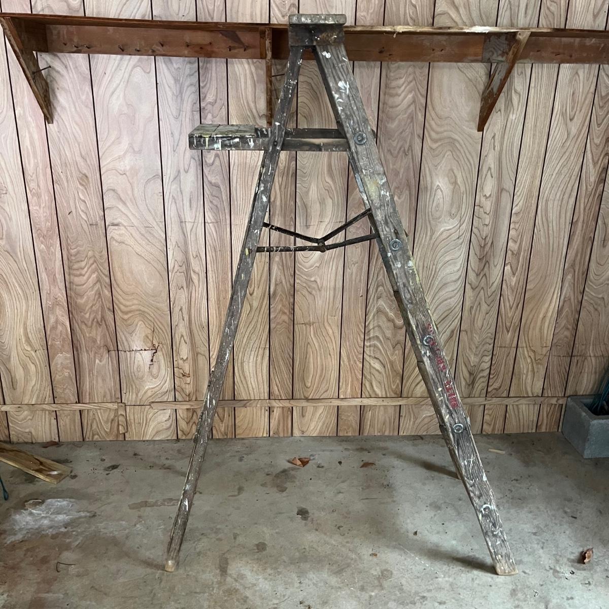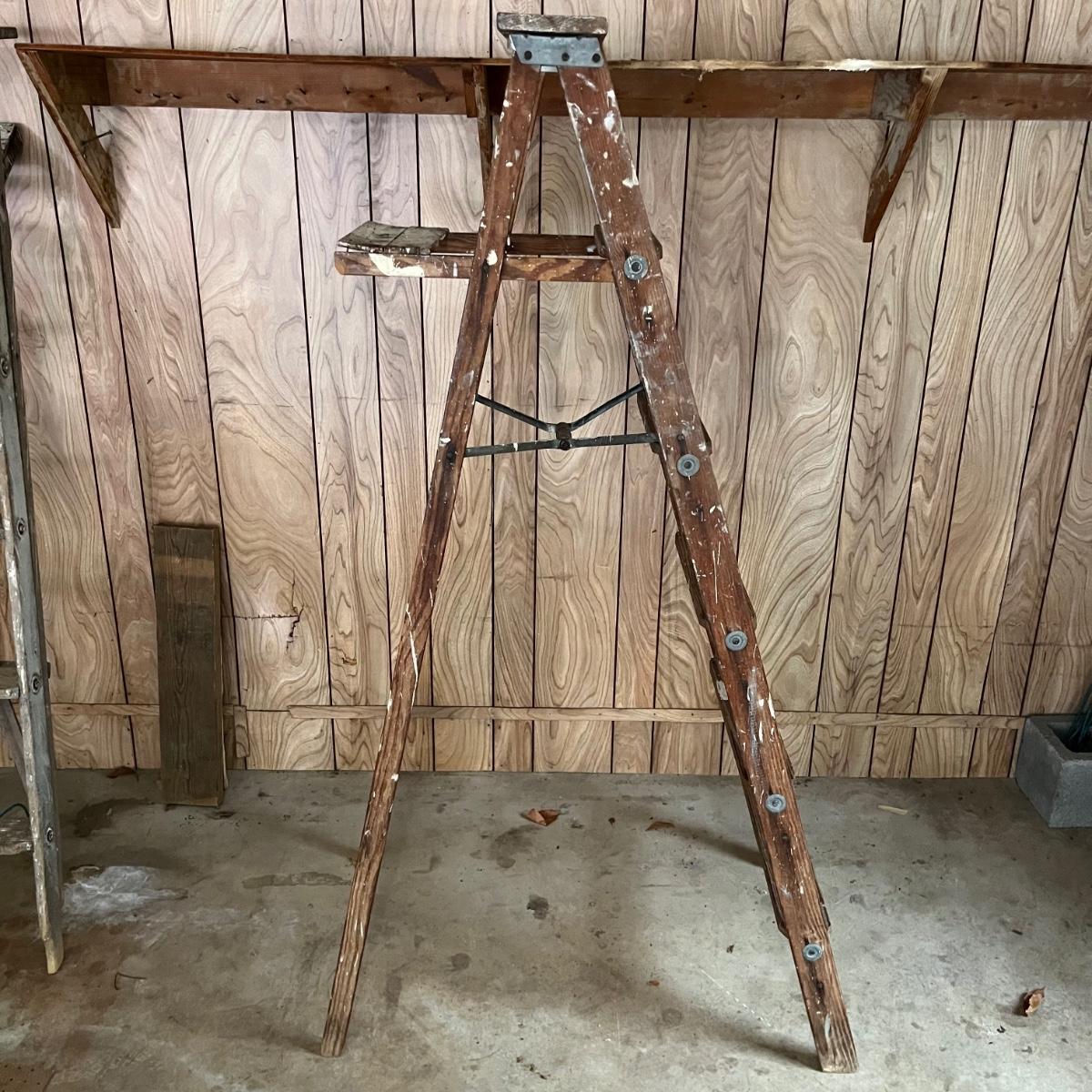 Lot includes two wooden step ladders. Both step ladders measure 70” tall when closed. Both appear to be well used but sturdy and functional.
