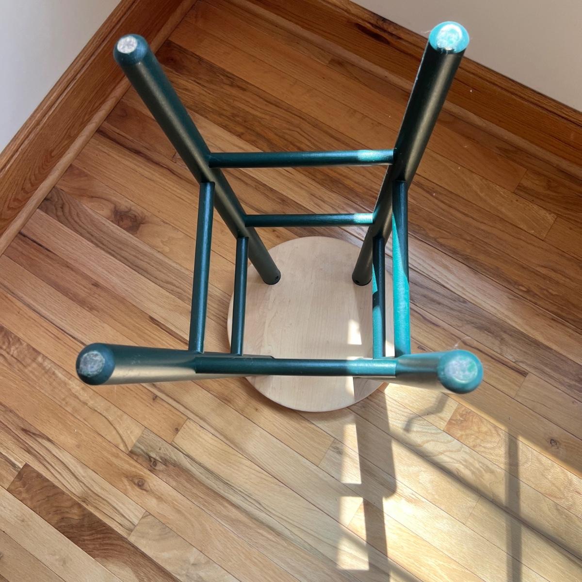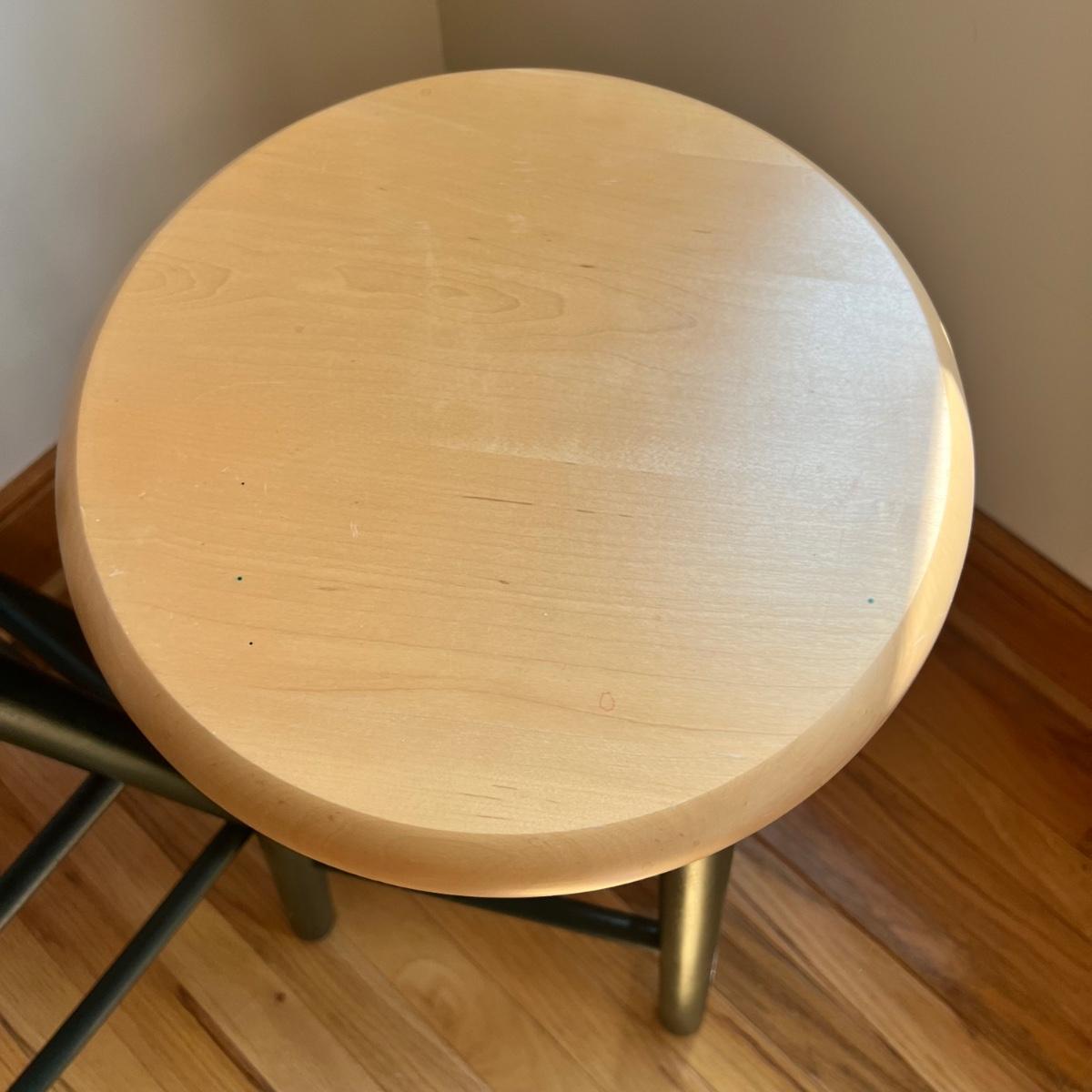 Two wooden stools. Each measures 12”D x 24”H. One has some stains on the seat, see photos.