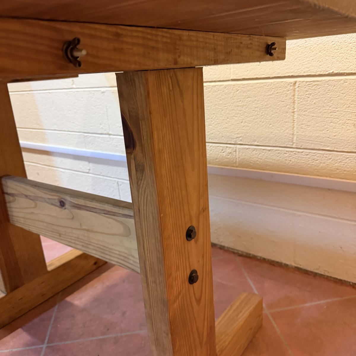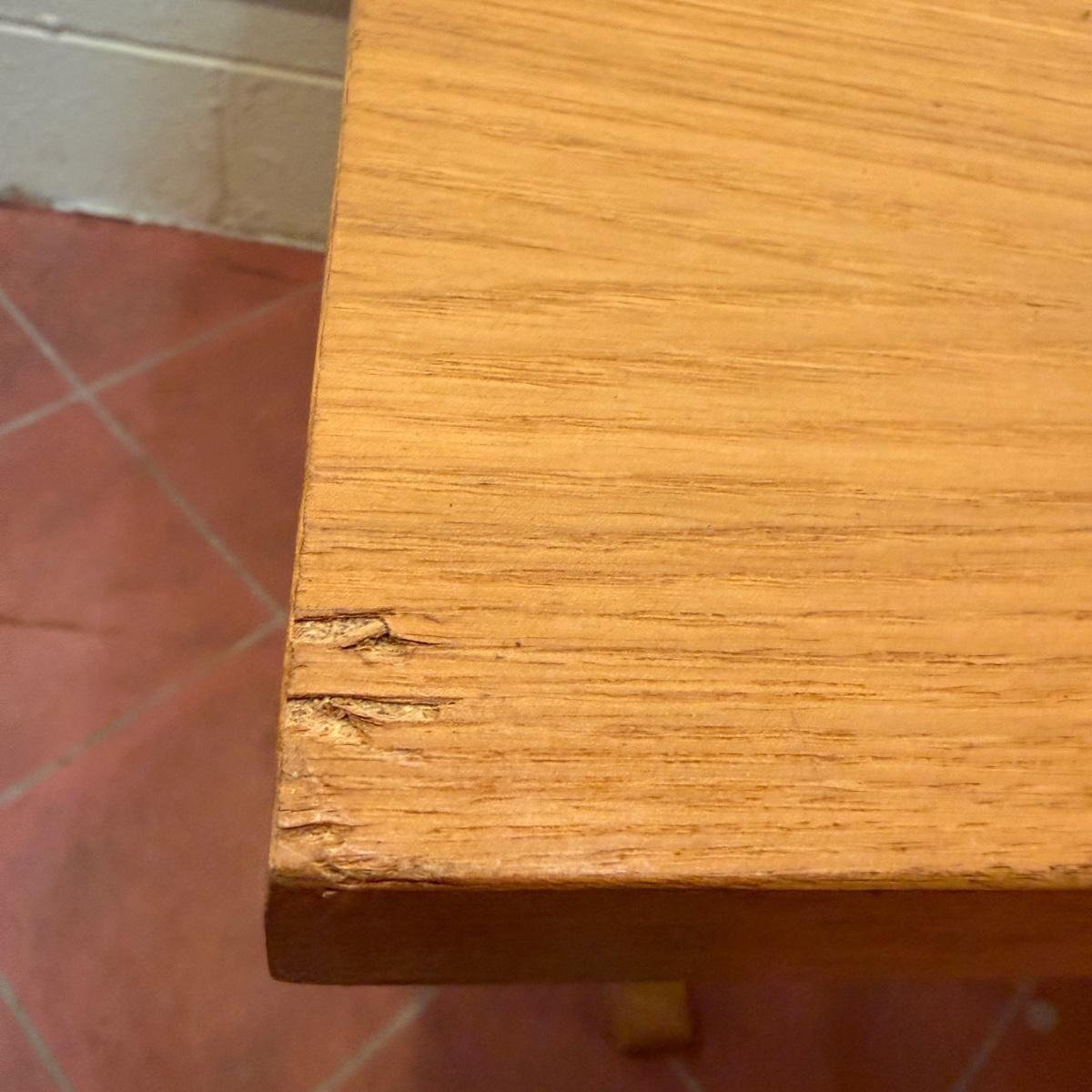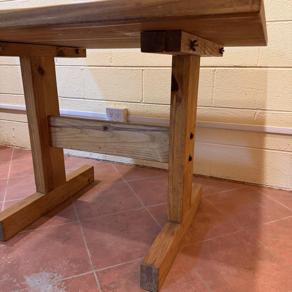 Lot includes two wooden tables. Tables appear to be solid wood and measure 60” x 30” x 29.5”H and 42” x 36” x 29.5”H. Tables have nicks and scratches, see pictures.