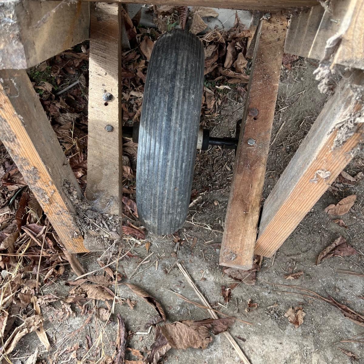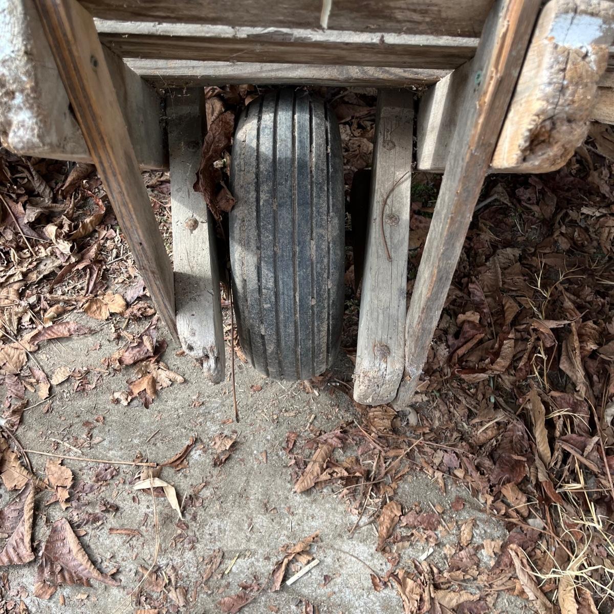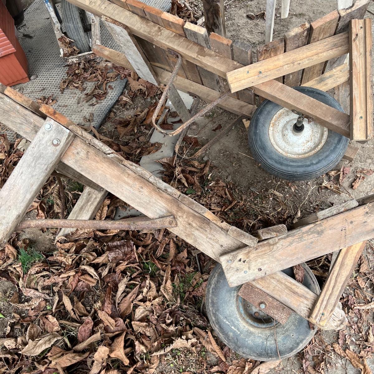 Lot includes two wooden home made wheelbarrows that were used for moving firewood. Wheelbarrows measure 24” x 55” x 24”.