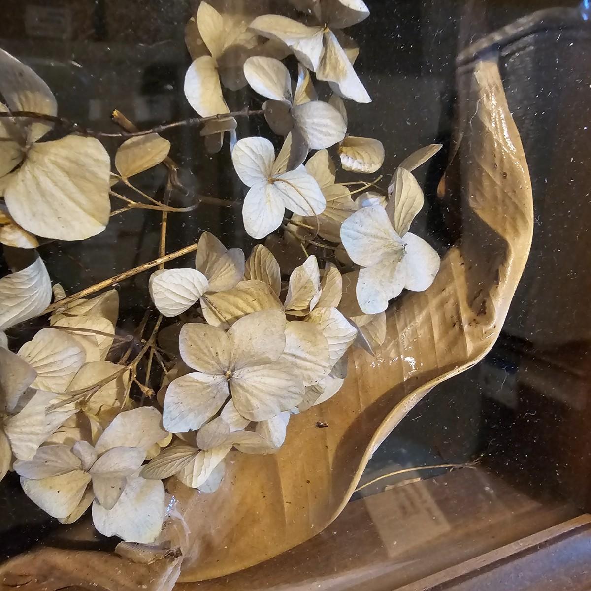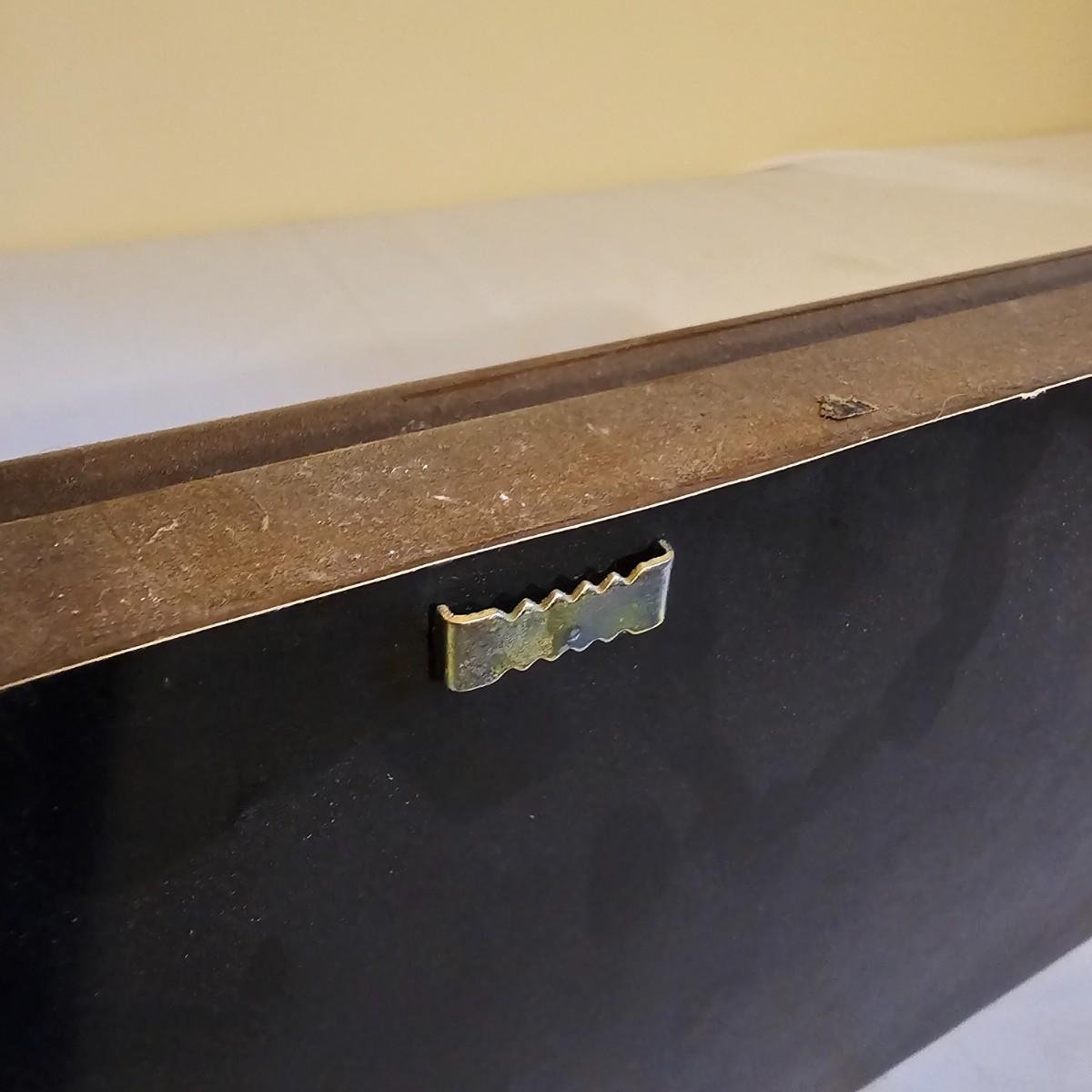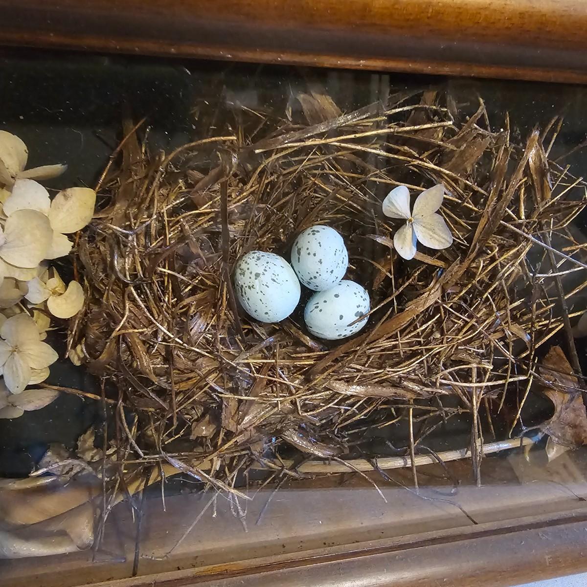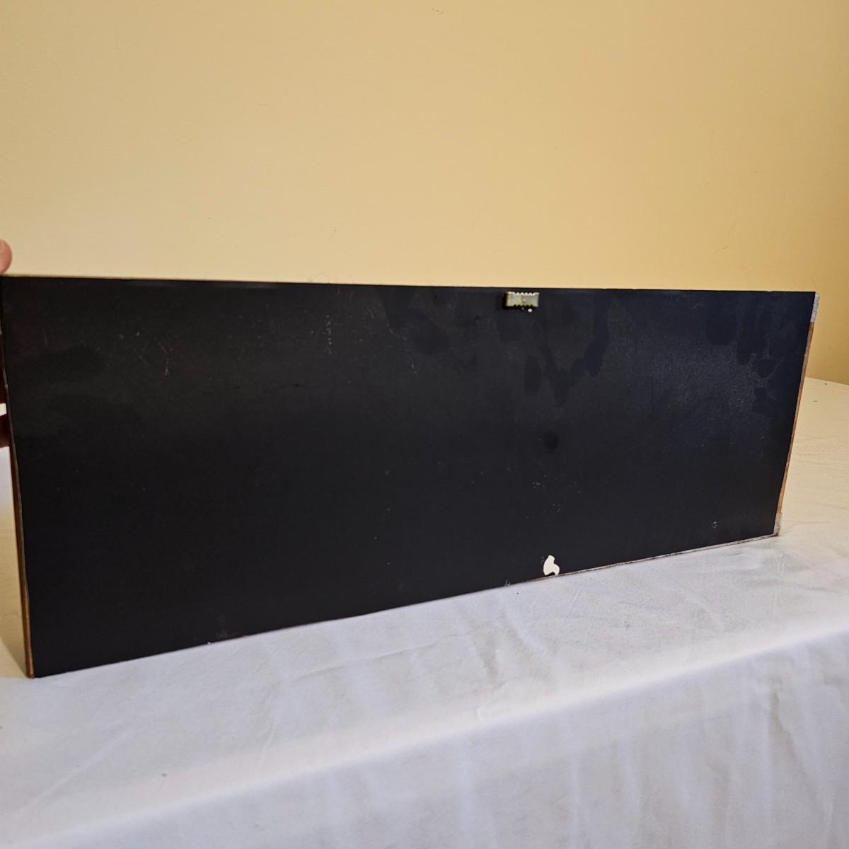 A pair of decorative framed shadow boxes with woodland elements contained inside. Leaves, pinecones, moss, fungi, seed pods, bird nests and more between the two pieces. The wider/smaller frame has glass, the larger square frame is likely plexiglass, but we cannot say for sure. Large item measures 16" x 2.5" x 16"H. Long piece is 21.5" x 2"x 7.5"H. Some minor blemishes on framework. See photos for details. Shipping available. Shipping can be costly. We suggest contacting our preferred local shipping provider, Postage Express, with dimensions and getting an estimate before bidding: (828) 255-9250 or shipping@postageexpressnc.com.