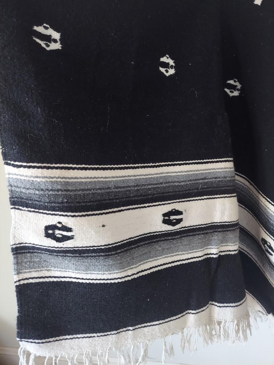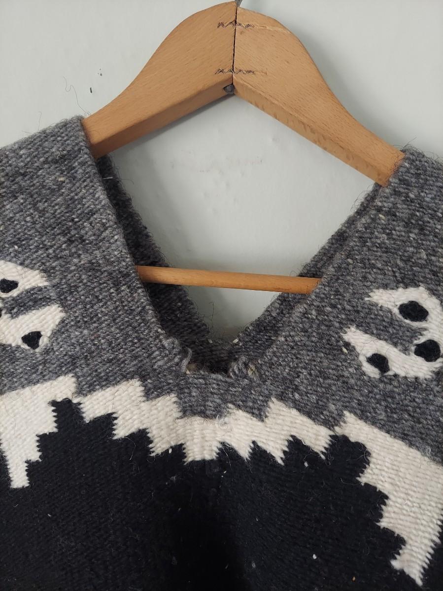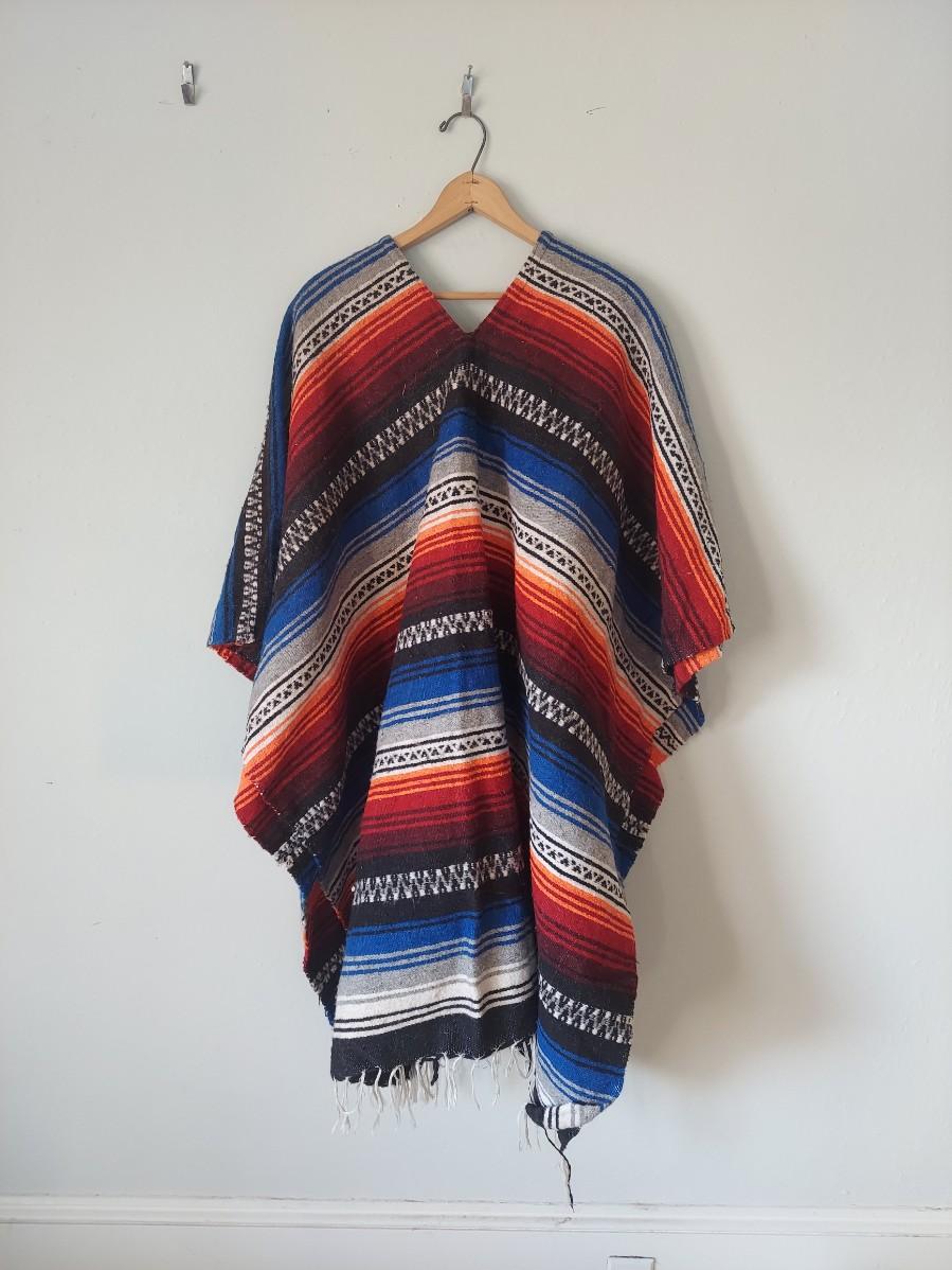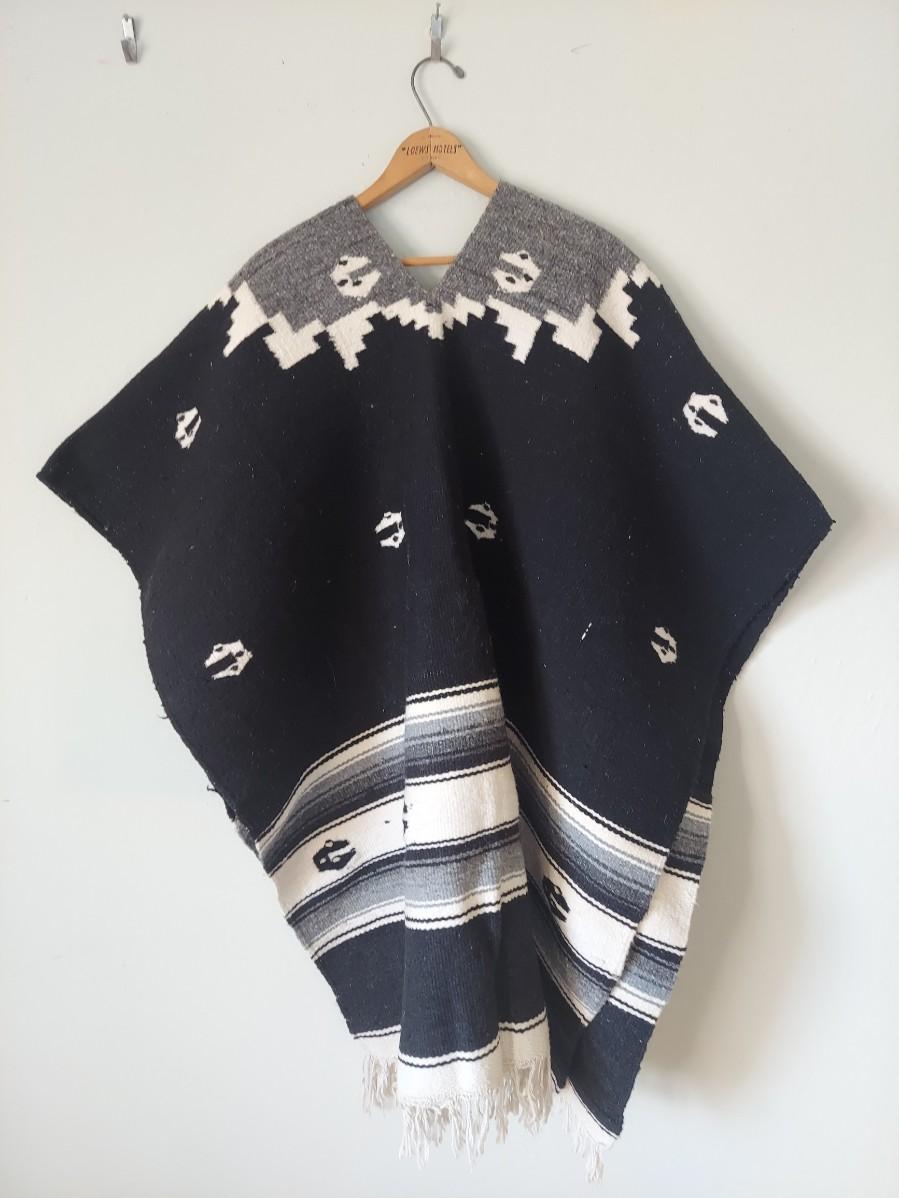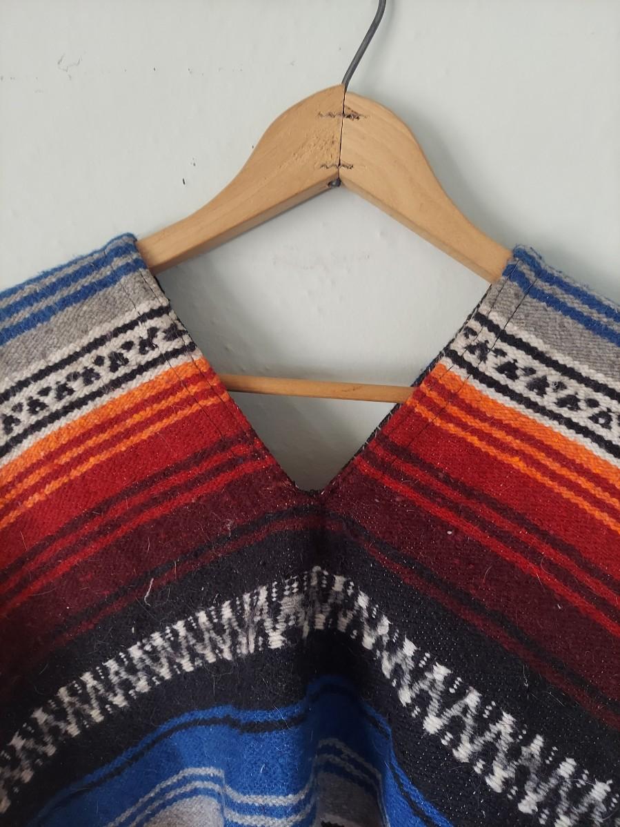 Two serape style poncho that appear to be wool. Neither has tags. They are one size fits “most.” They could each use a good cleaning after neing store a long time. Please see photos for details. Shipping available