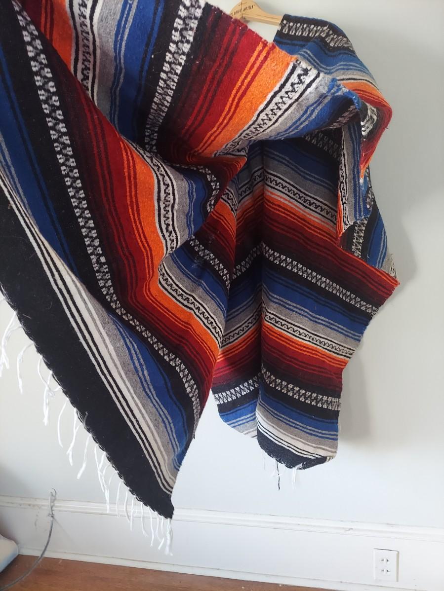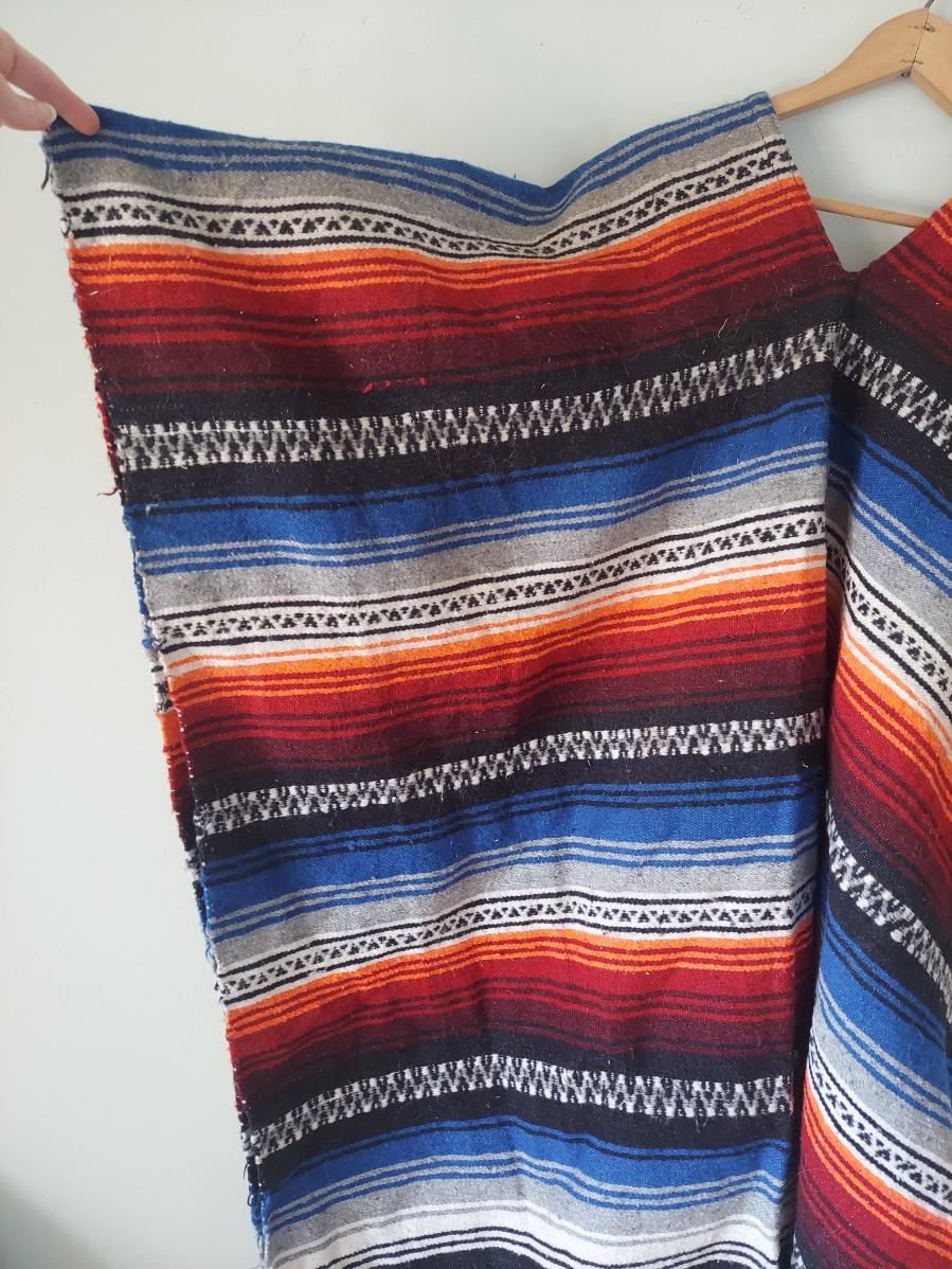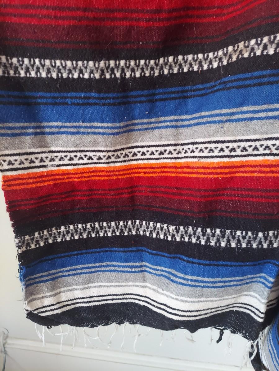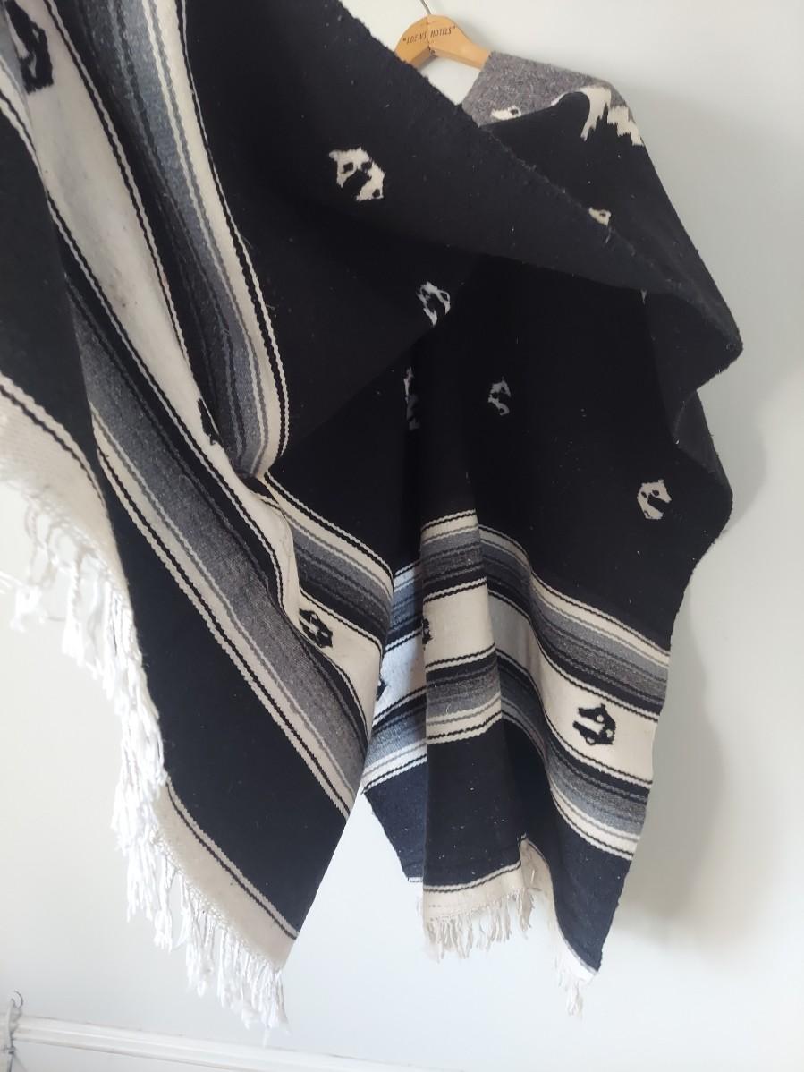 Two serape style poncho that appear to be wool. Neither has tags. They are one size fits “most.” They could each use a good cleaning after neing store a long time. Please see photos for details. Shipping available