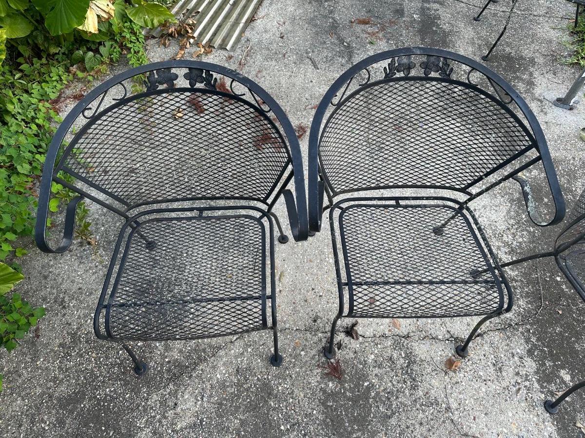 Two wrought iron outdoor chairs