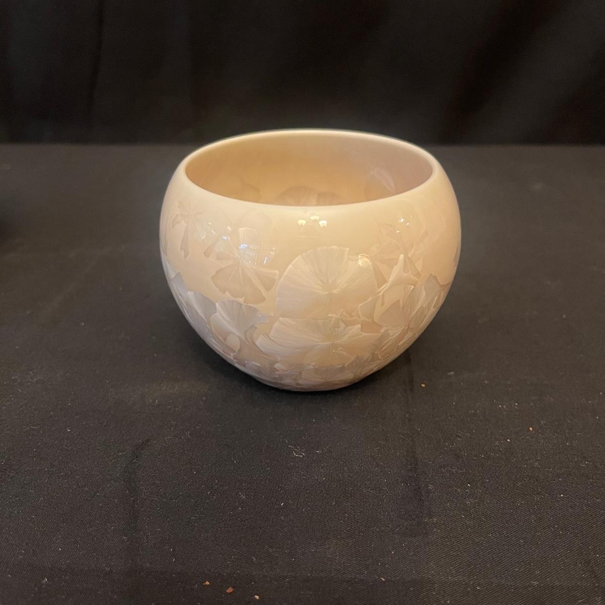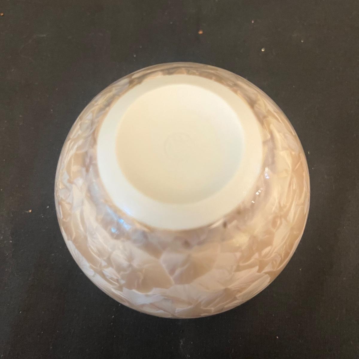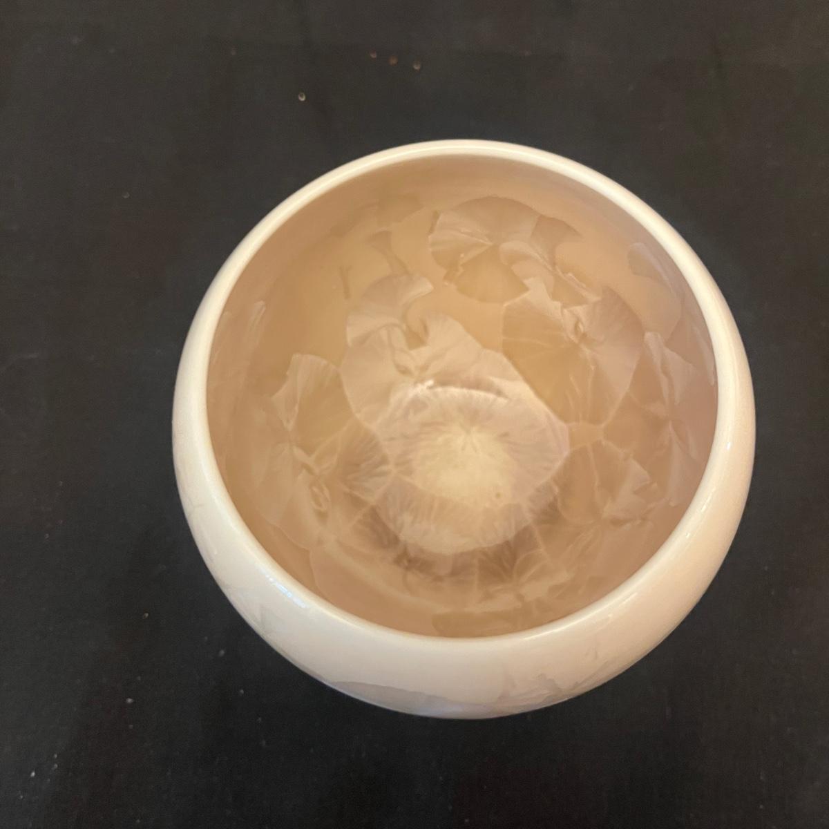 These two Yunomi Japanese tea cups have beautiful and unique crystal glazes. Both are pale colors, one a light green and the other a pale pink. Both cups are signed. Cups measure 3.5”D x 3”H.