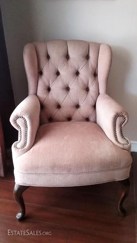 TwoQueen Anne Style Upholstered Tan Chairs