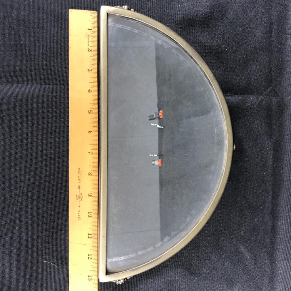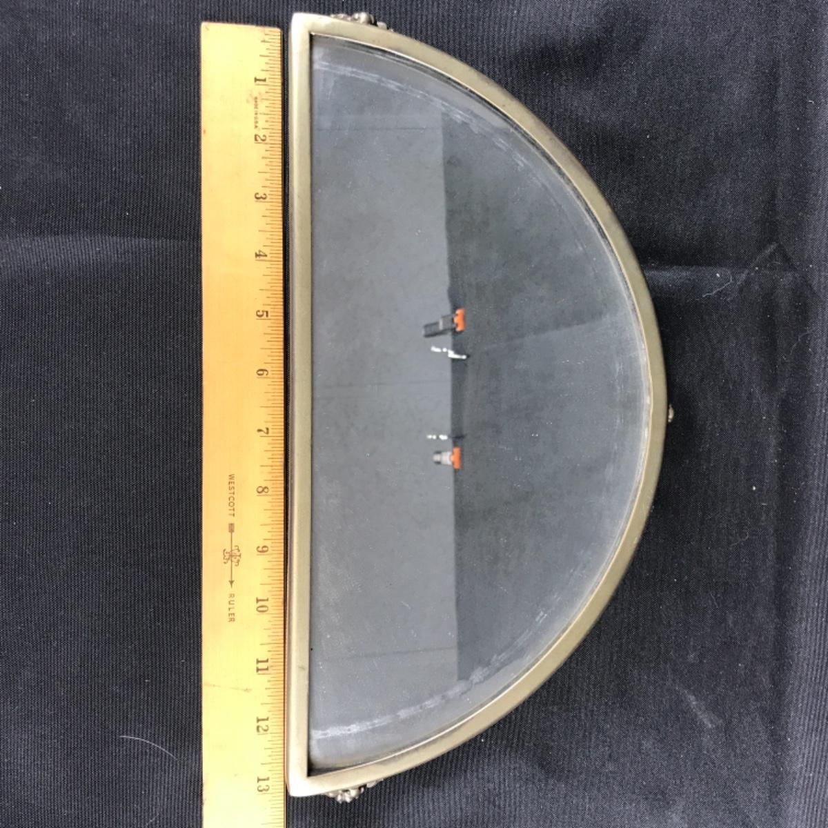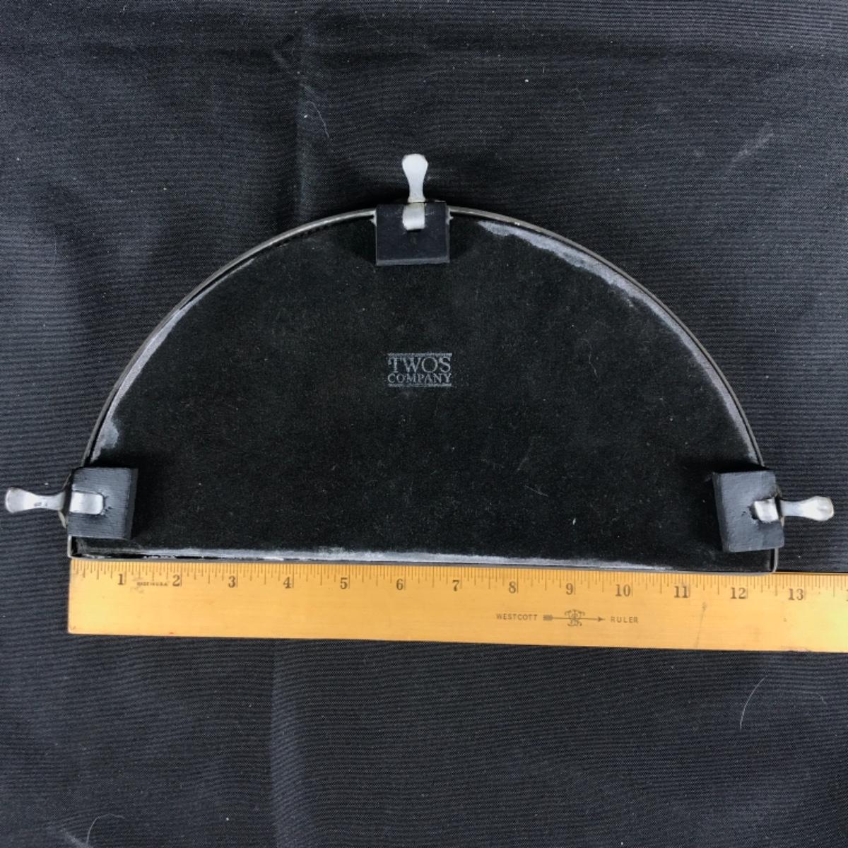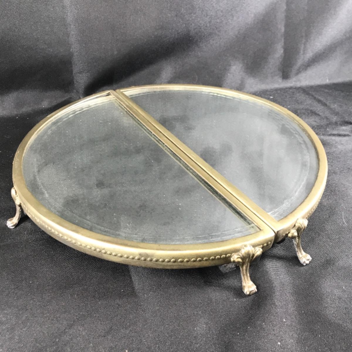 Footed mirrored half circle vanity tray displays. Mirrored glass on a metal base; see pictures.