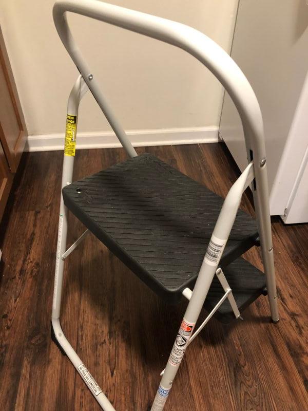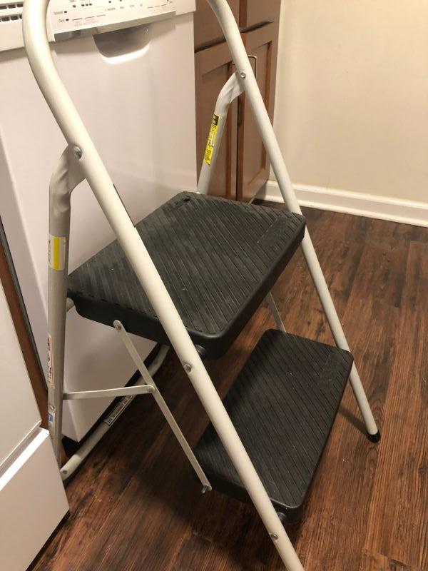 Two-step Step Stool **Please read Terms and Conditions before placing a bid. Pick up is Thursday, August 15, 2019 from 4pm to 7pm or Sunday, August 18 from 11am-2pm in Mullica Hill. All sales are final. All sales are as is, where is. Please review all photos. Any props included in photos are not included in listing. All measurements are approximate.
