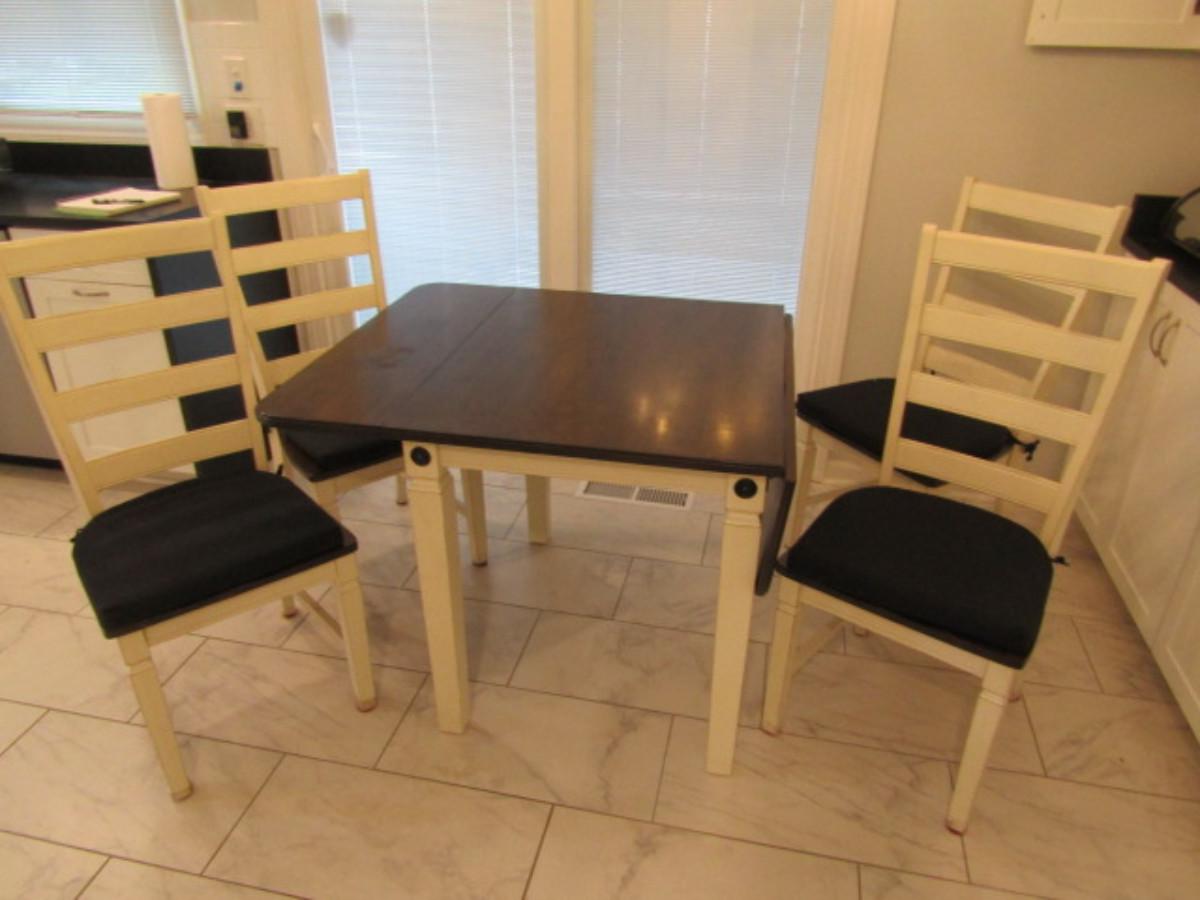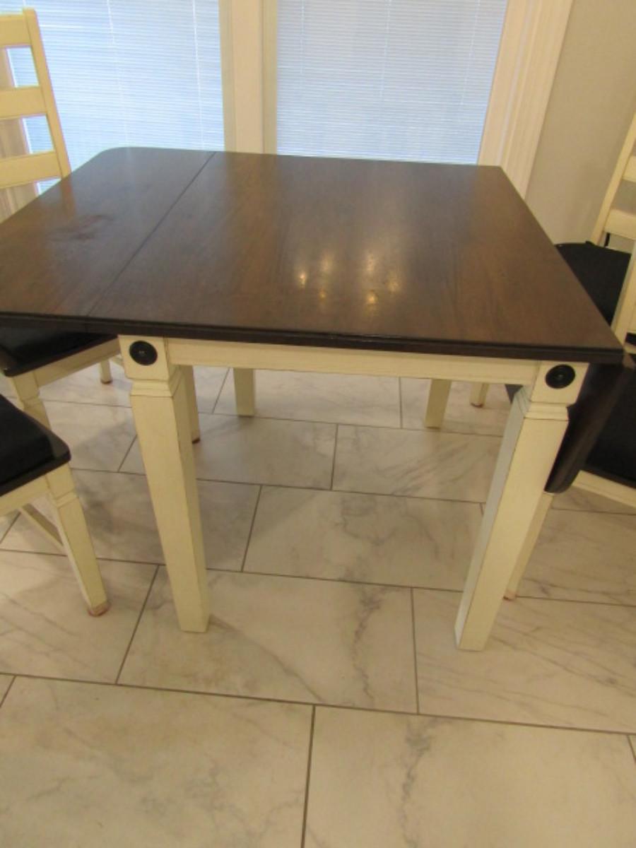 Two-Toned Drop Leaf Table with Four Ladder Back Chairs