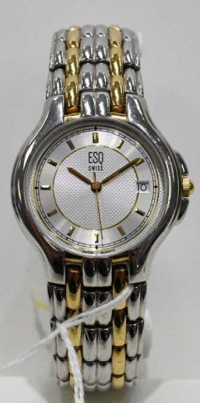 Two-Toned Quartz ESQ Swiss Movado Round Man's E5006 Stainless Steel Watch. Excellent Working Order & Excellent Condition. Beautiful Watch!!