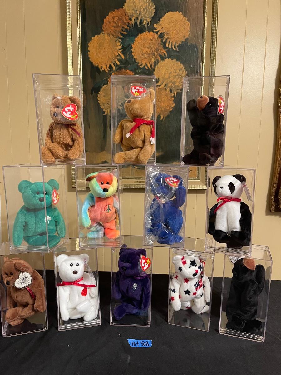 Lot of (12) Ty Beanie Babies *NWT* in plastic showcase