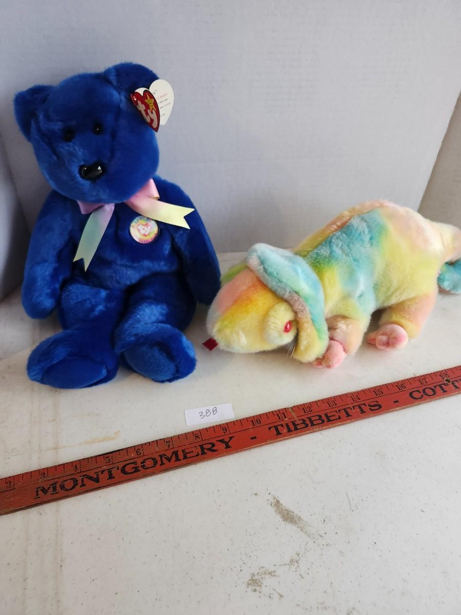 TY Beanie Babies Buddy CLUBBY and Rainbow' the Tie-Dye Chameleon