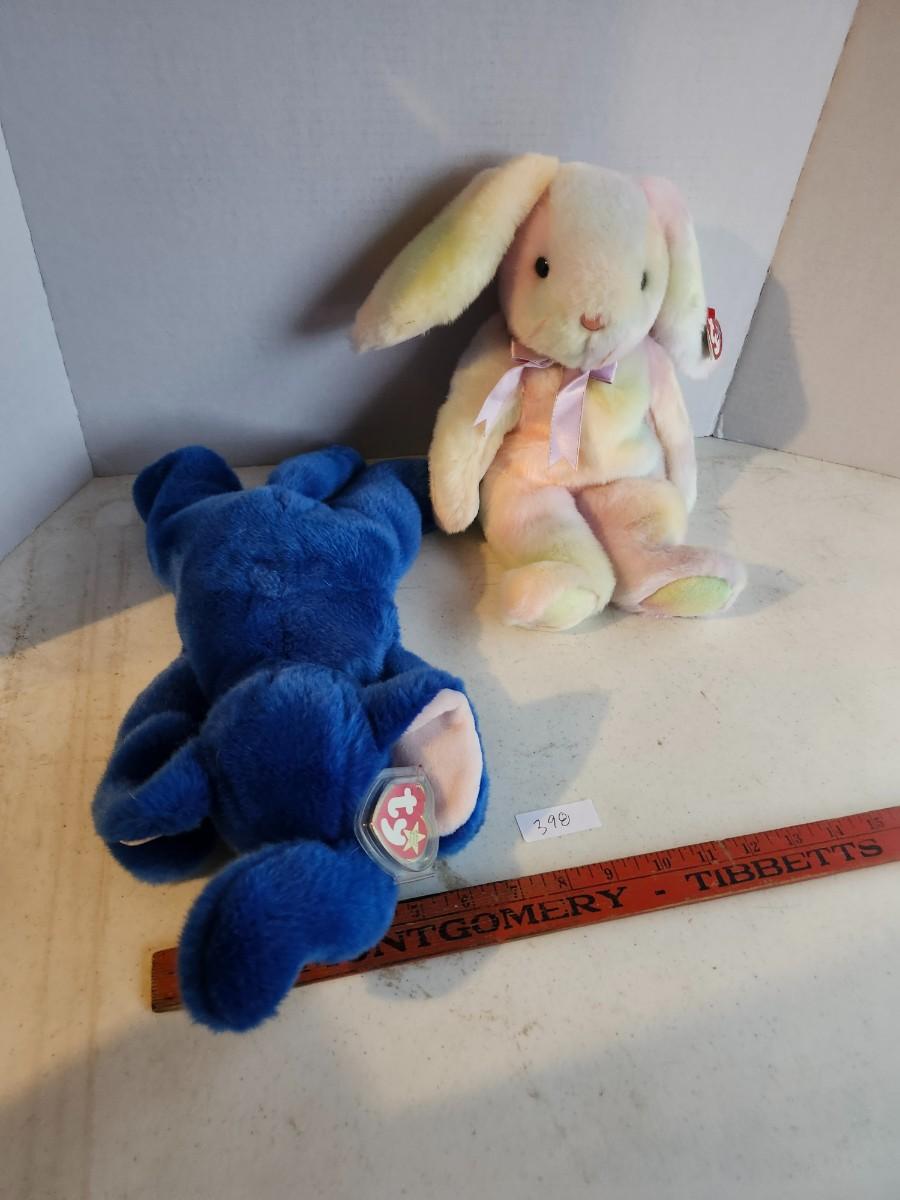 Ty beanie baby Hippie the bunny and Peanut the Elephant