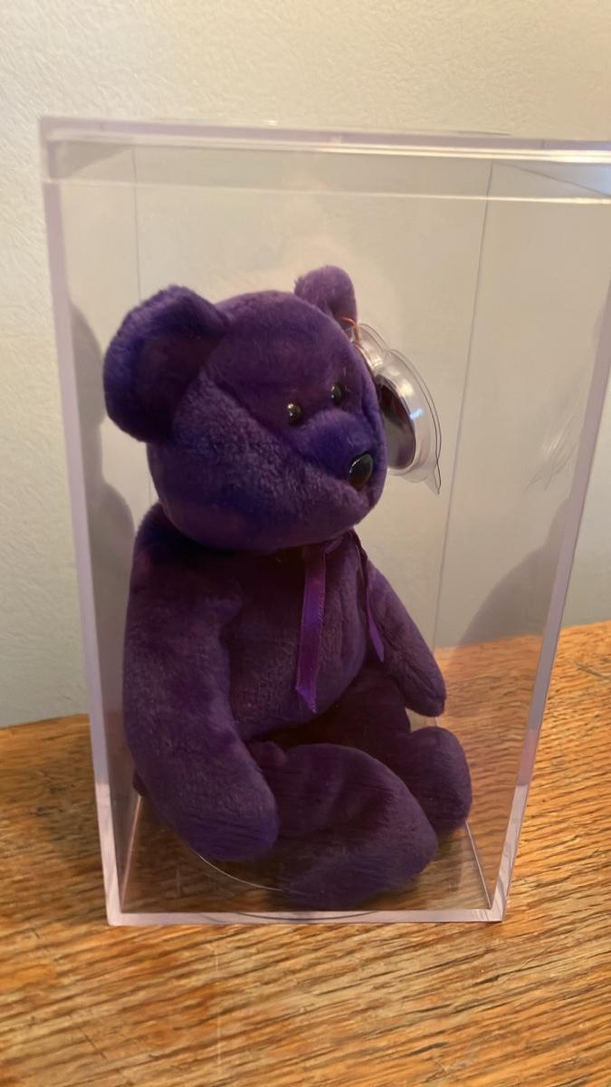 Ty Beanie Baby "Princess" Diana Bear - Made in Canada, PE Pellets, Mint Condition with Original Plexiglass Display Case (1997)