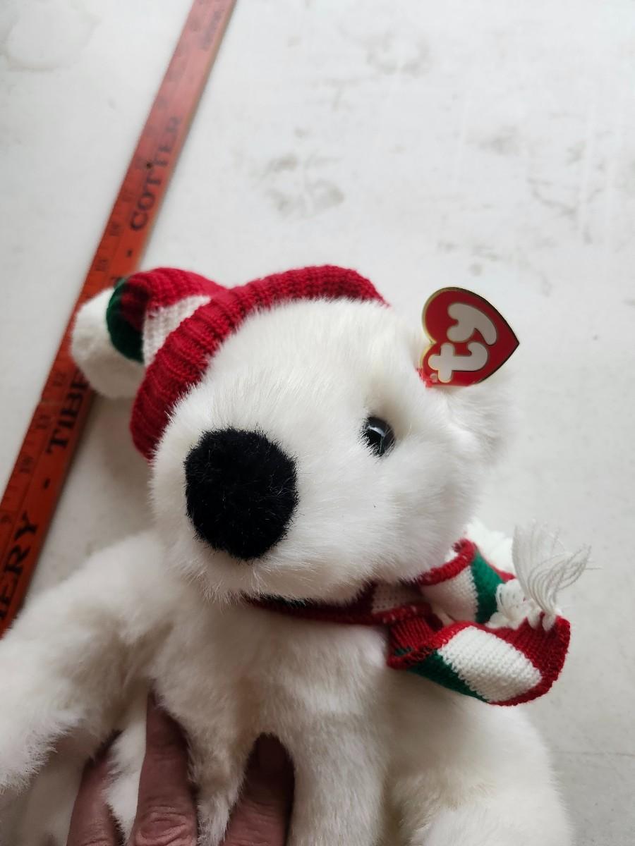 TY Beanie Buddy White "Holiday Polar Bear Plush 14" 1997 Santa Hat