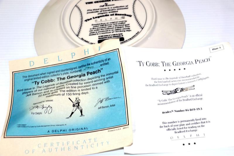 TY COBB The Georgia Peach Limited Edition Plate with COA #828-66