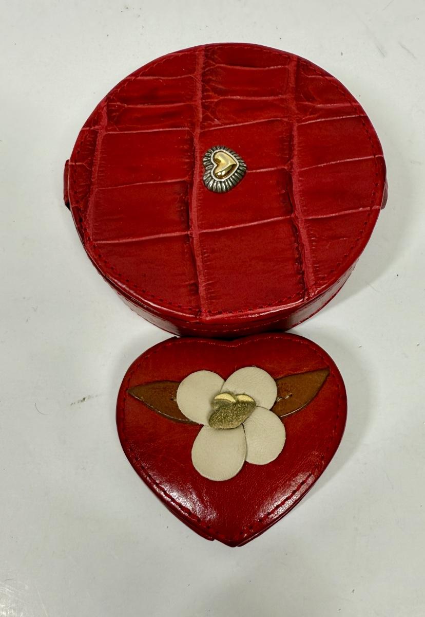 Brighton Leather Round Trinket Box and Leather Heart-shaped Compact