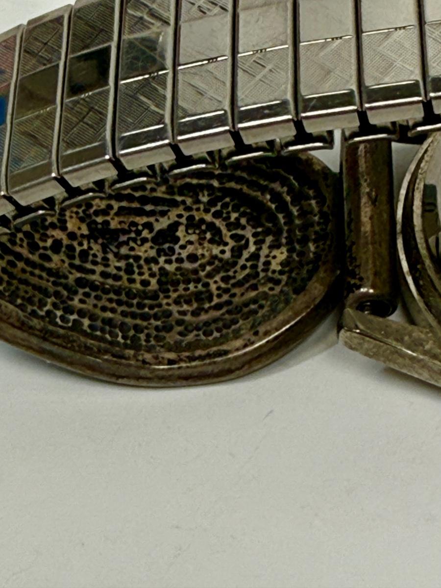 Silver-tone Expanding Watch Band with Inlaid Turquoise