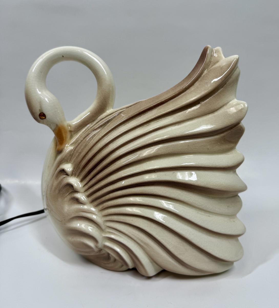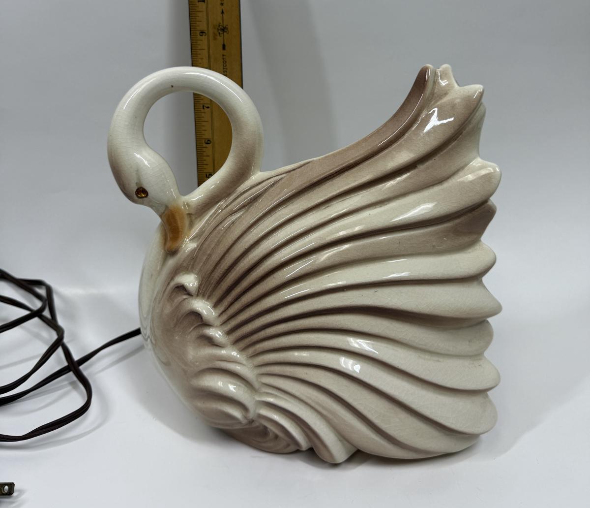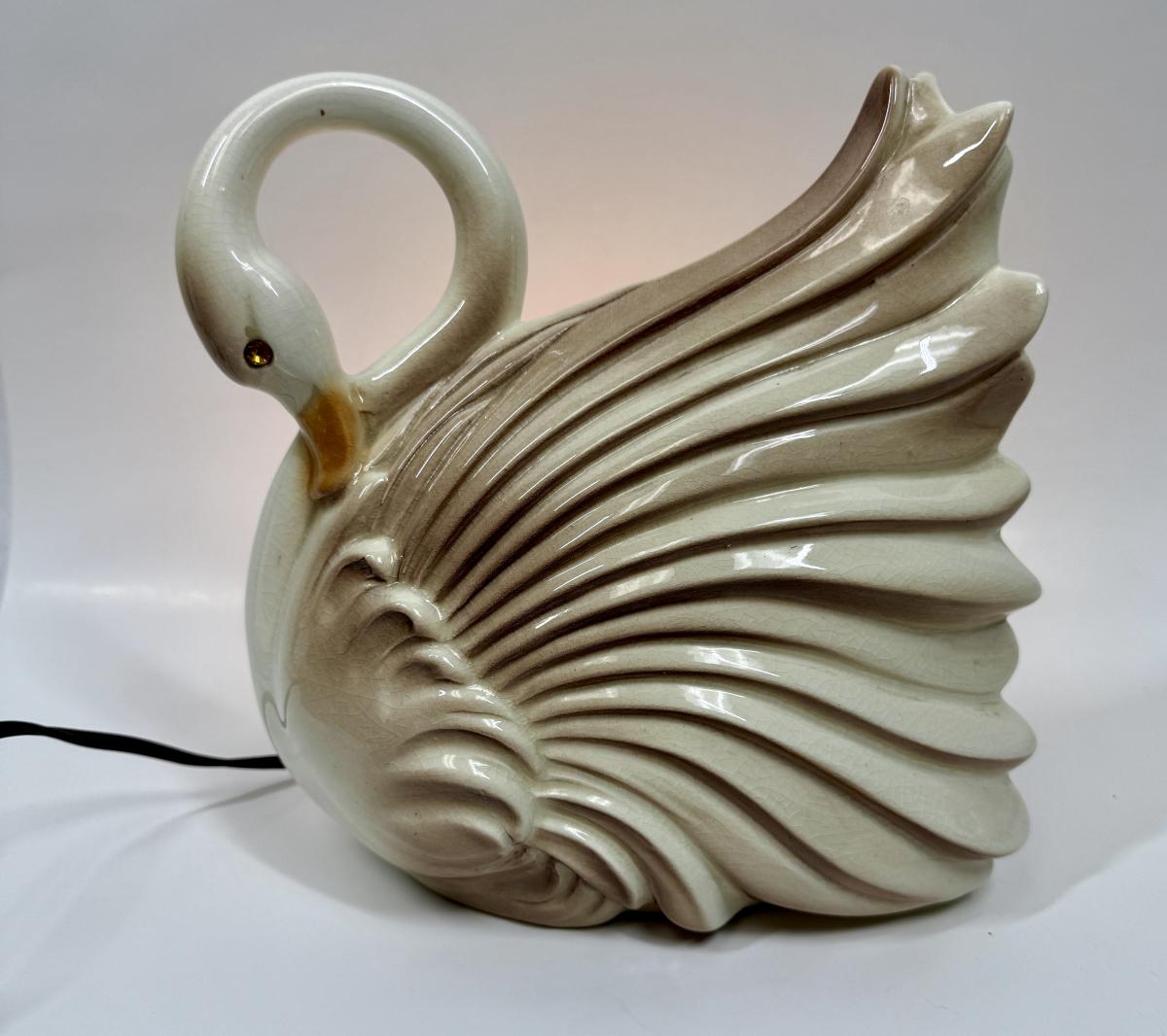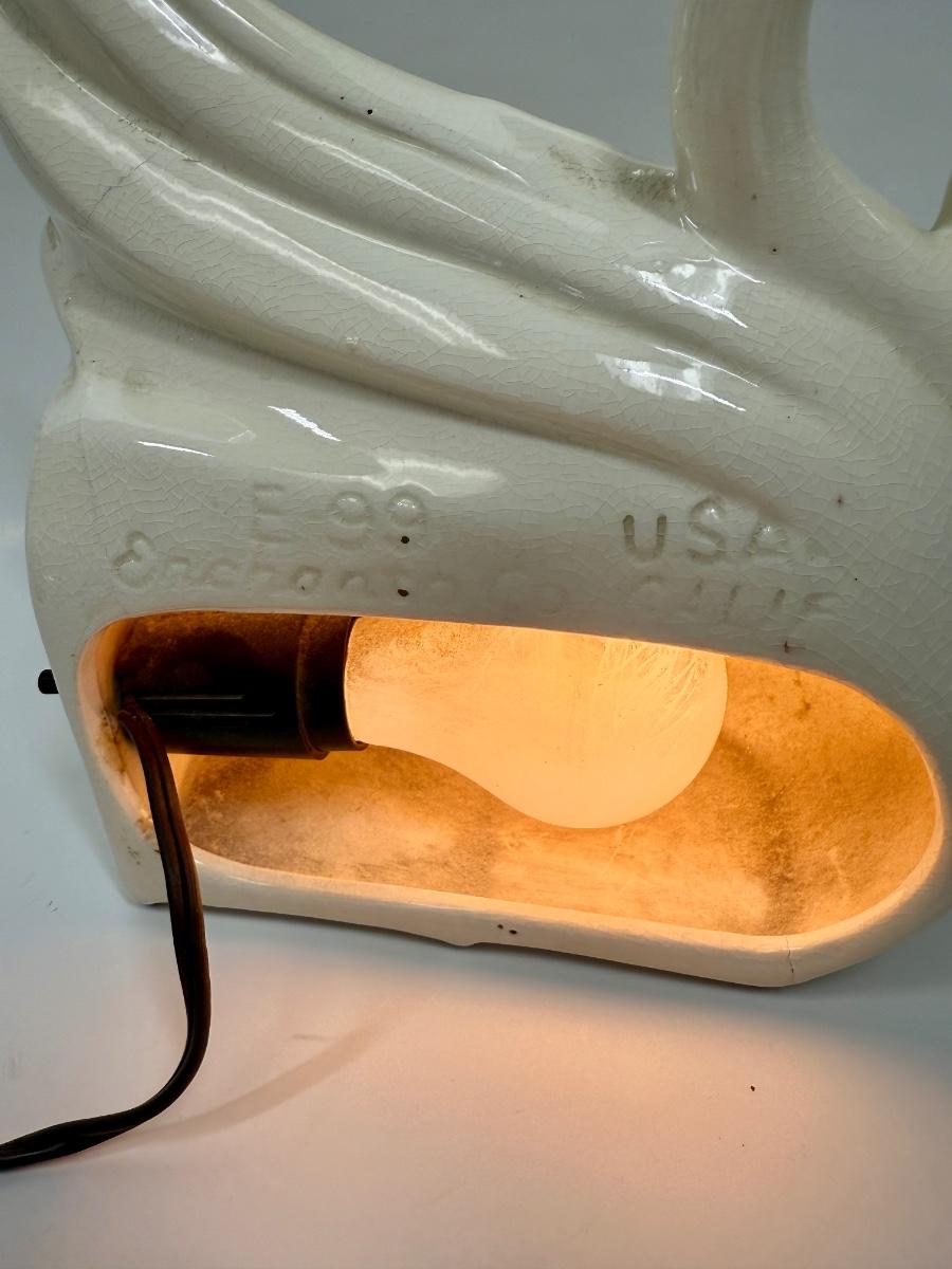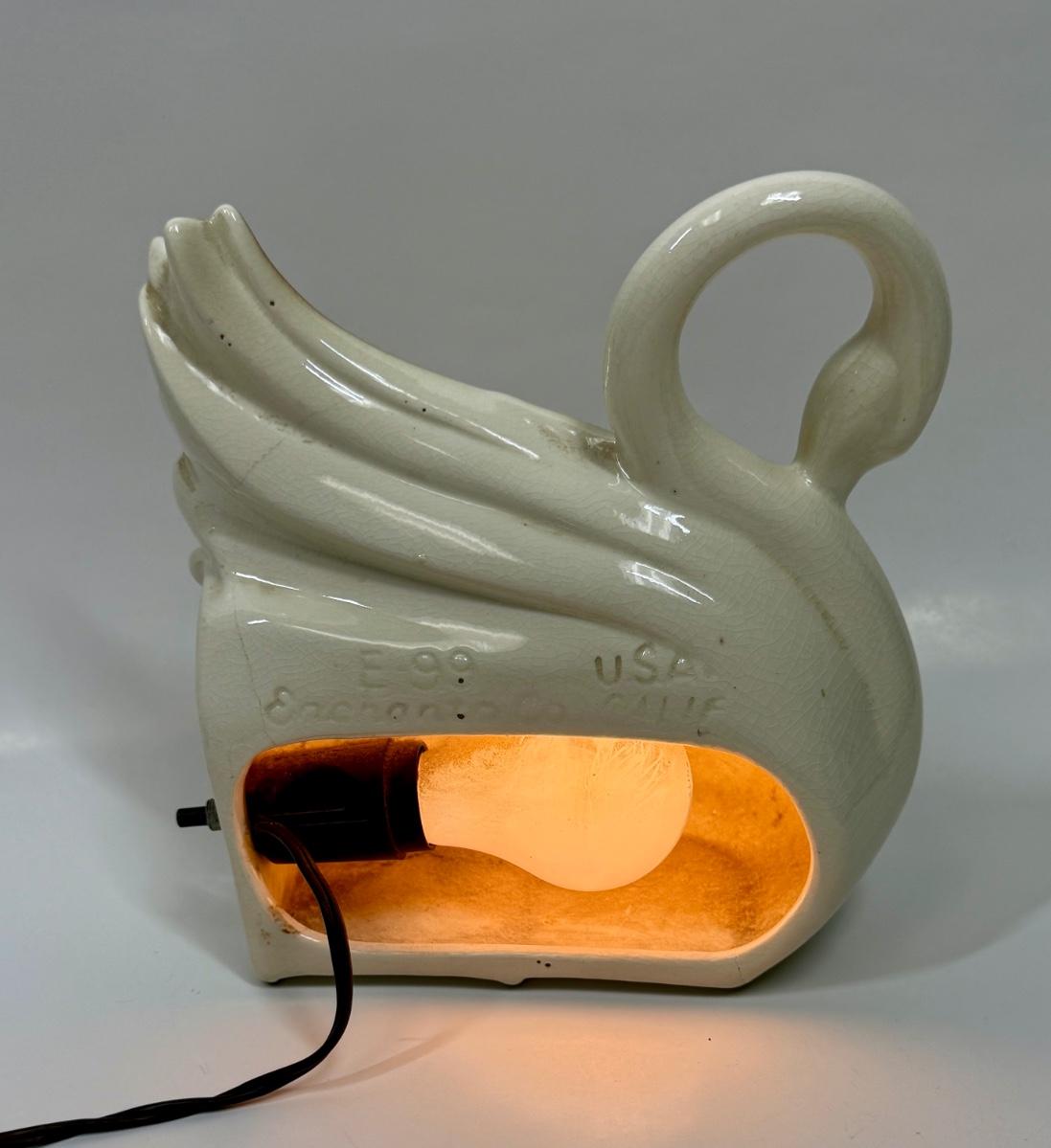 Rare Vintage 1950s Swan TV Lamp by Enchanto Co California Pottery