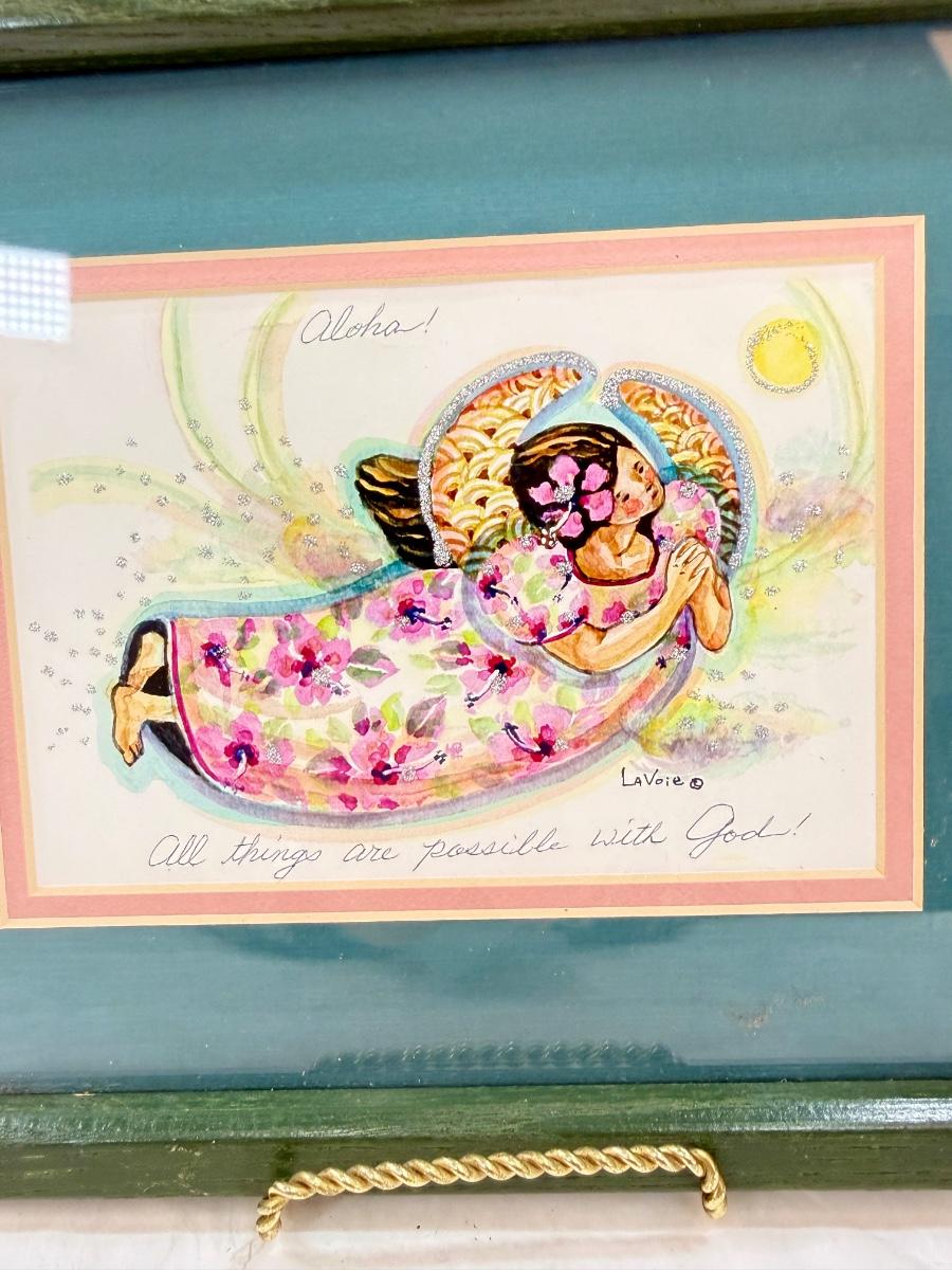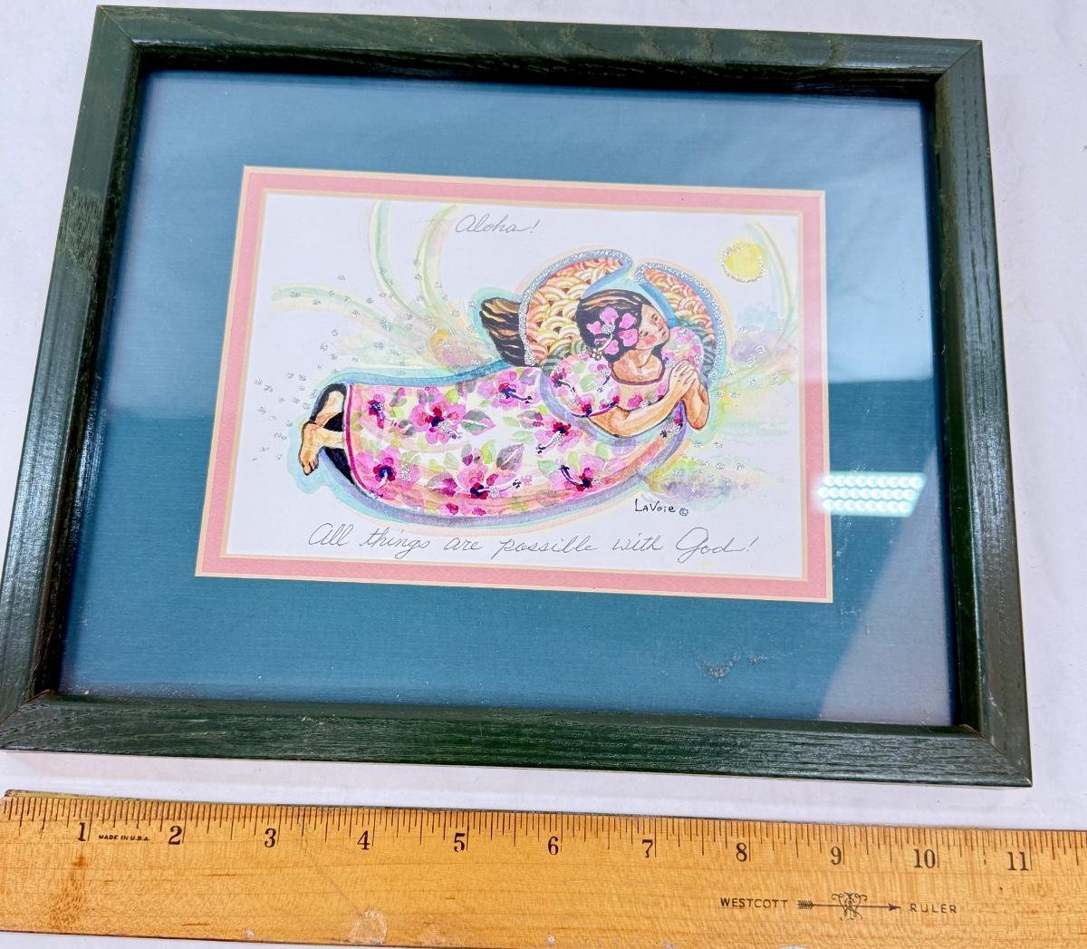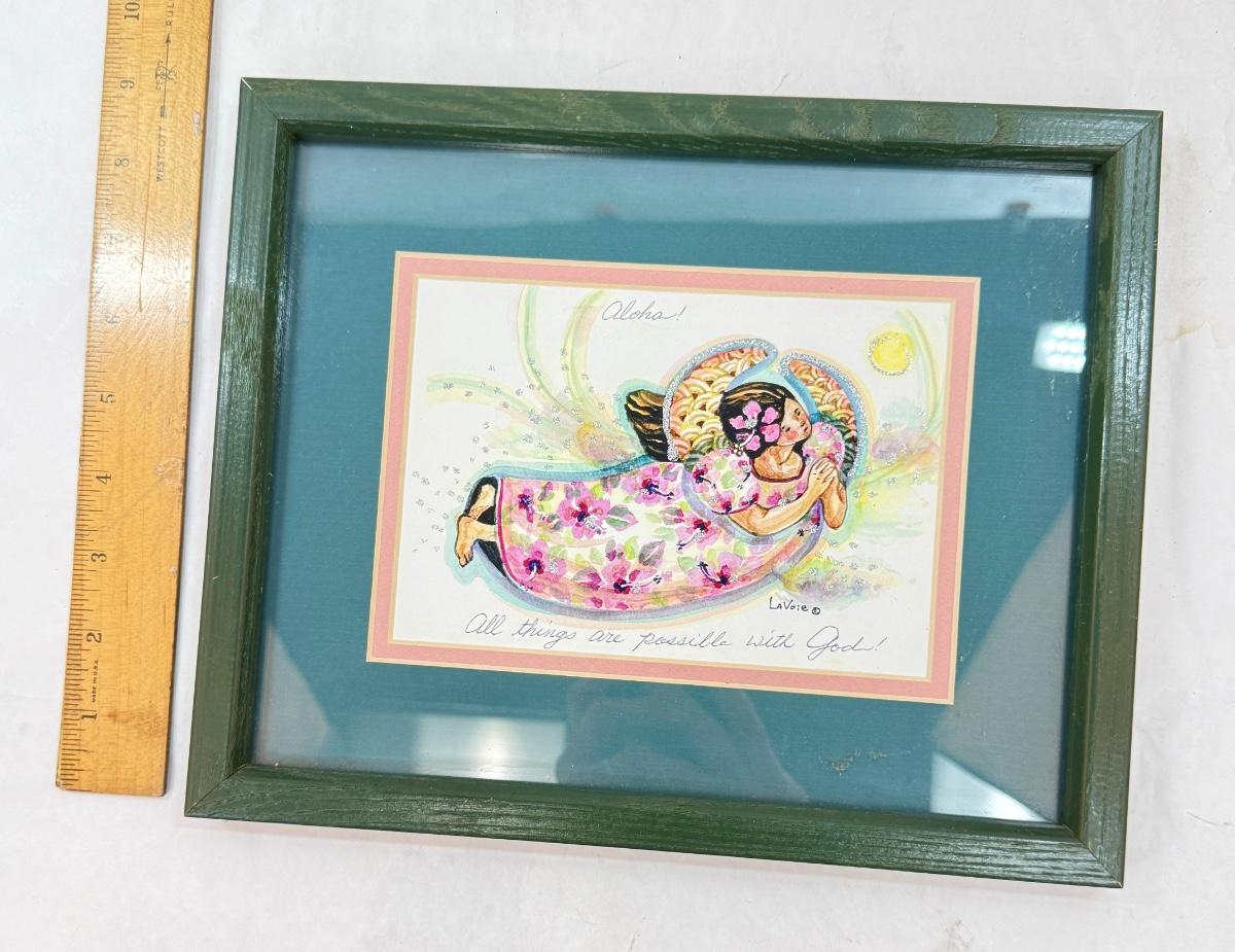 Good condition, with the text "Aloha" at the top and "All things are possible with God" at the bottom. Measures approx. 11" x 9".