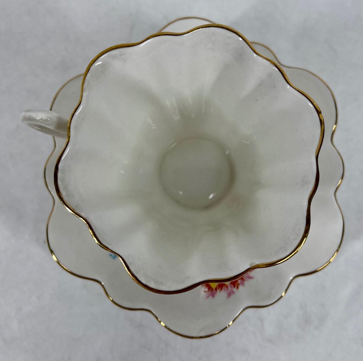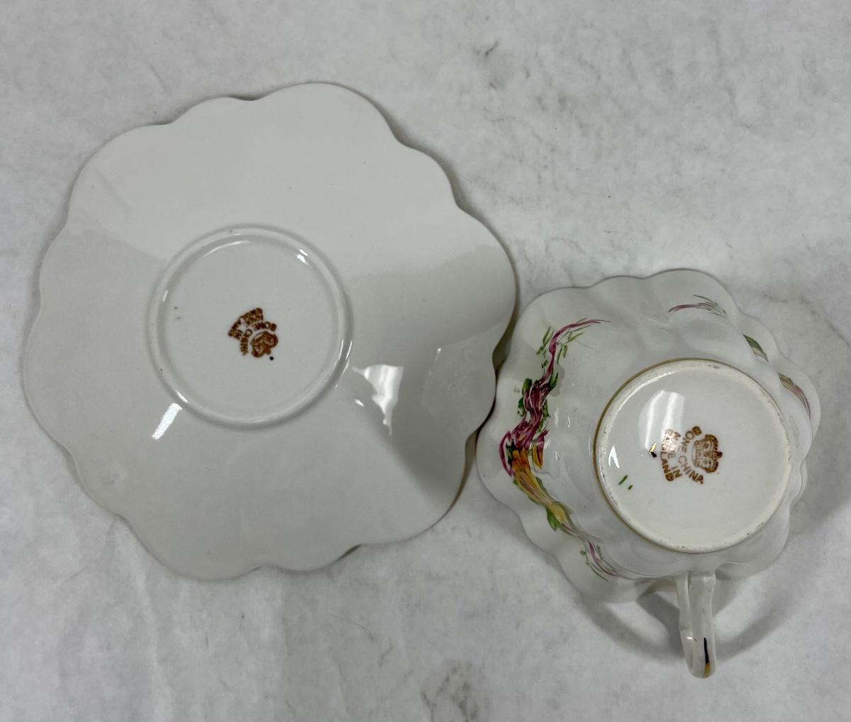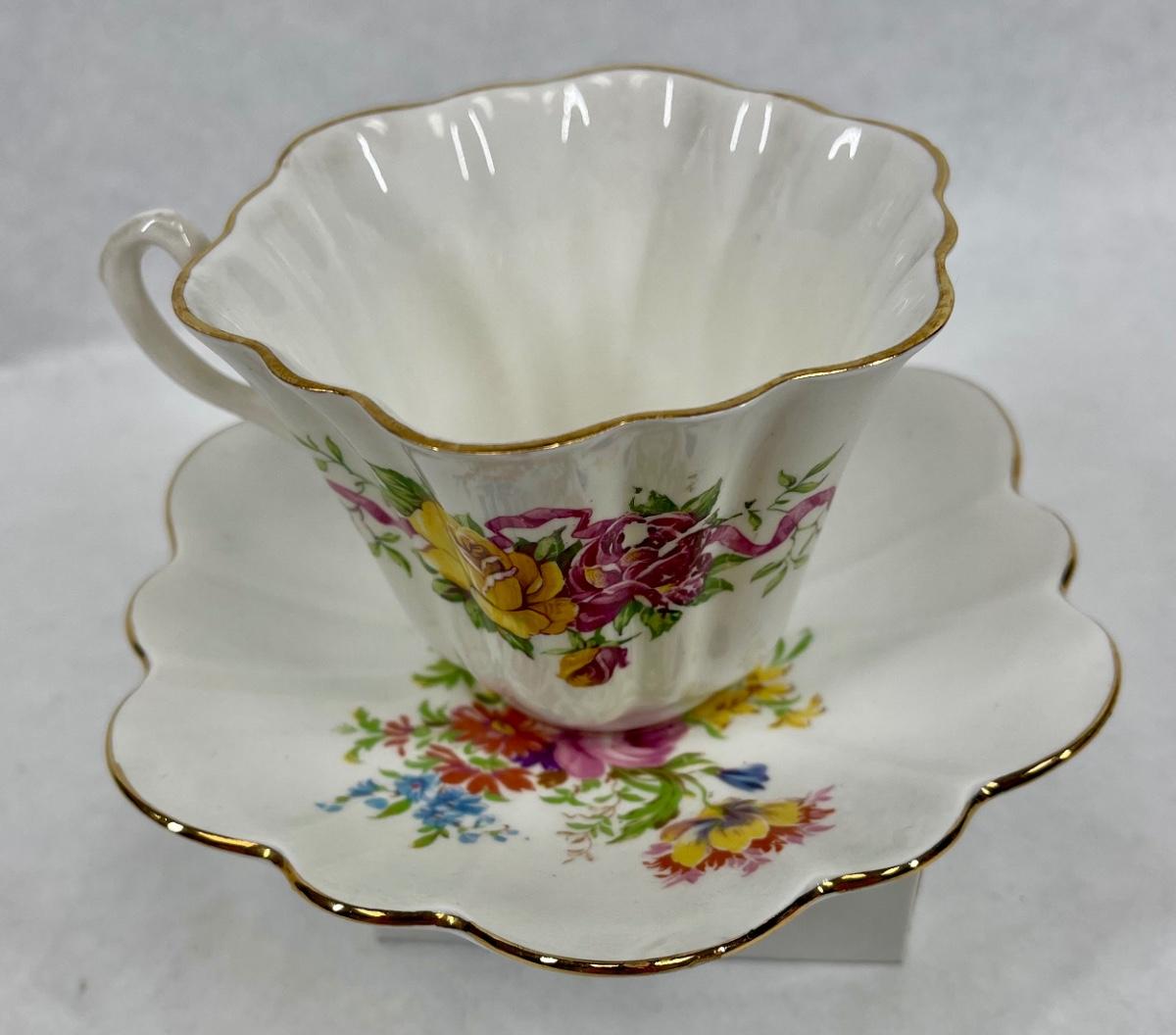 Vintage bone china Tea cup & Saucer Made in England - roses pink yellow scalloped cup