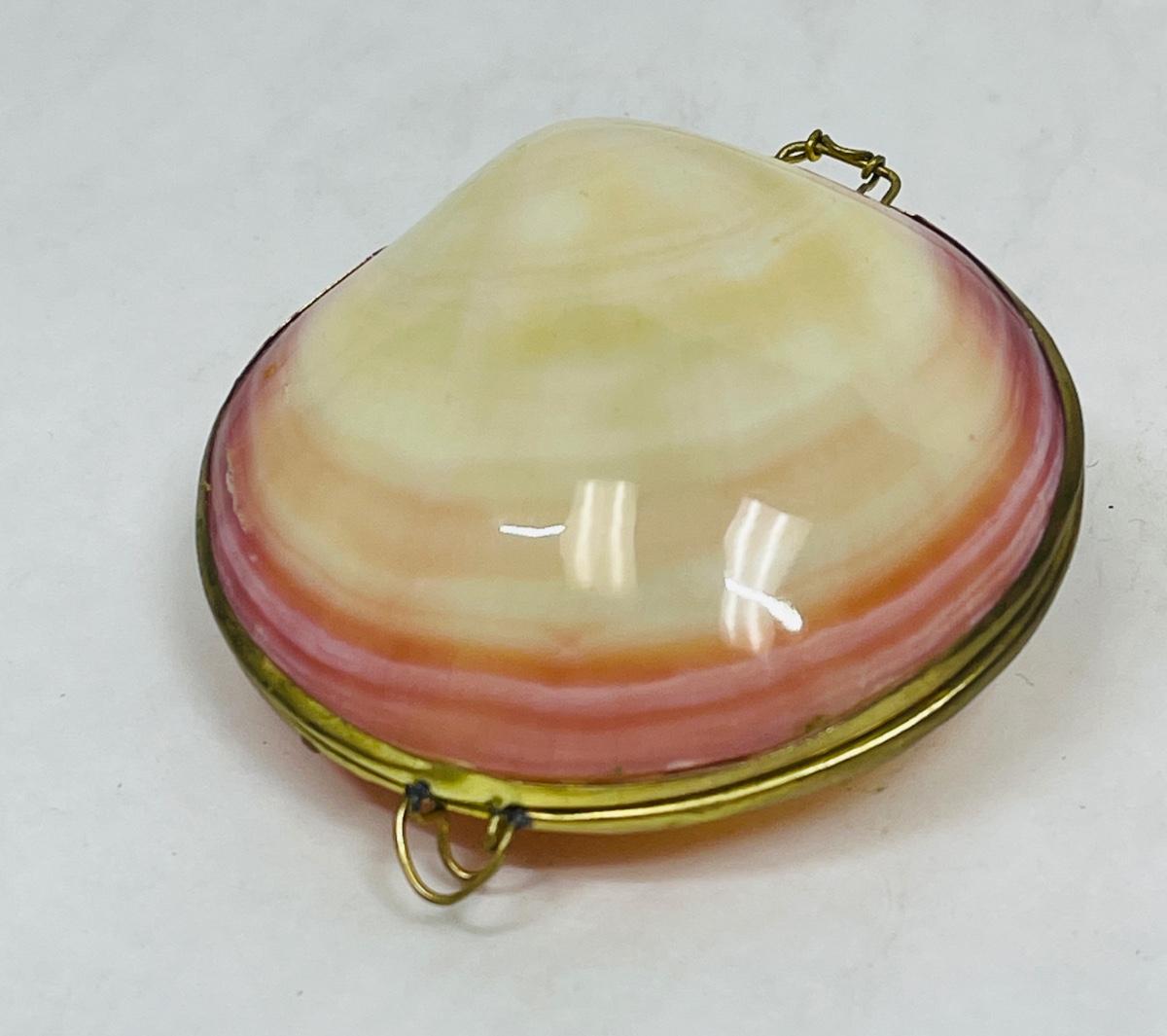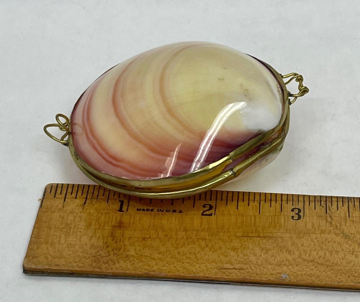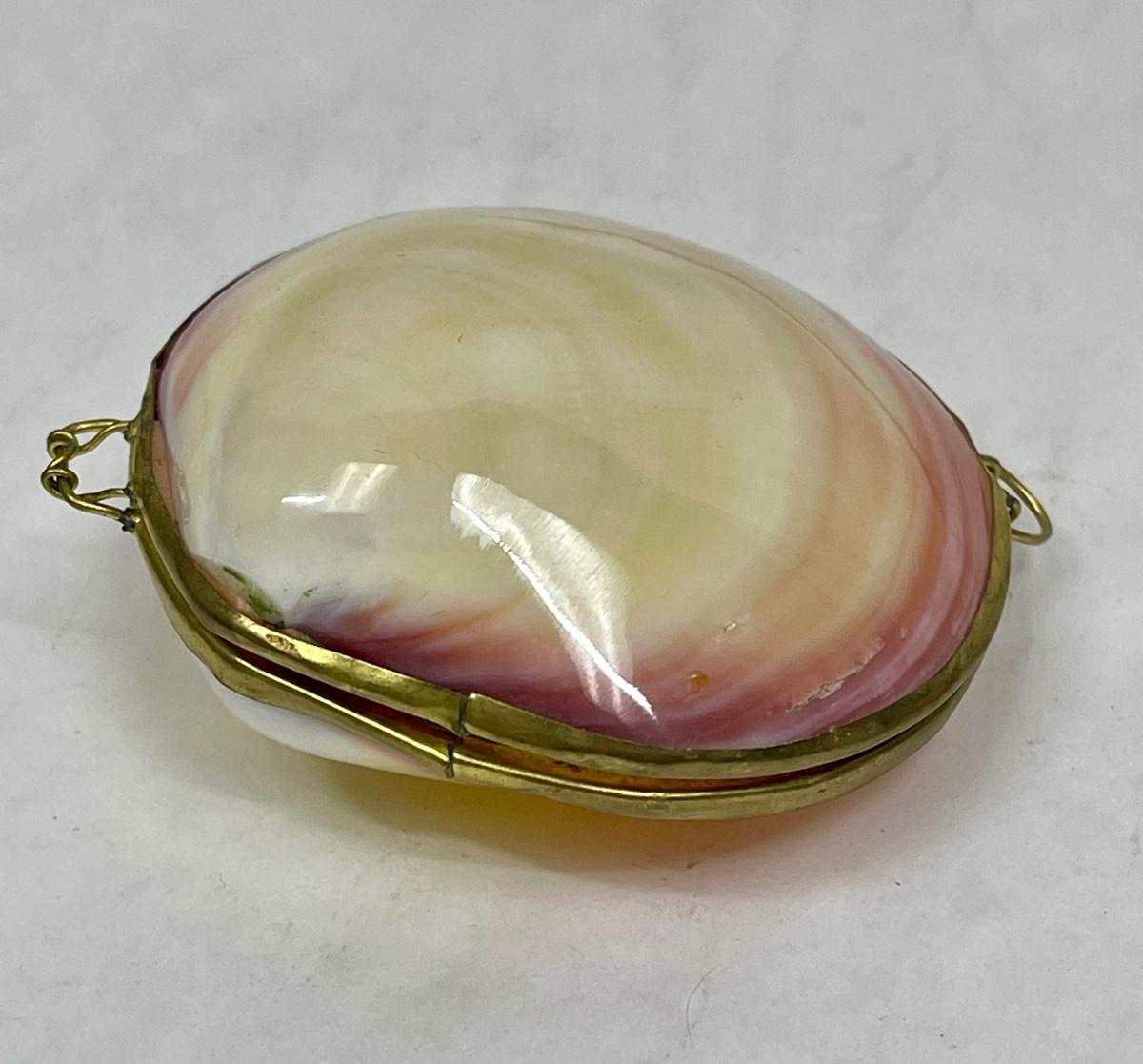 Vintage Genuine Clam Seashell Brass Hinged Mermaid Purse Trinket Box