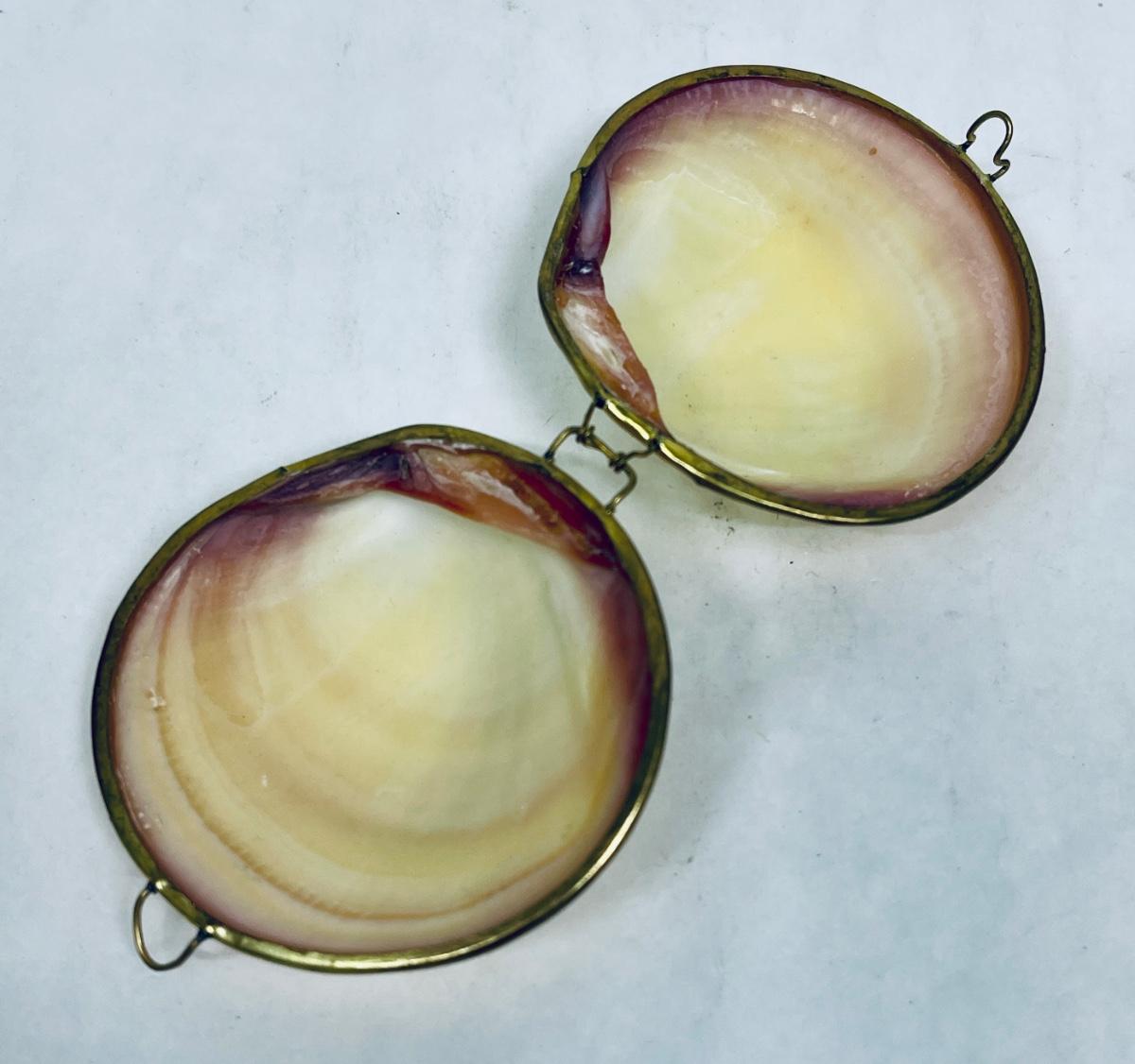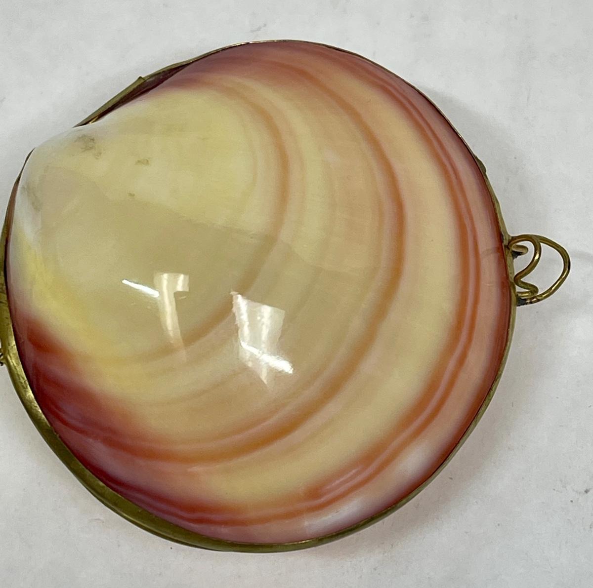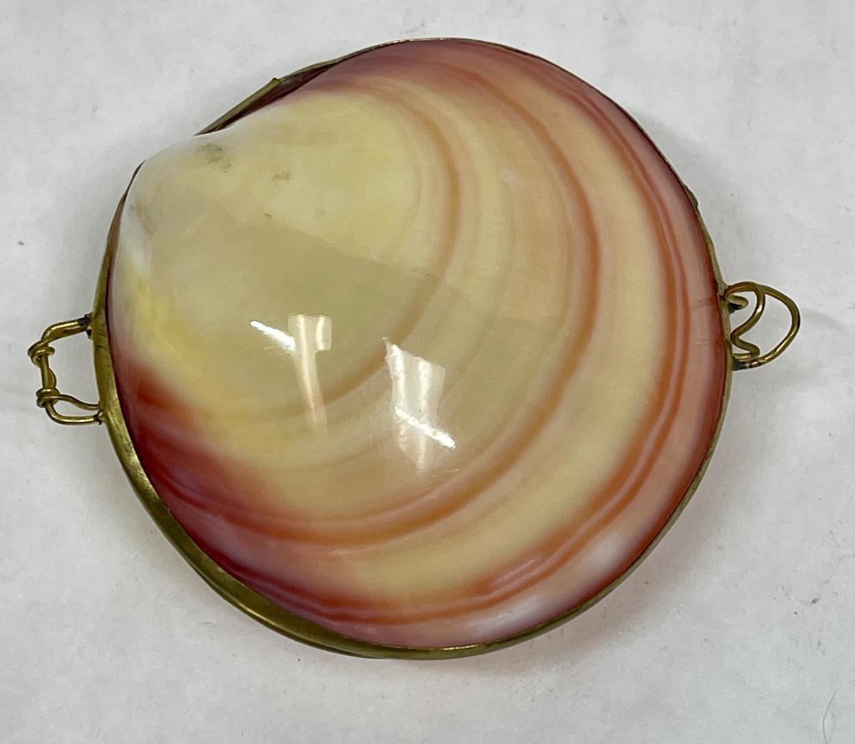 Vintage Genuine Clam Seashell Brass Hinged Mermaid Purse Trinket Box