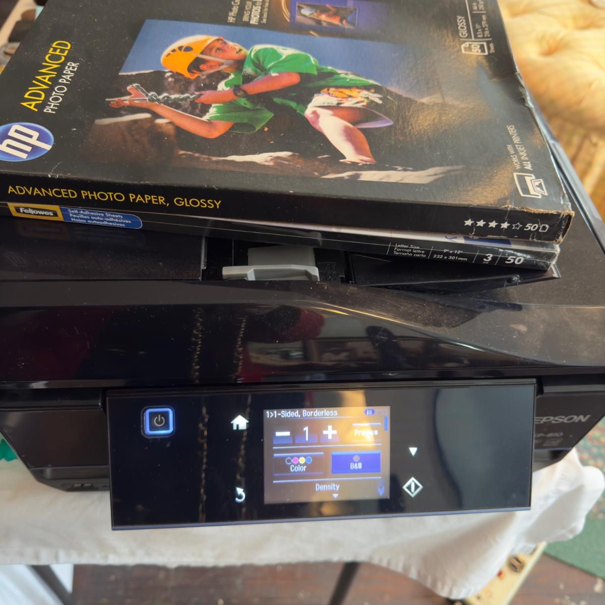 Tested and working. Needs new ink cartridges. Comes with photo paper, etc.