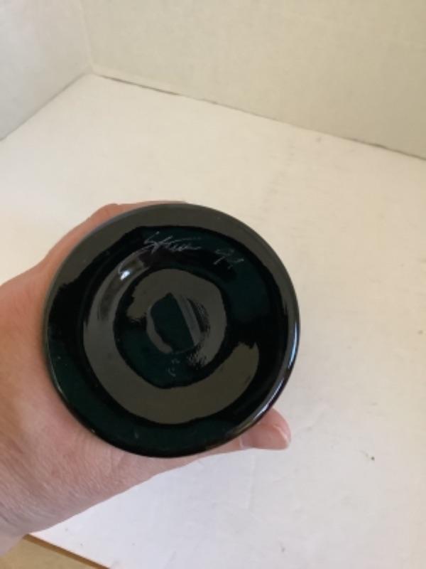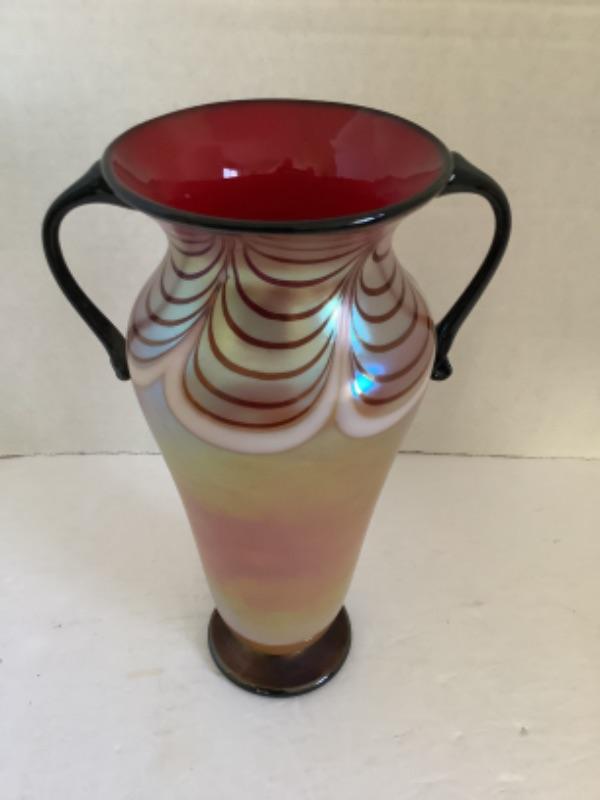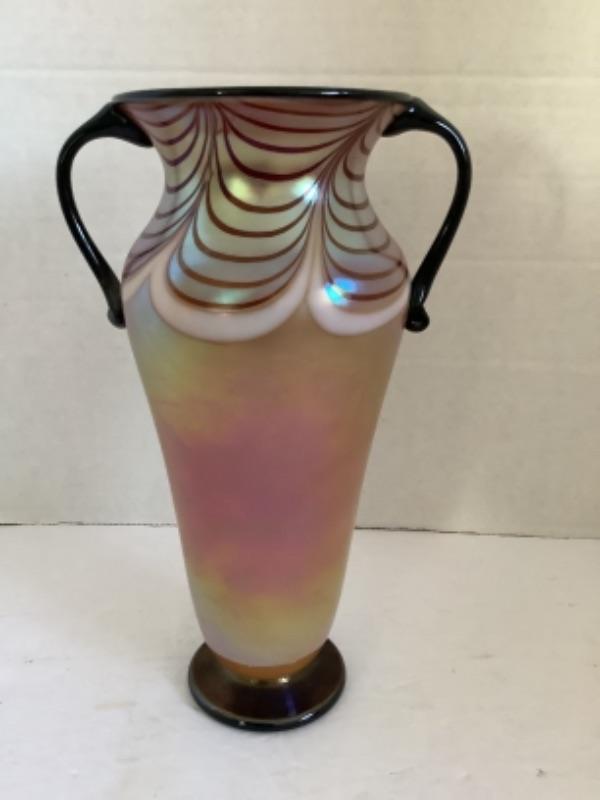 U - 1603. Artisan Signed Two Handled Art Glass Vase 1999