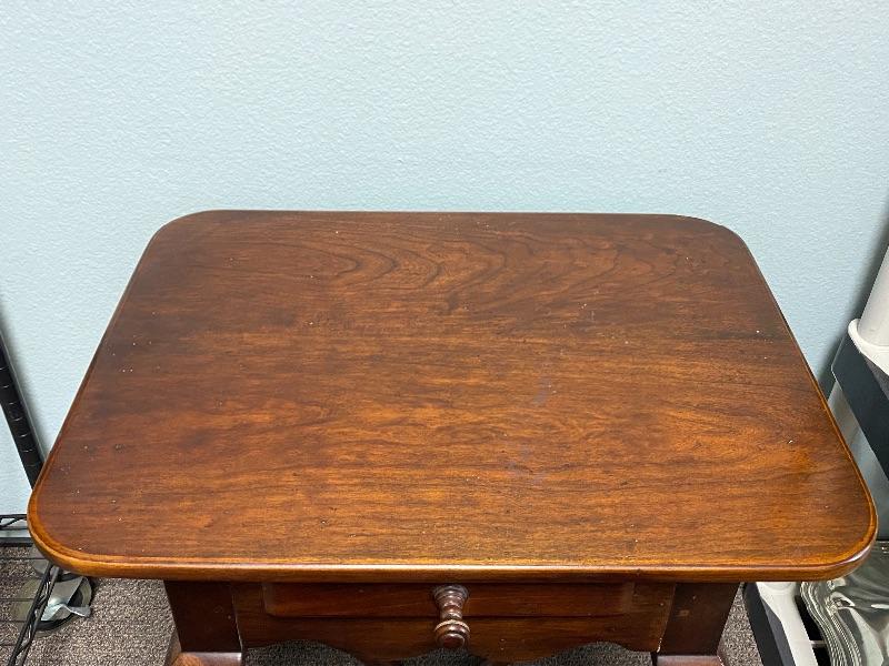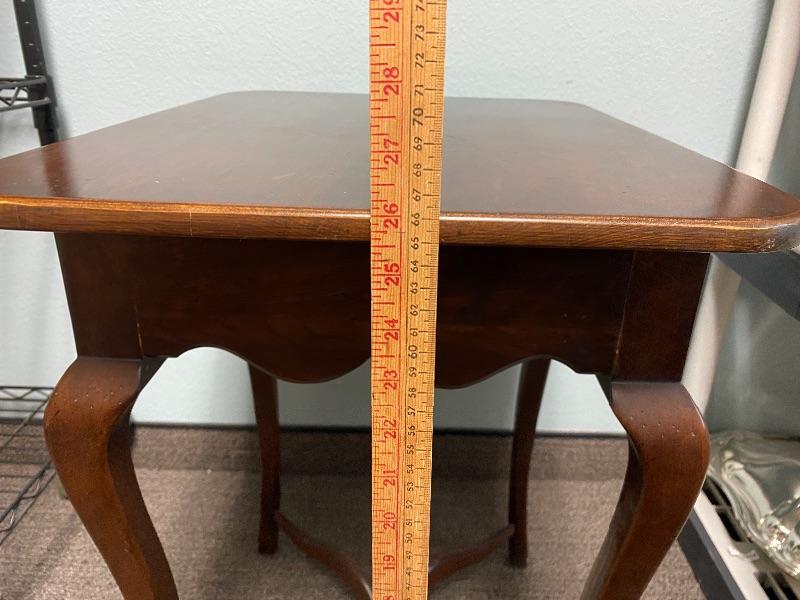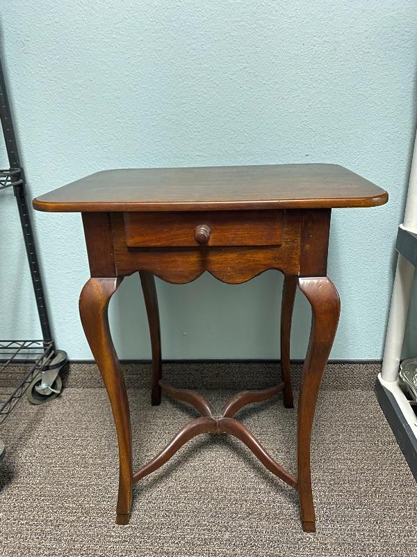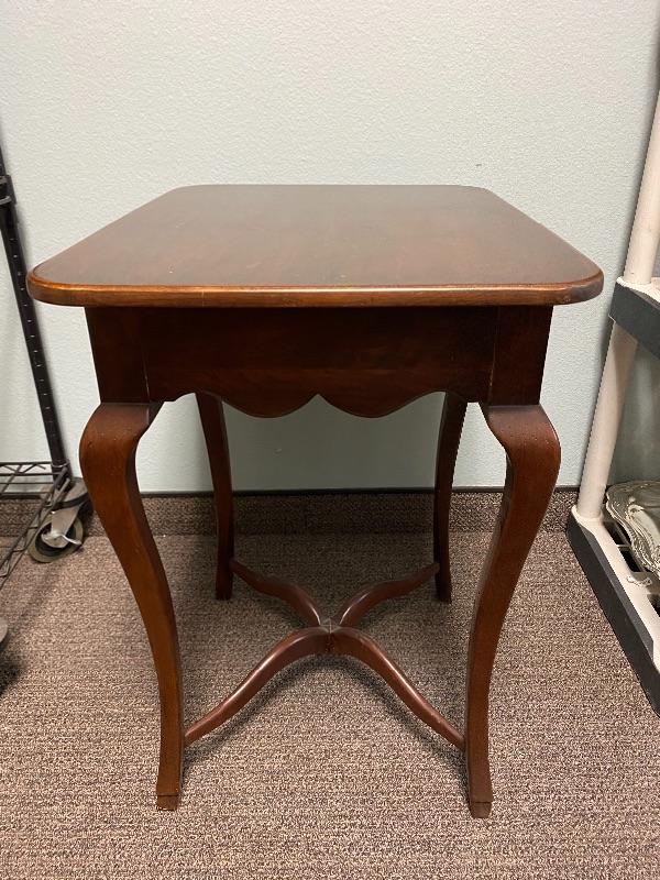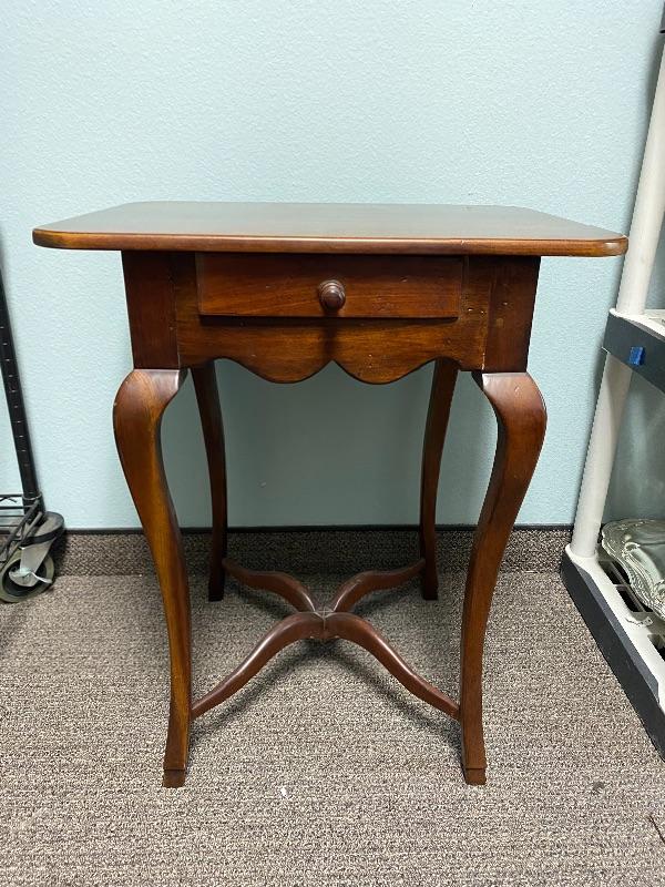 American Digest collection end table by Hickory Chair Co. Great next to chair or bedside. Has small drawer. In good condition. Measures approx 17"x22" and is 26" tall. Classic style great for almost any decor. No major scratches, only a few minor spots on surface.