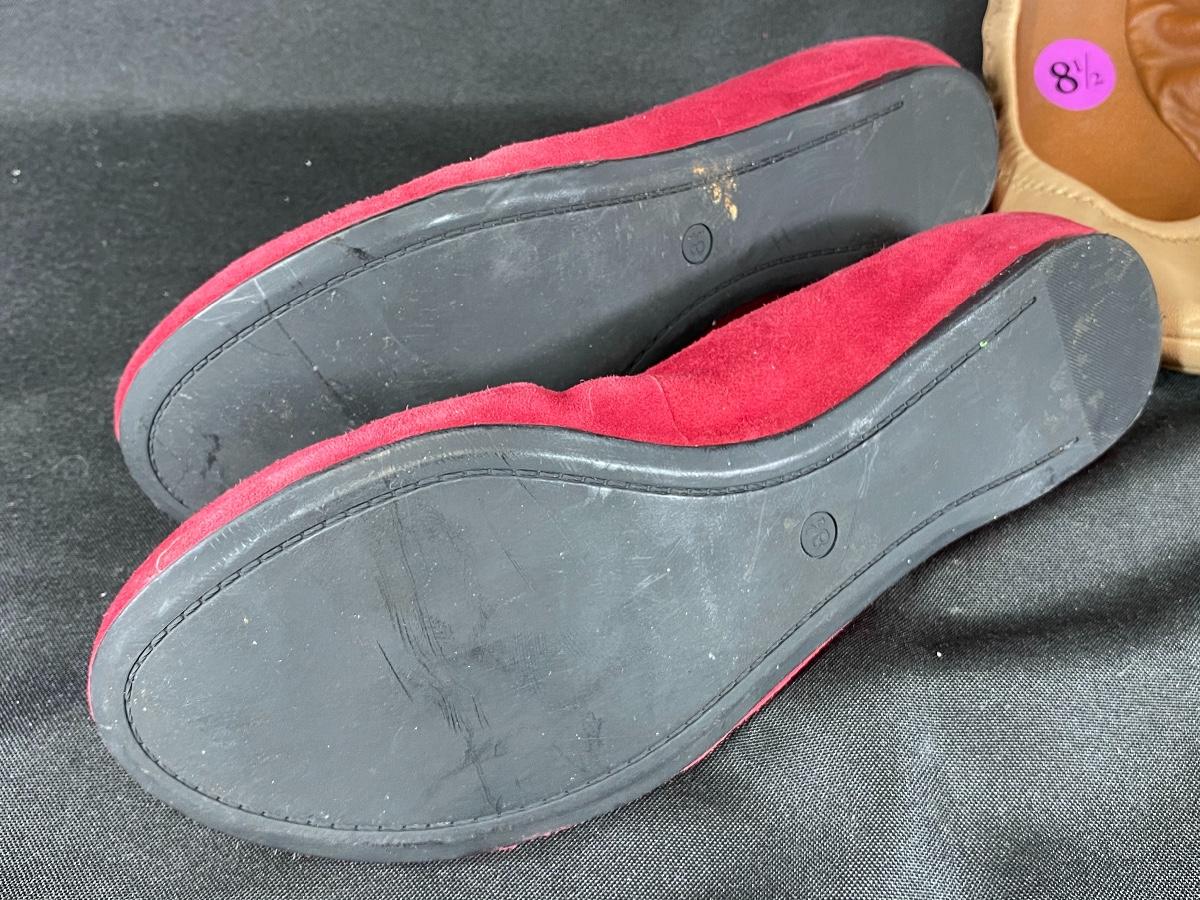 Two pairs of woman's slip on ballet style flats. Size 8.5. Worn.
