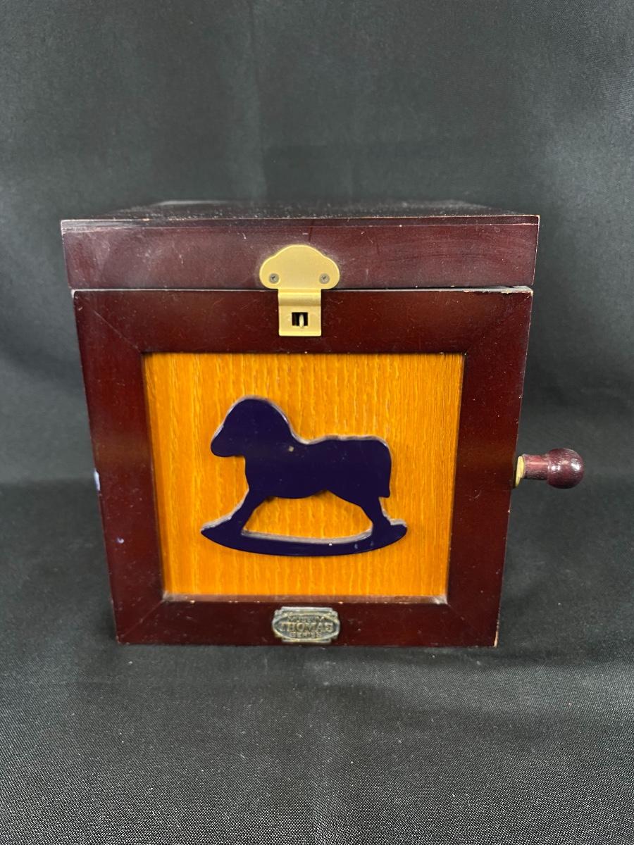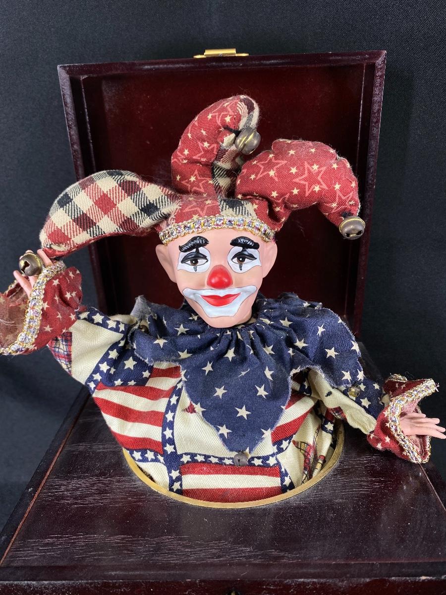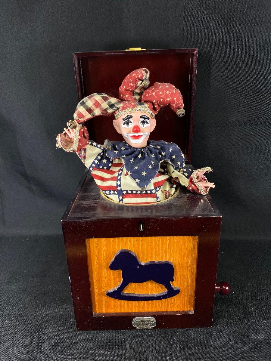 Thomas Museum Series Jack in the Box. Works, has a hand crank on the side. More for display then child's toy. One arm seems to be broken or disconnected inside clowns outfit. About 15" when lid is open.