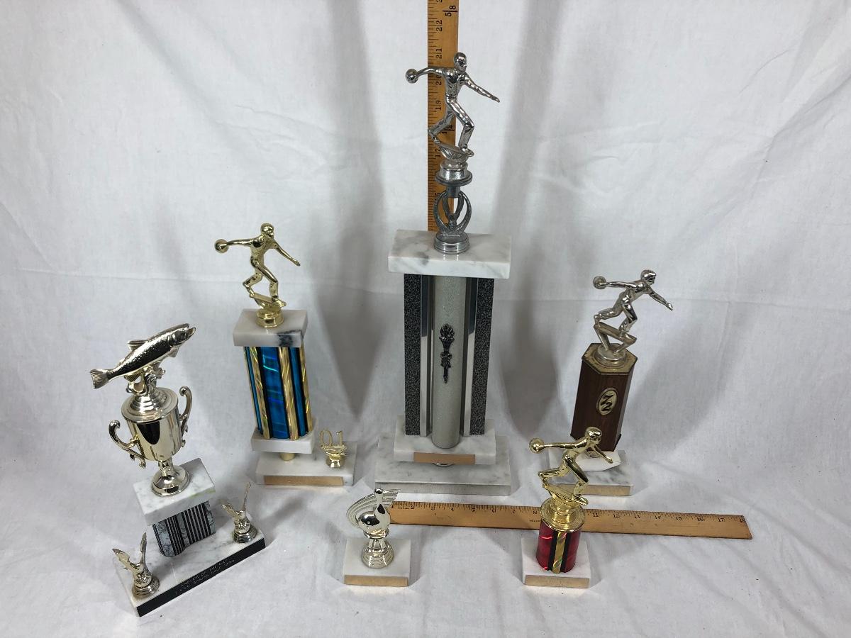 Mixed lot of vintage trophies. Most are for bowling. Great for display.