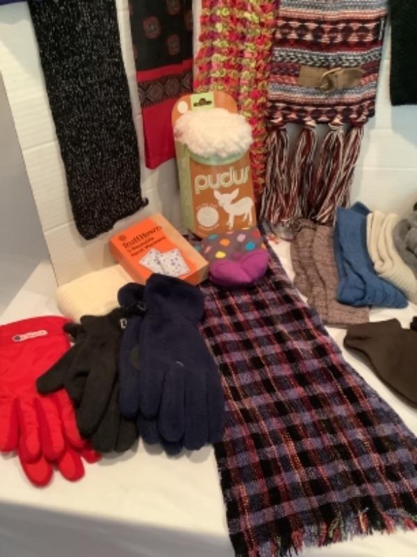 U - Ladies Clothing Lot - Scarves, Gloves, Hats, Socks, Hand Warmer and more