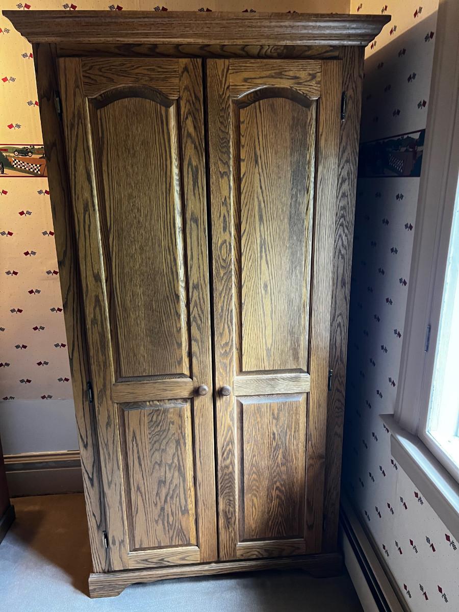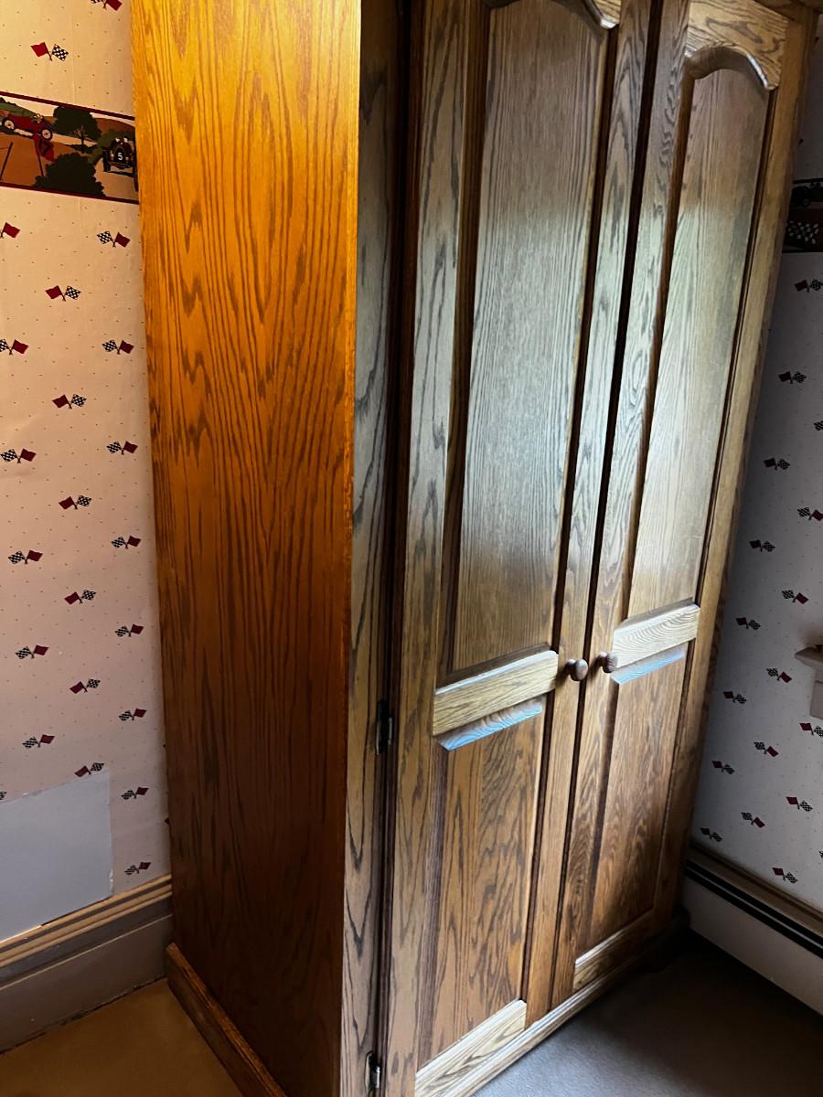 Solid oak, large piece located upstairs will require moving help, 24x37x77