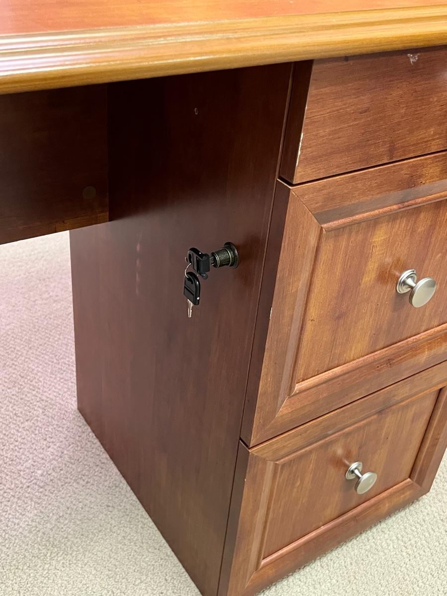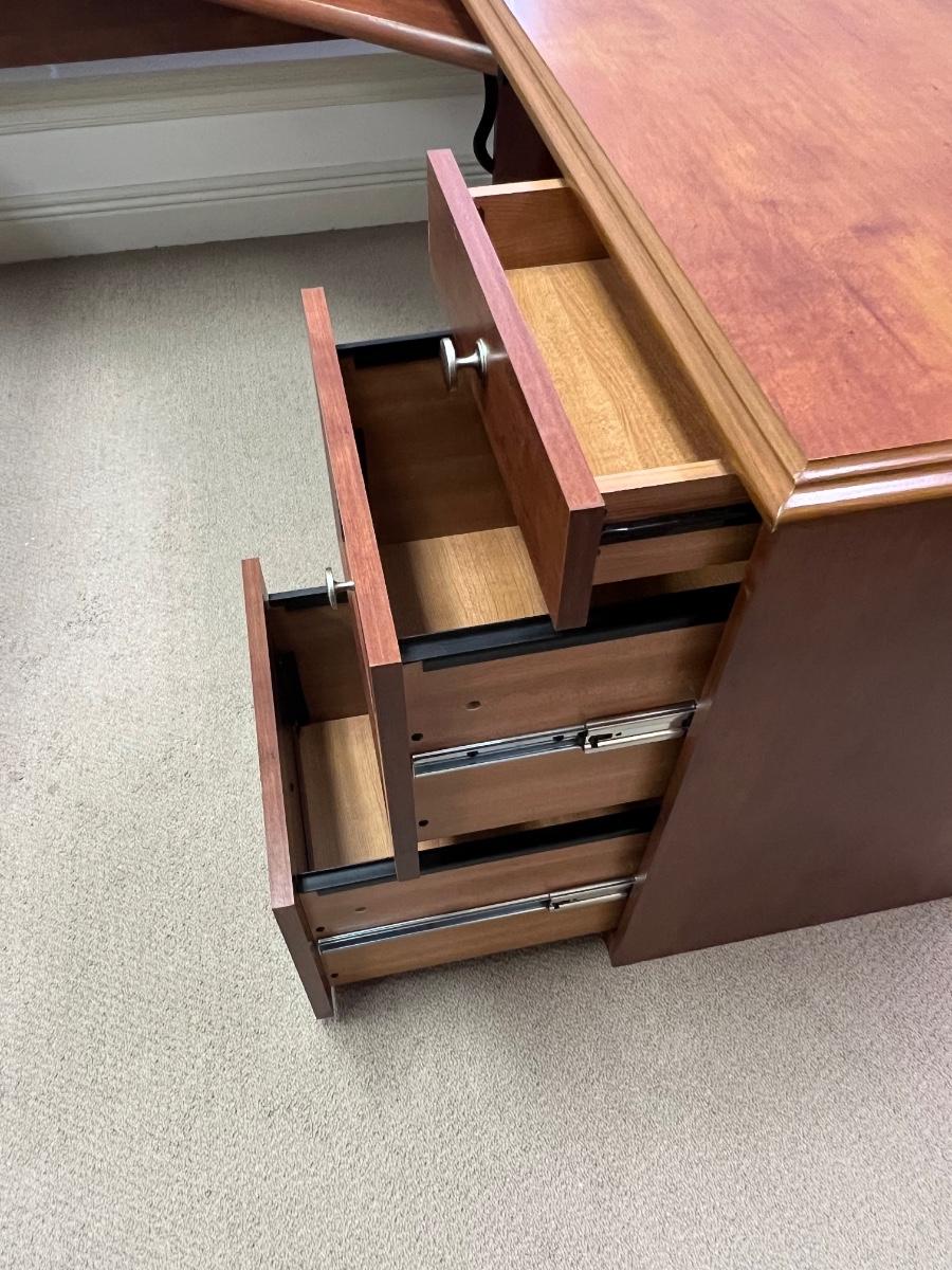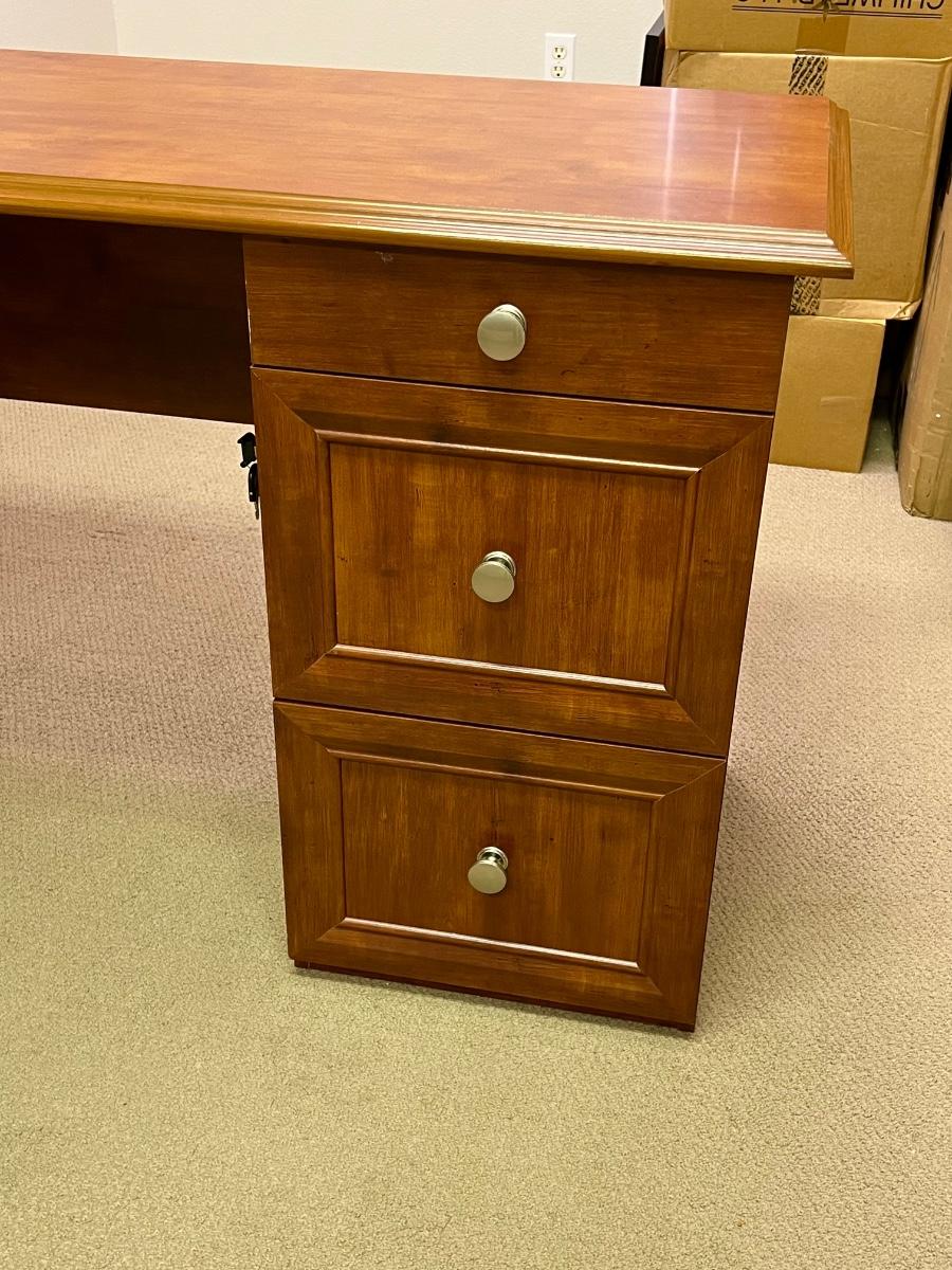 Excellent Condition ~ All drawers lock ~ They slide in & out easy ~ No name brand found ~ Desk = 30” H x 92” W x 65” D ~ Bring tools to dismantle or if delivery needed, please ask for a quote before bidding, thank you ~ Located at Denise’s office in Mandeville