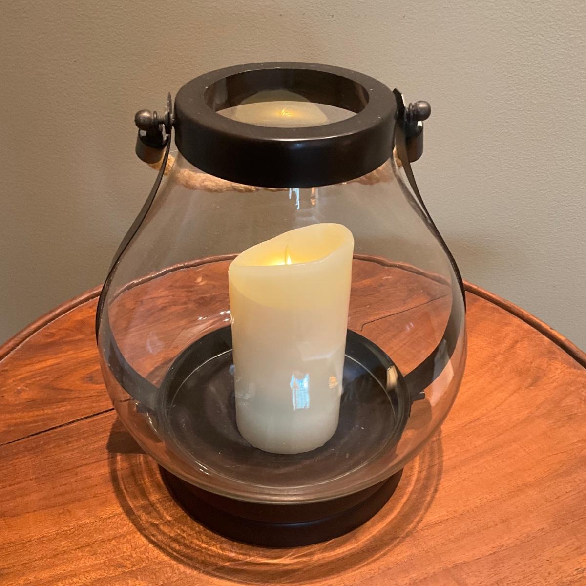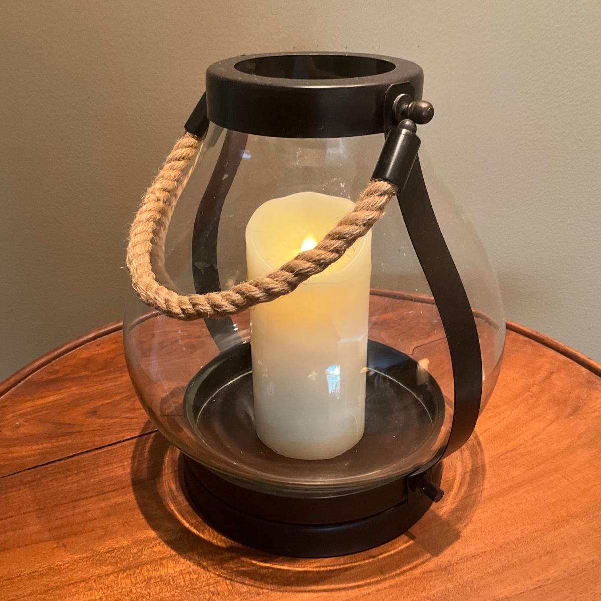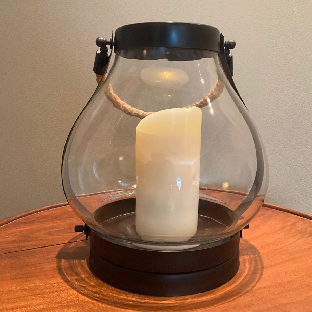 U069 Coastal Glass Dome Lantern with Rope Handle and Luminera Candle